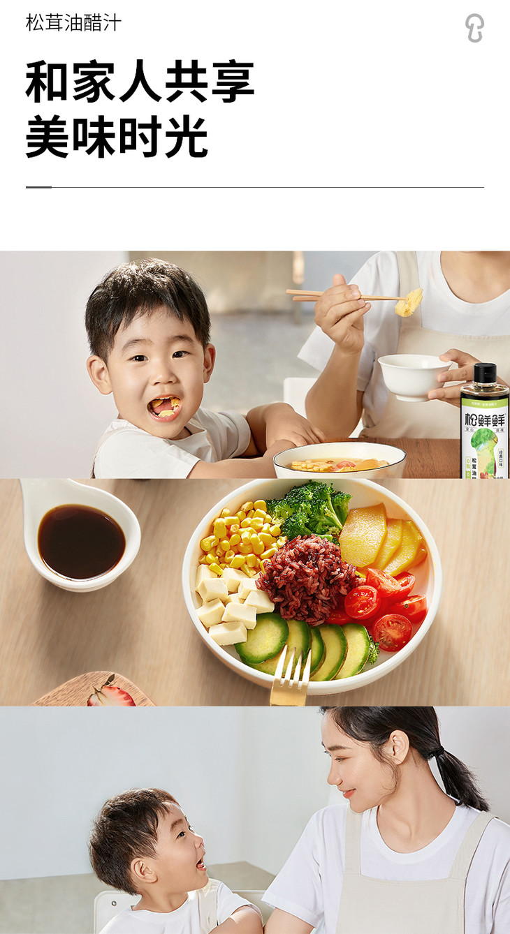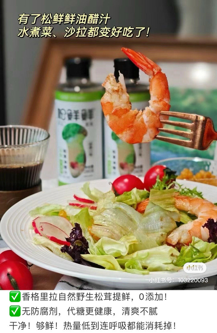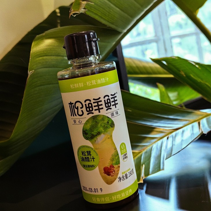 松鲜鲜松茸油醋汁的口感也很独特,相较于普通油醋汁,它的配料表第一位是苹果,整体是微酸微甜的口感,加上松茸独特的鲜香,搭配清爽的蔬菜沙拉,或是作为凉菜的调味,都能让食物大大加分!而且,蘸肉煮菜也很好吃哎,可以自己创新下,热食也能用上!价格也蛮合适的,39.9元有3瓶,限时还有赠松茸调味料1袋,送完即止!