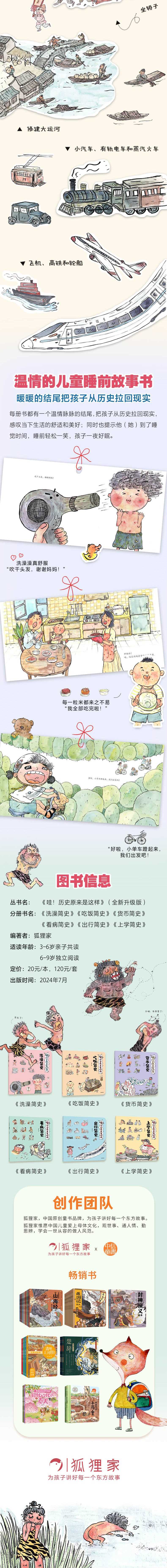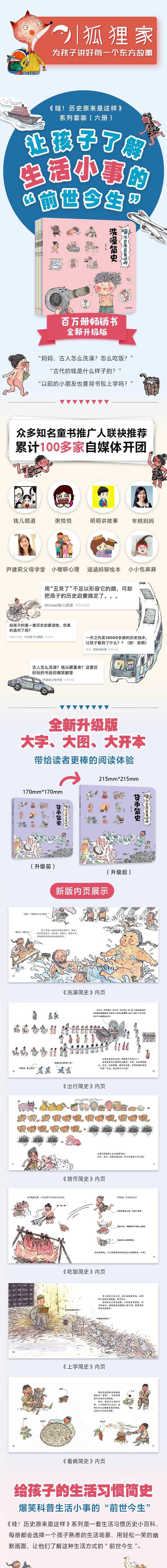 ★新版升级,大字、大图、大开本,为读者带来更好的阅读体验。字号由原版的14磅升级为新版的17磅,图片等比例放大,字迹、图片更清晰,读者识读更舒适。★爆笑解读人类生活场景的;前世今生每册包含20多个知识点,有趣而不简单,涉及中国从古至今在科学、文化、医学、习俗等诸多领域的演变史,让孩子在轻松阅读体验中了解生活历史常识。★激励孩子不断思考生活中的智慧人类的小智慧,世界的大进步。在孩子学习生活知识的同时得到历史启蒙,培养一种轻松愉快的历史观。让他们在遇到困难时,能像先人们那样运用智慧,积极生活。★画风奇特,幽默呈现生活百态东方水墨速写,形象灵动惹孩子喜爱;语言配合画面逗趣诙谐,构图简单精妙,接地气。★非常适合做睡前故事每本书在;穿越中国历史的时间线后,均切换回熟悉的现代生活场景,让孩子感悟到当下生活的便利舒适、健康美好