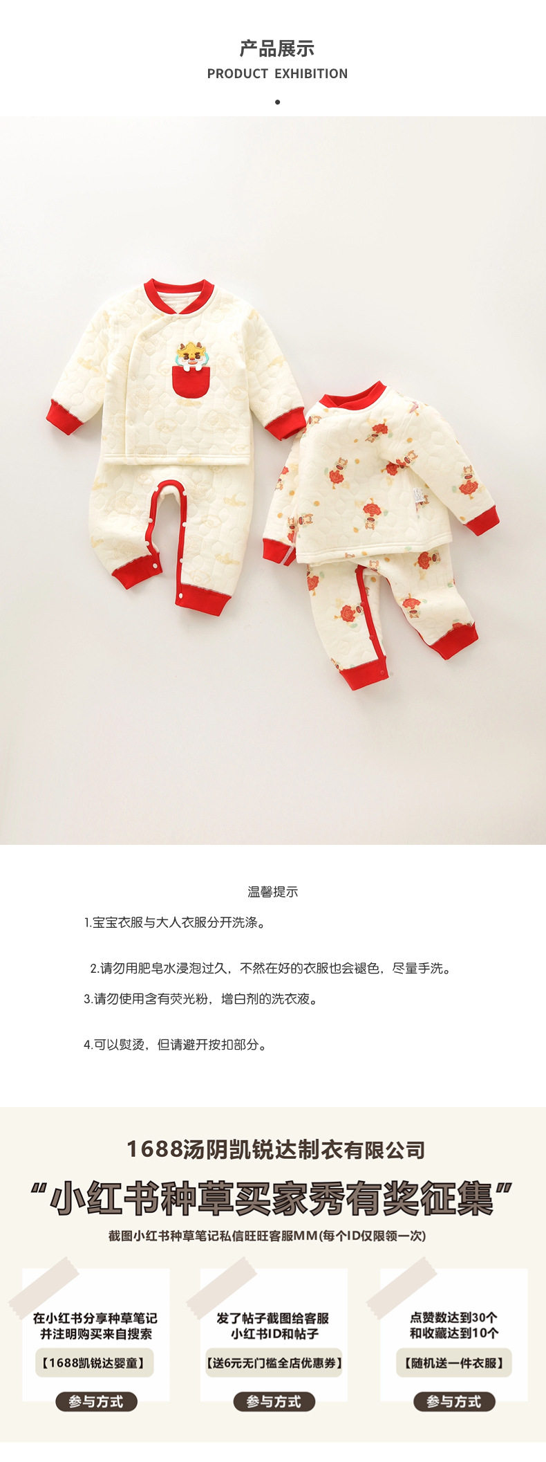 【御寒保暖 优质厚实羽绒棉填充】新款儿童羽绒棉服男女宝宝加绒爬爬服冬季加厚新生儿连体衣哈衣