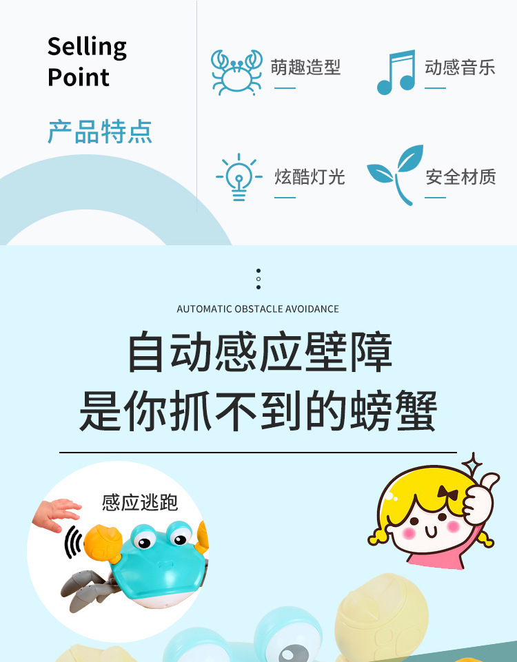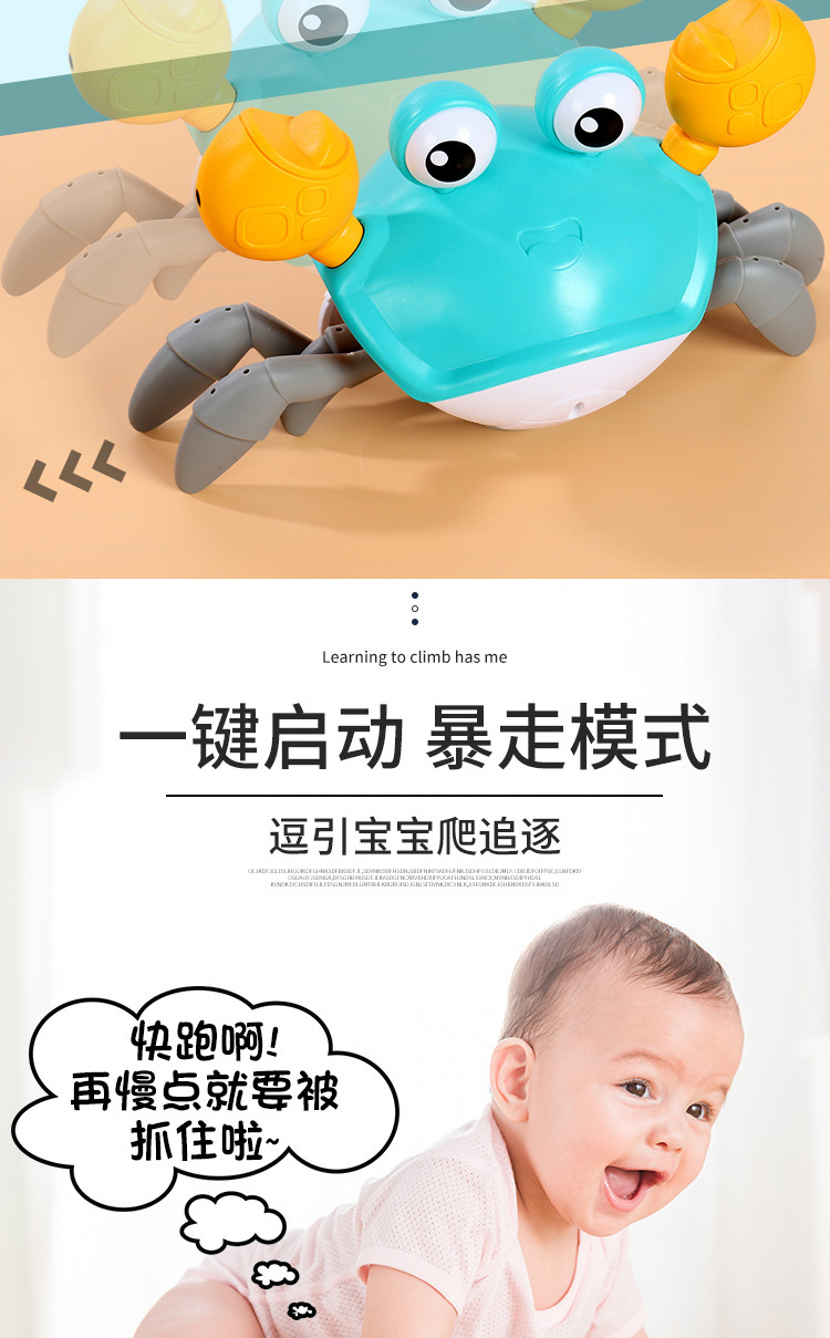 【是你抓不到的螃蟹!】电动感应螃蟹逃跑宝宝会动的婴儿抬头练习玩具跳舞哄娃神器抓不住