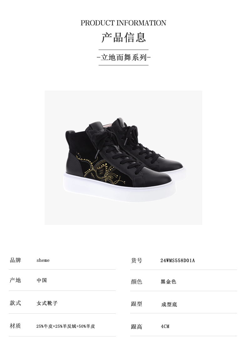 sheme立地而舞系列刺绣水晶点缀休闲时尚男女同款新中式高帮板鞋可定制