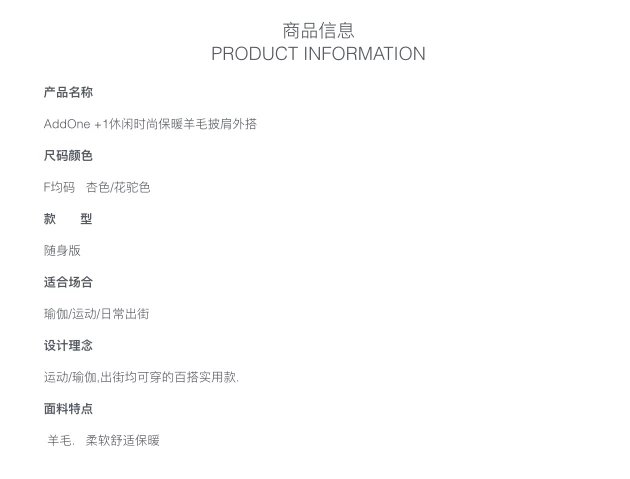 AddOne+1休闲时尚保暖羊毛披肩外搭 杏色/花驼色