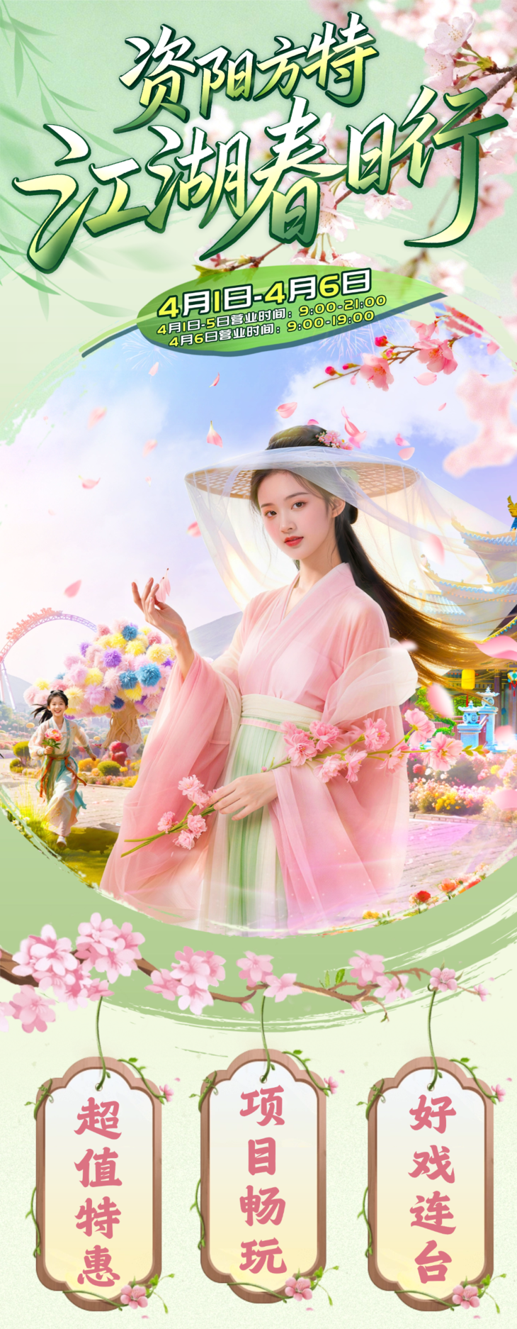 春假清明特惠【资阳方特国色春秋】江湖春日行!双人特惠仅需189元起!一票畅玩30+室内外项目,好戏连台,放肆嗨玩,欢乐整天!