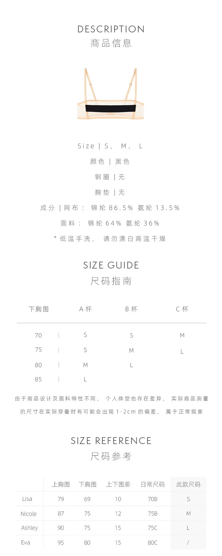 Her Senses|重构 12B160NN 弧线网纱拼接1/2文胸 [ 黑BK01 ]