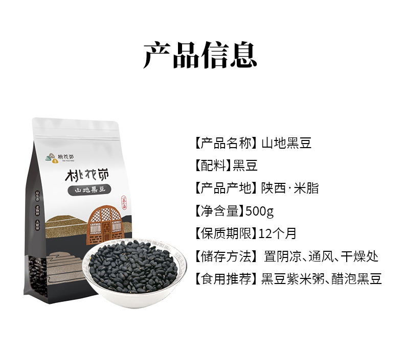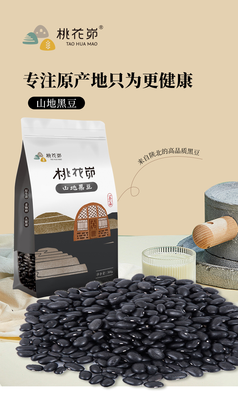 【五谷杂粮】桃花峁陕西米脂山地黑豆500g*4袋陕北特产农家黑豆粗粮