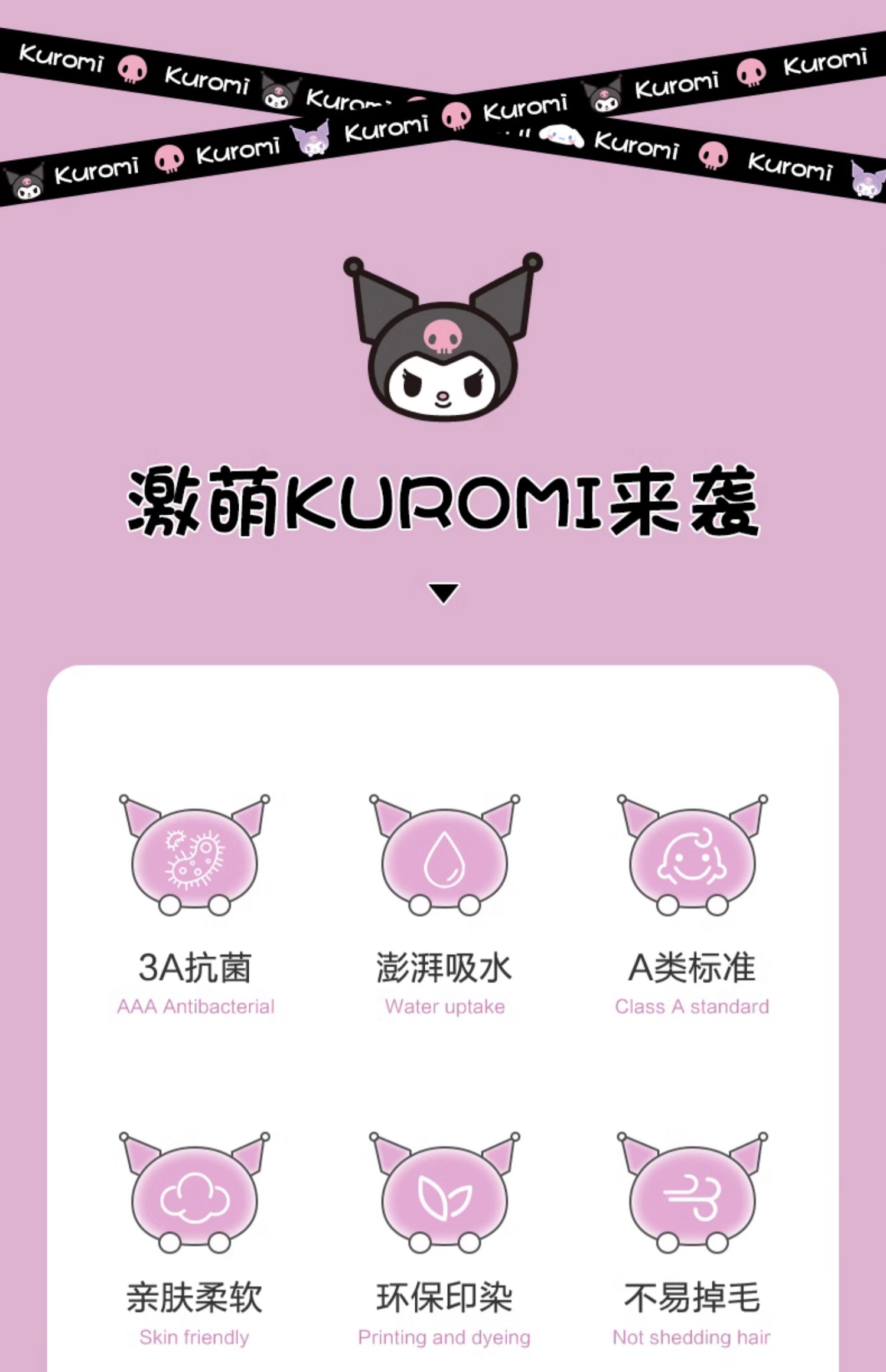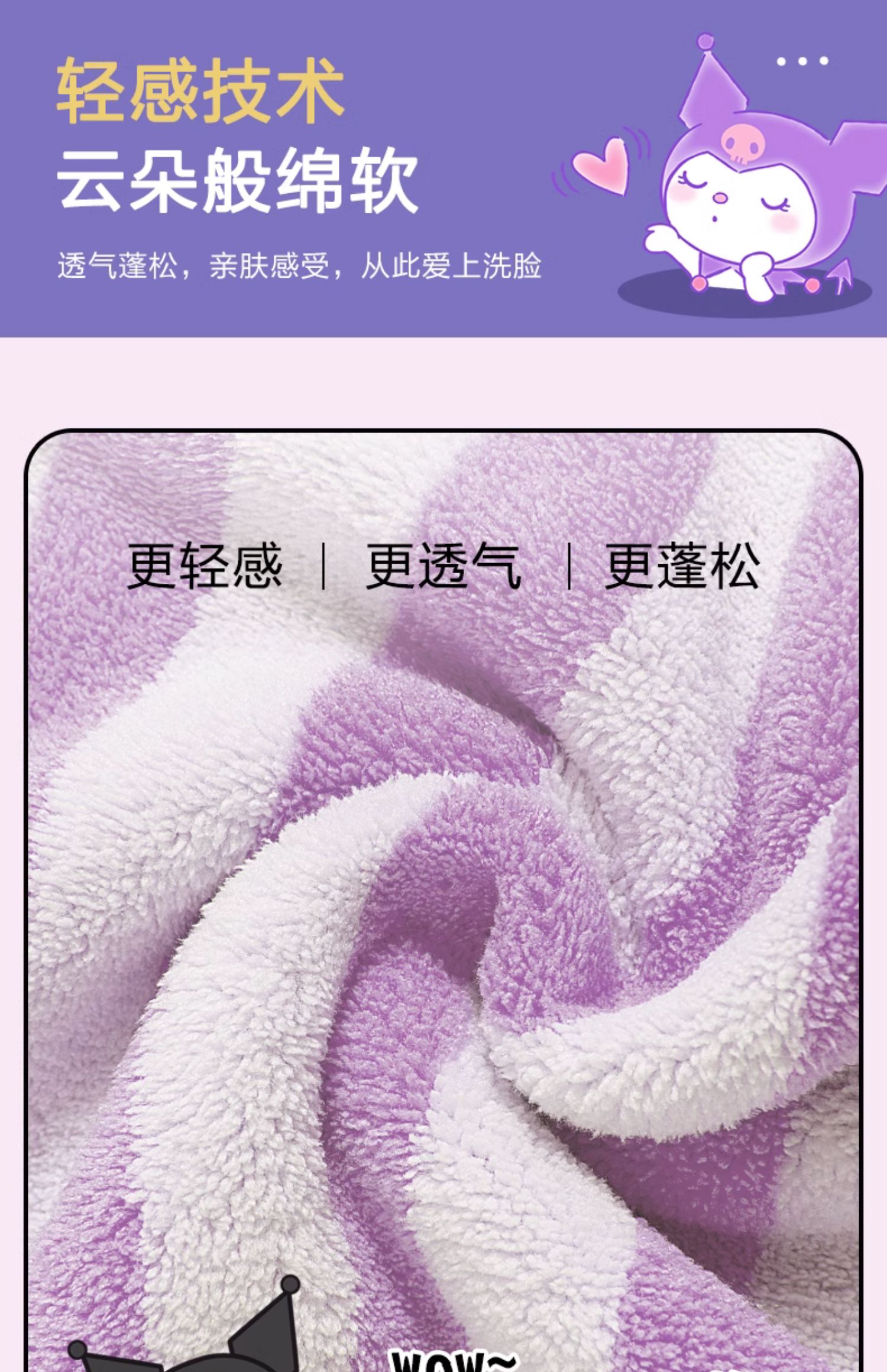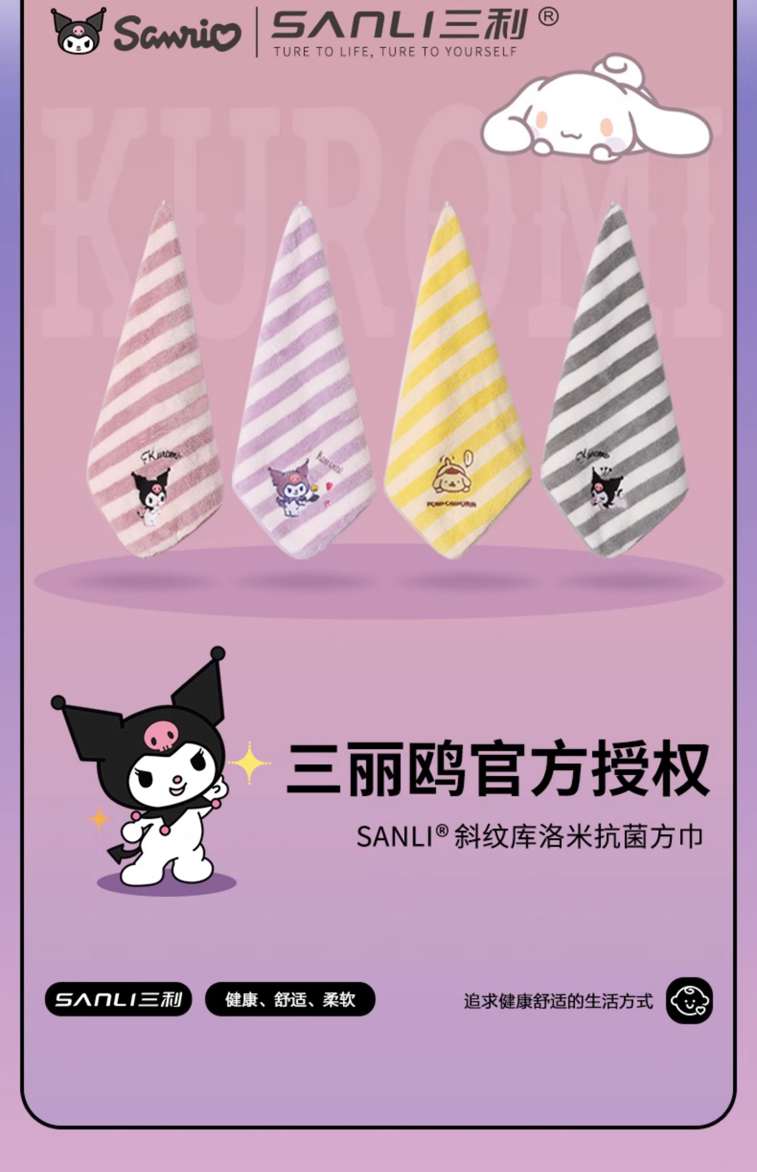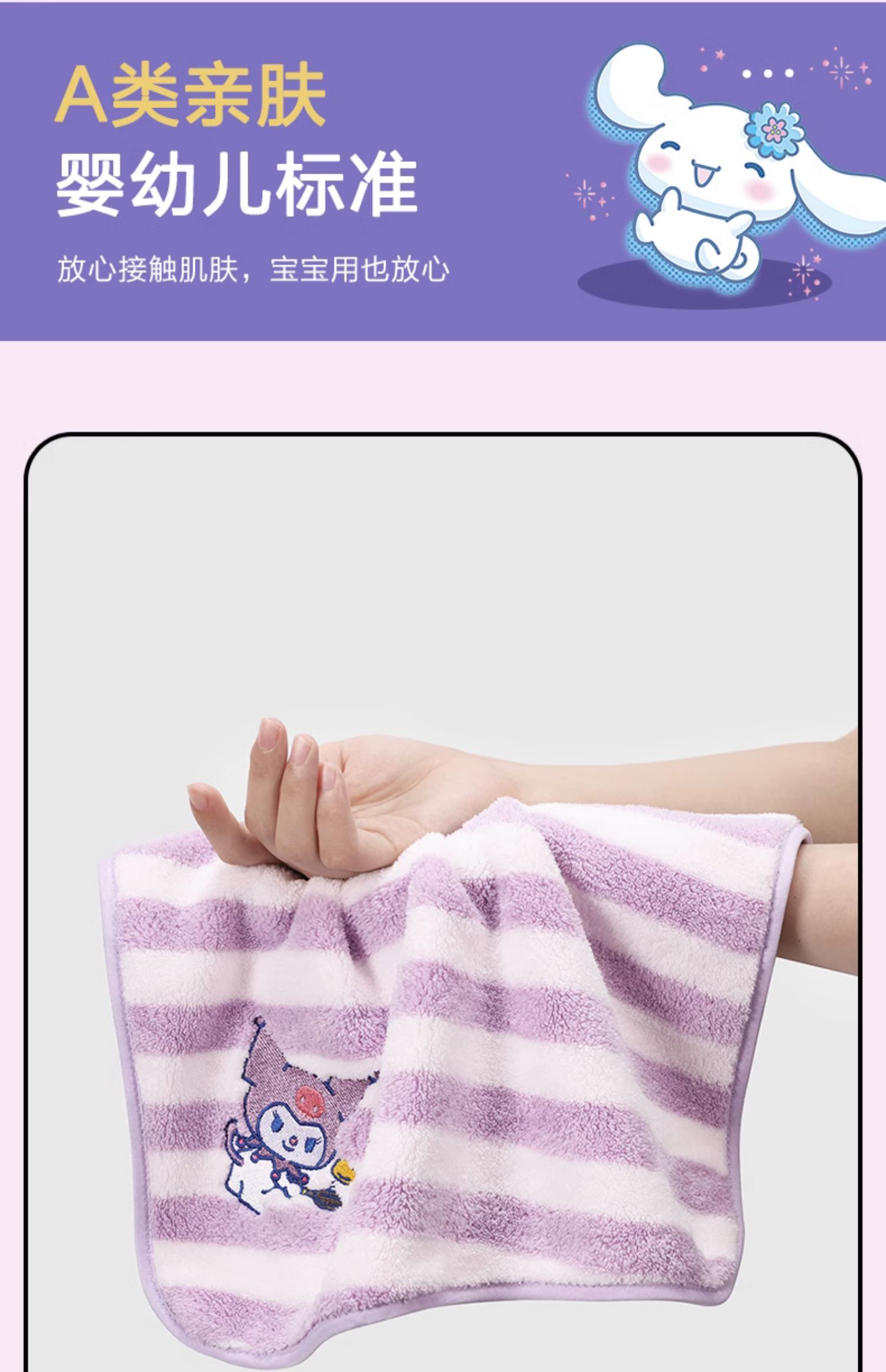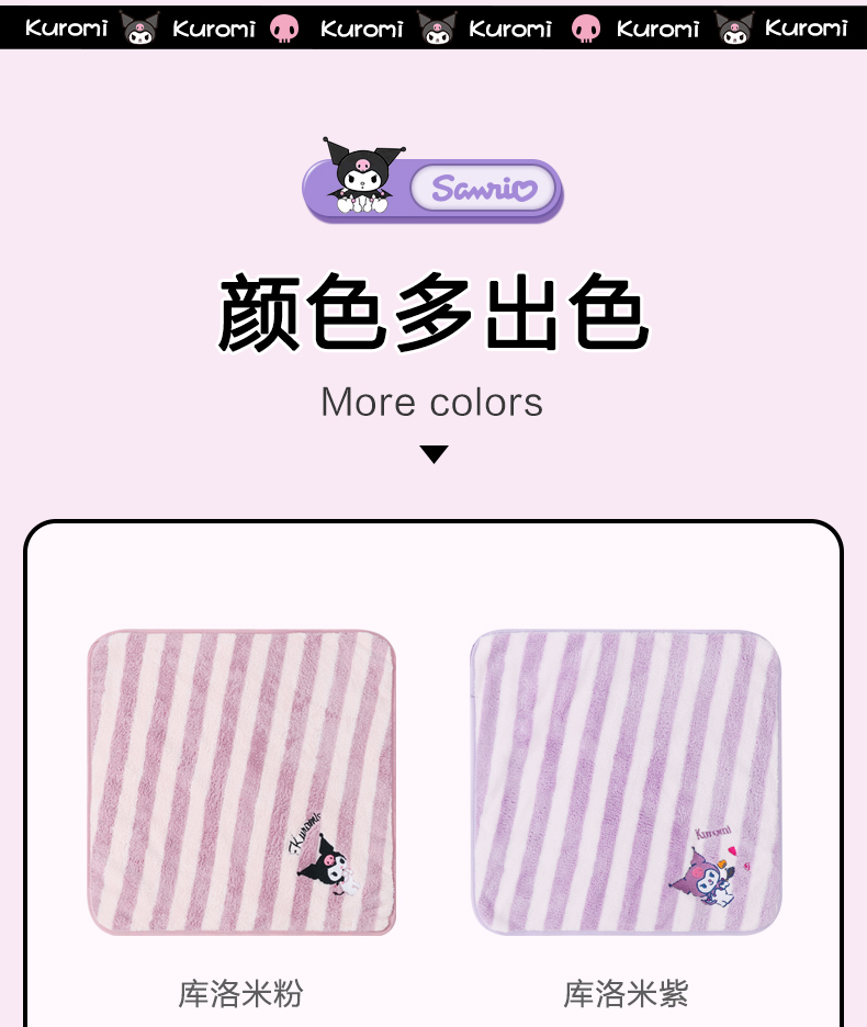 三利库洛米儿童毛巾方巾比纯棉吸水不易掉毛柔软小童巾擦手巾