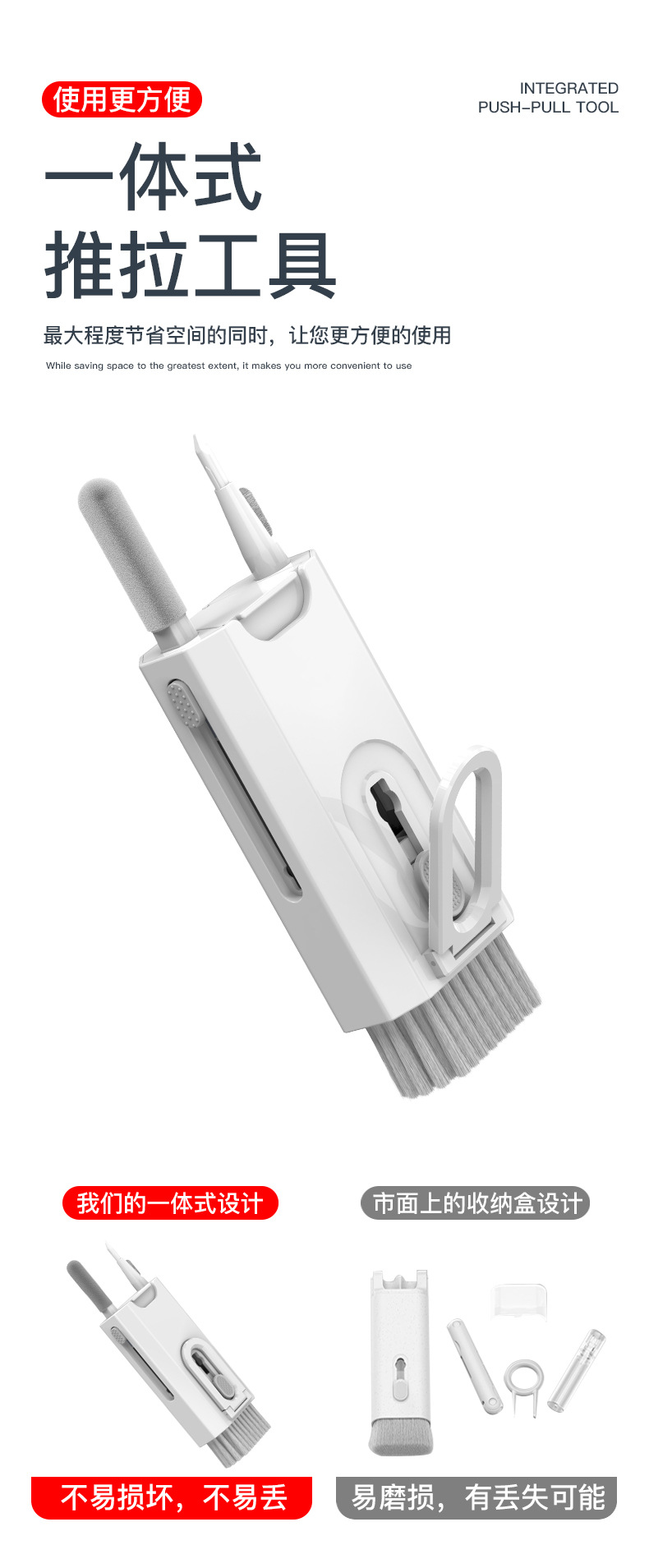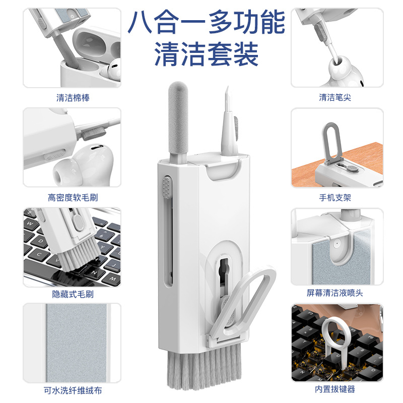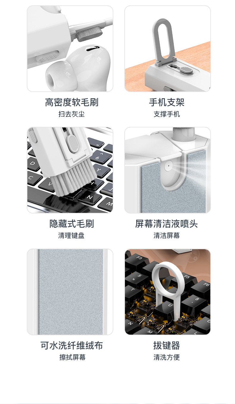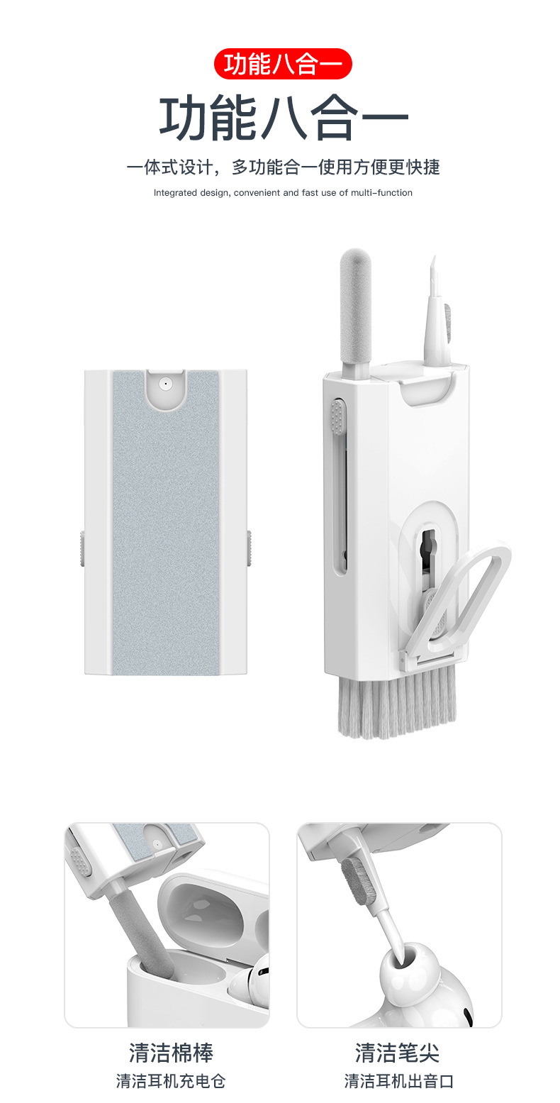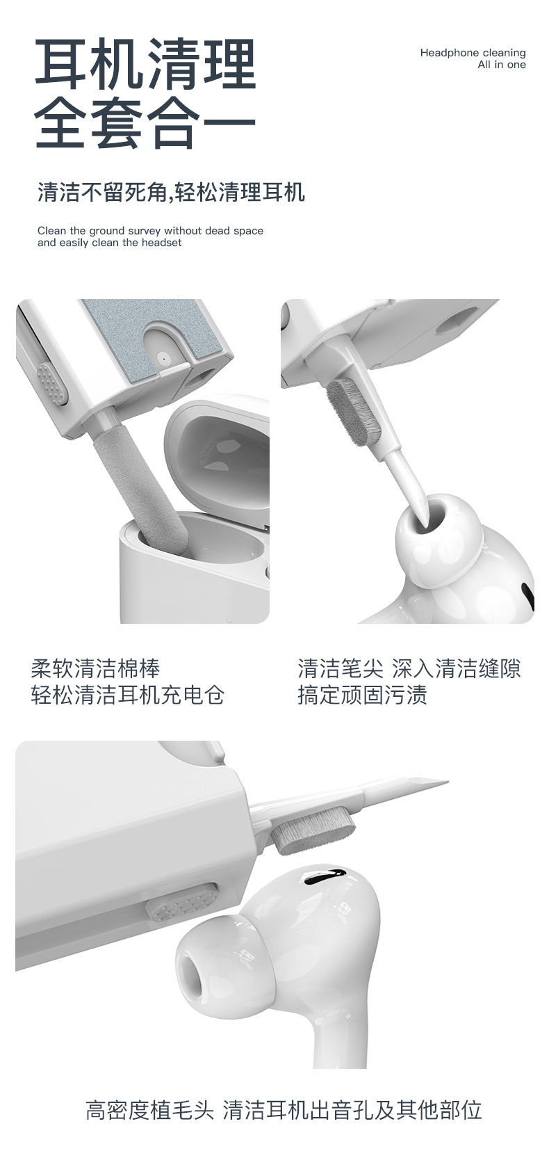 严选【数码多功能清洁套装带清洁液】相机电脑手机键盘清洁用品刷耳机清洁笔白色1套