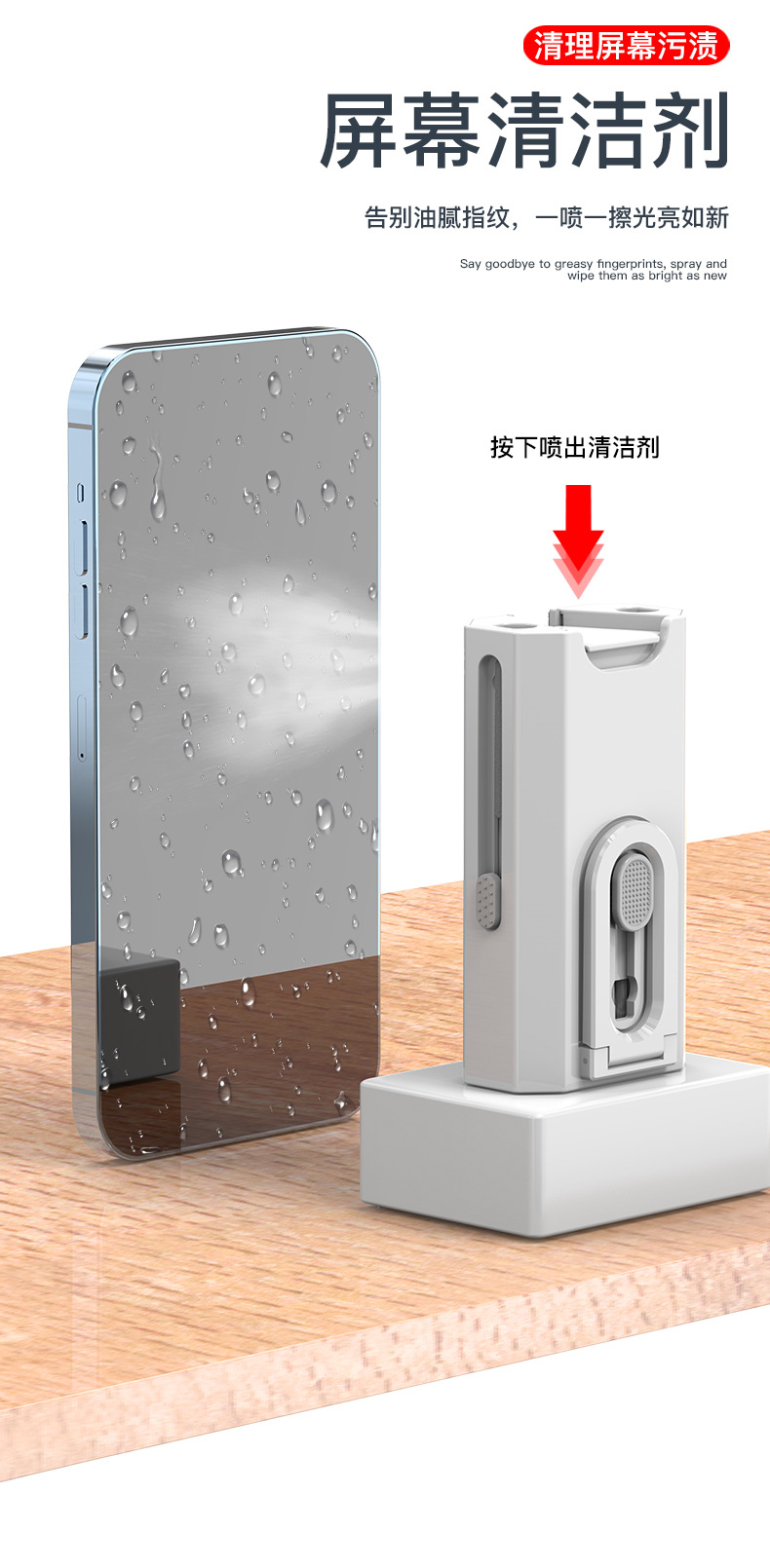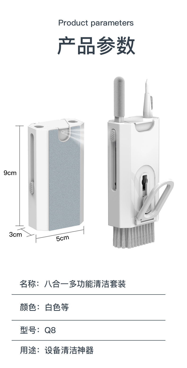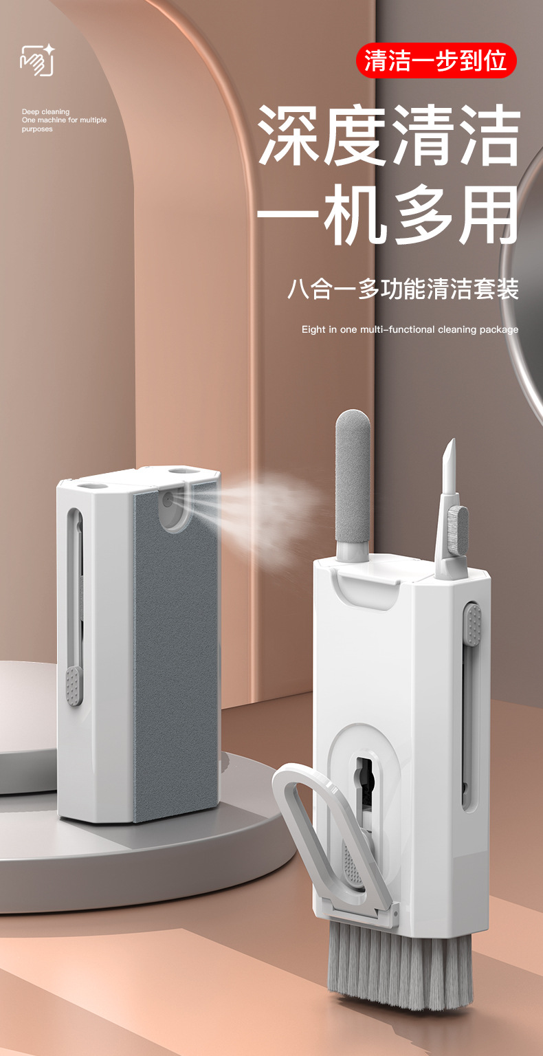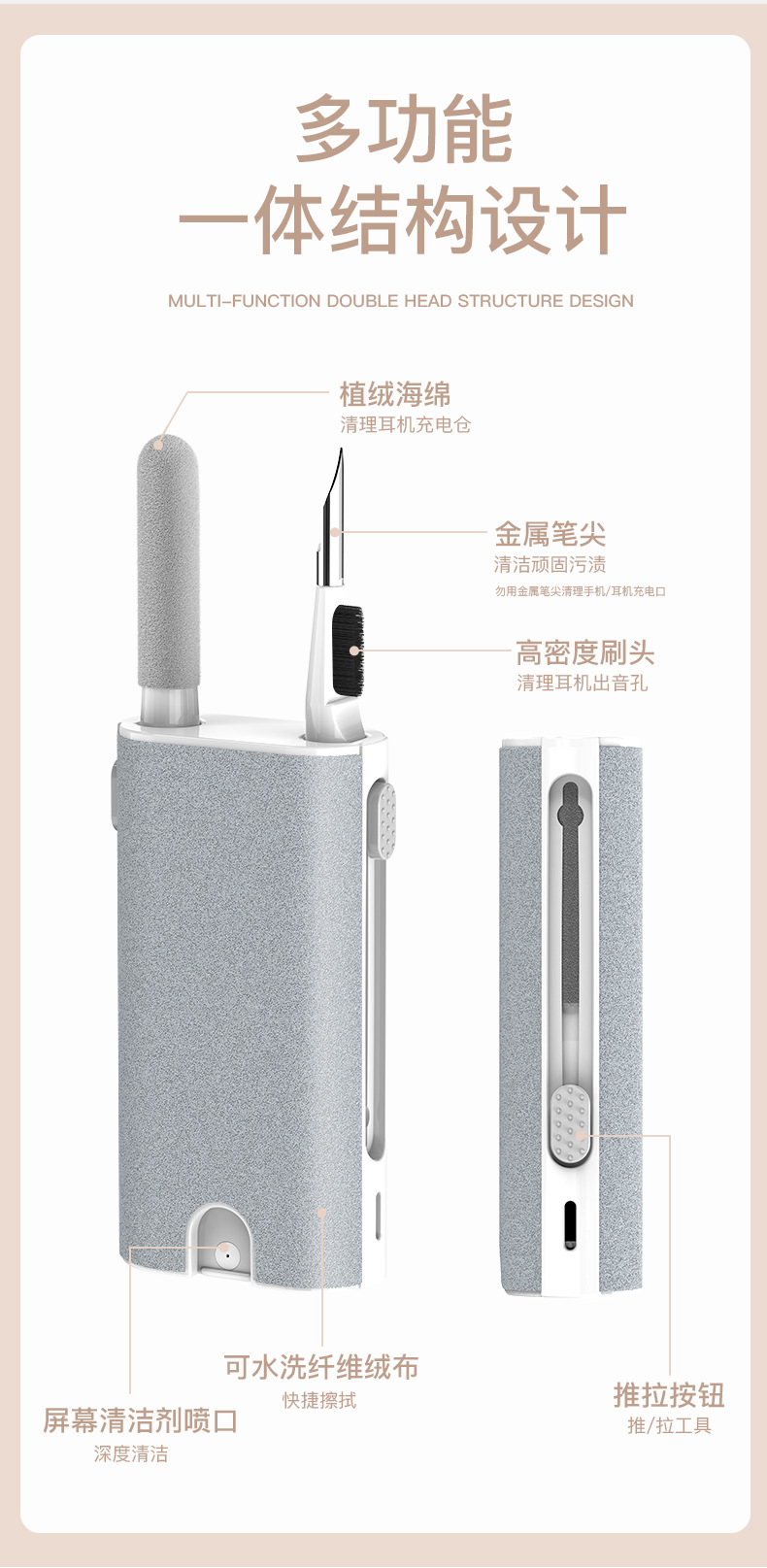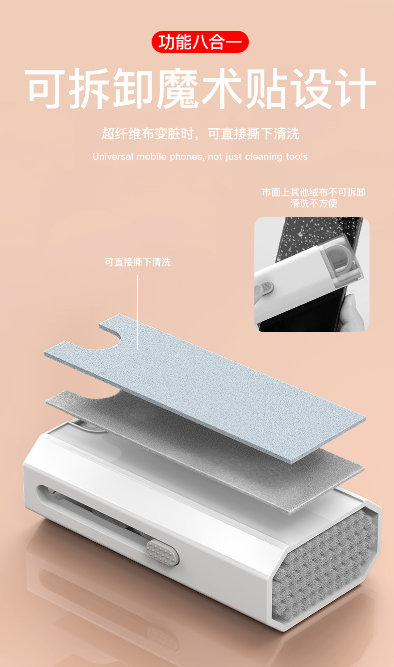 严选【数码多功能清洁套装带清洁液】相机电脑手机键盘清洁用品刷耳机清洁笔白色1套