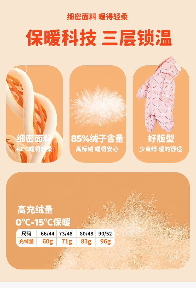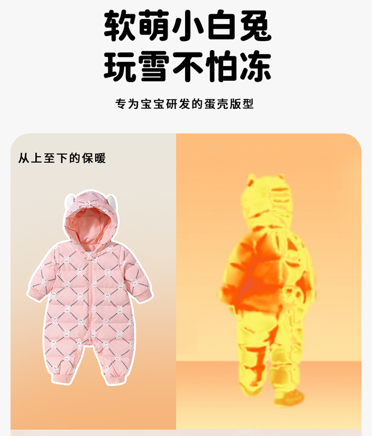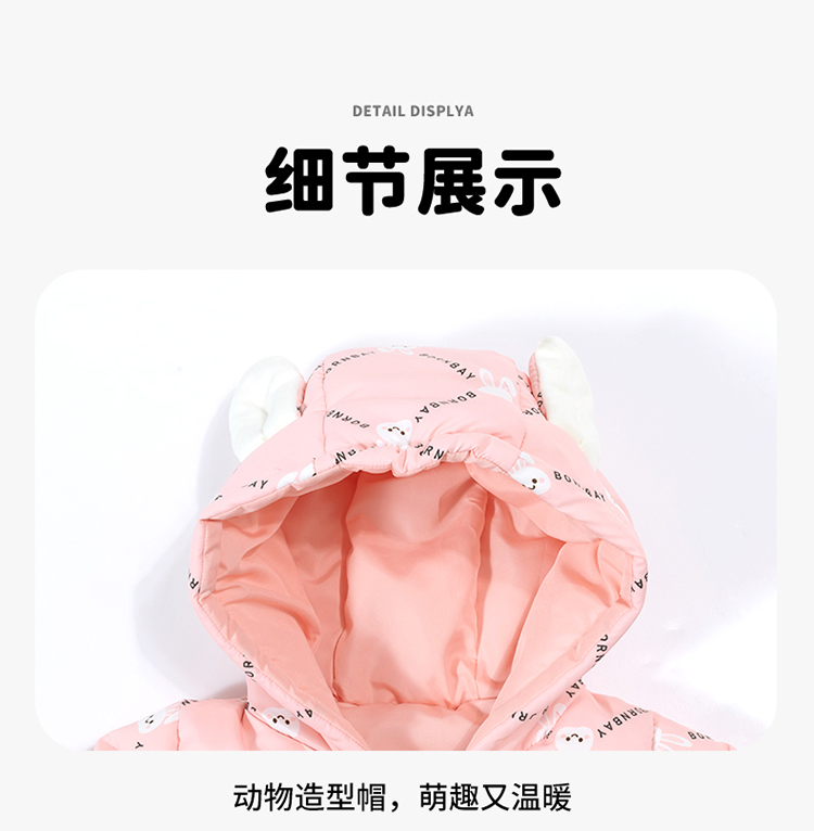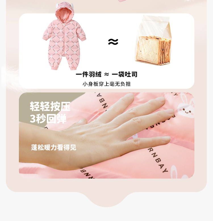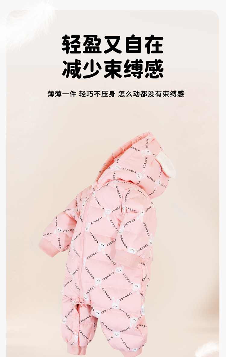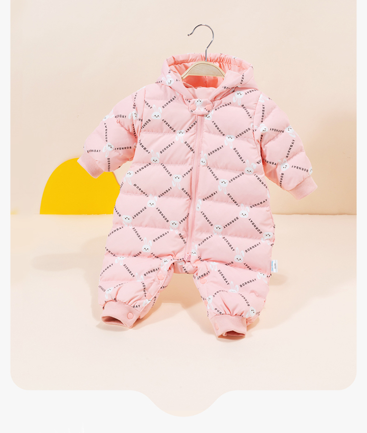 贝贝怡童装女童连体衣冬季新款羽绒服加厚保暖婴幼儿哈衣可爱爬服234L2068