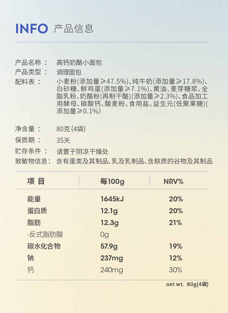 有效期至:鳕鱼肠:效期至26年5月,海苔脆:效期至26年7月,奶酪块:效期至26年9月,奶酪脆:效期至26年4月,奶贝:效期至26年8月,泡芙:效期至26年7月,软饼:效期至26年9月,动物饼干:效期至26年8月,小馒头:效期至26年9月,炭烧棒:效期至26年8月,高钙虾片脆:效期至26年7月,牛乳棒:效期至26年10月,坚果酥:效期至26年5月,威化:效期至26年10月,山楂棒:效期至26年7月