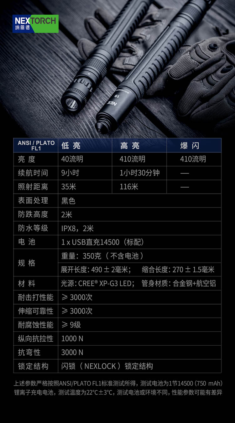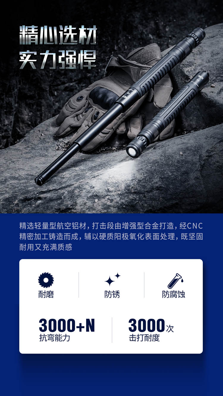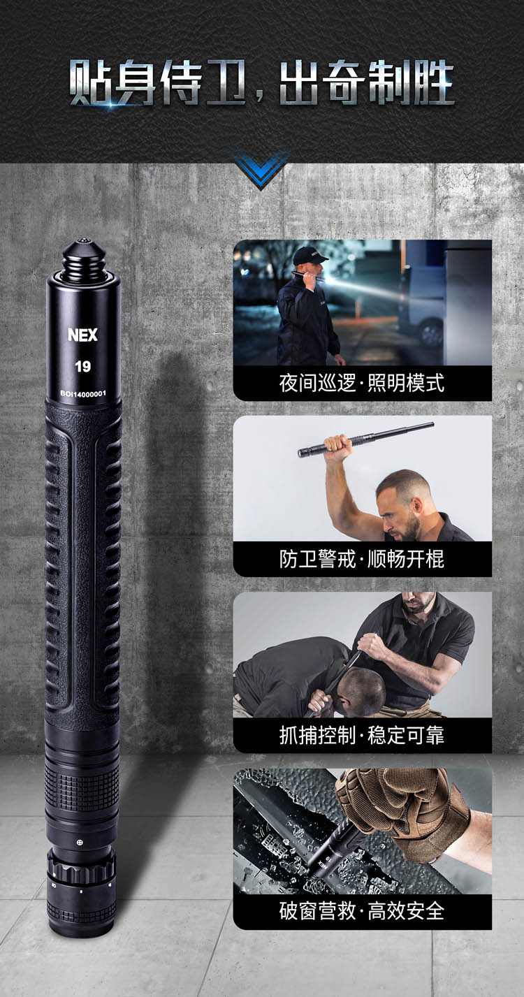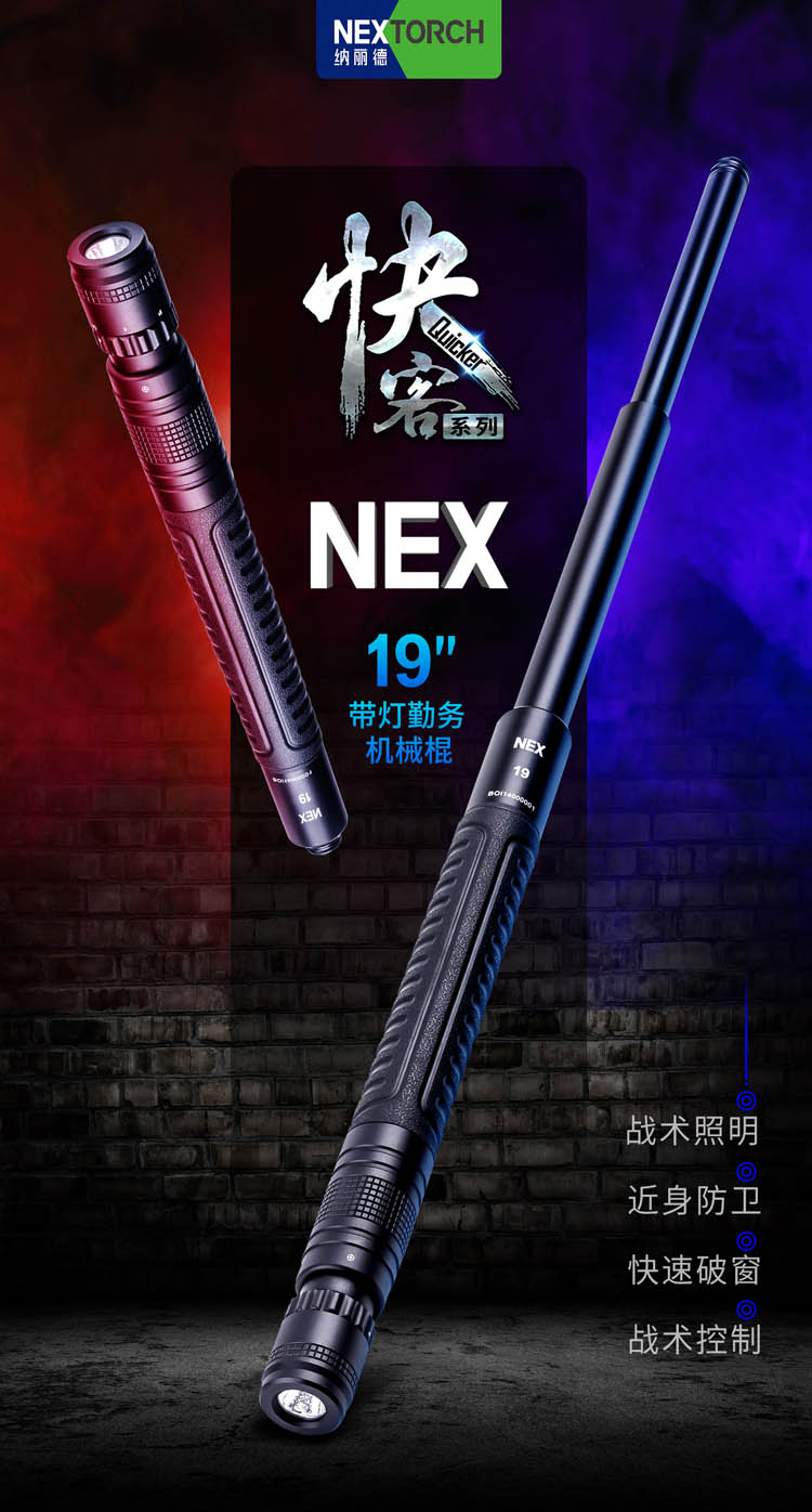 纳丽德(NEXTORCH)19英寸带灯快客勤务棍机械甩棍车载防身武器合法用品武器