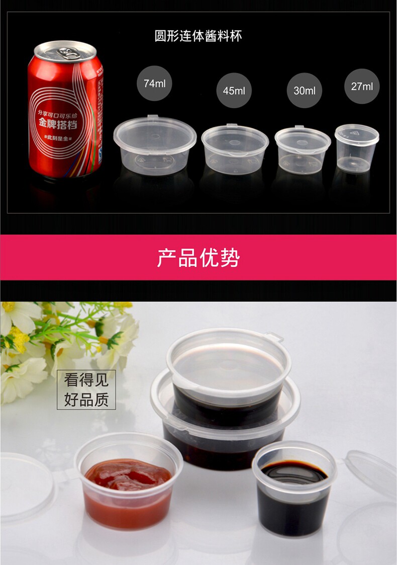 喇叭花27ml调料杯塑料盒子一次性打包调料盒外卖酱料杯透明连体带盖1000只