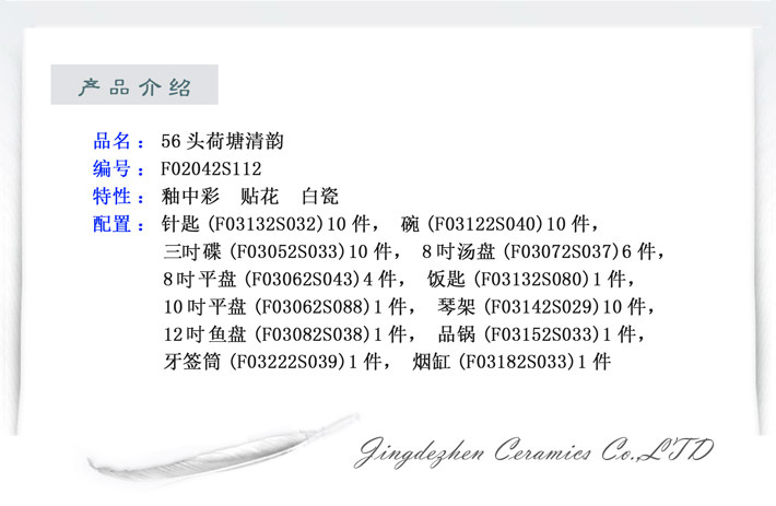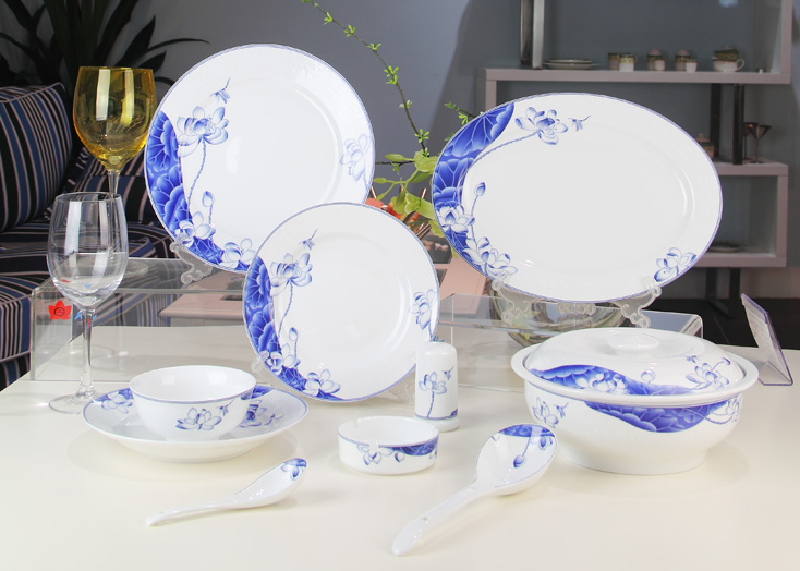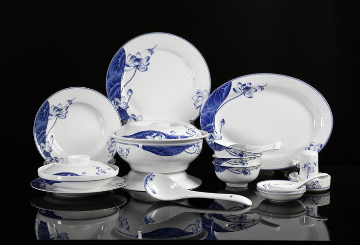 景德镇陶瓷 国瓷红叶 荷塘清韵中餐具