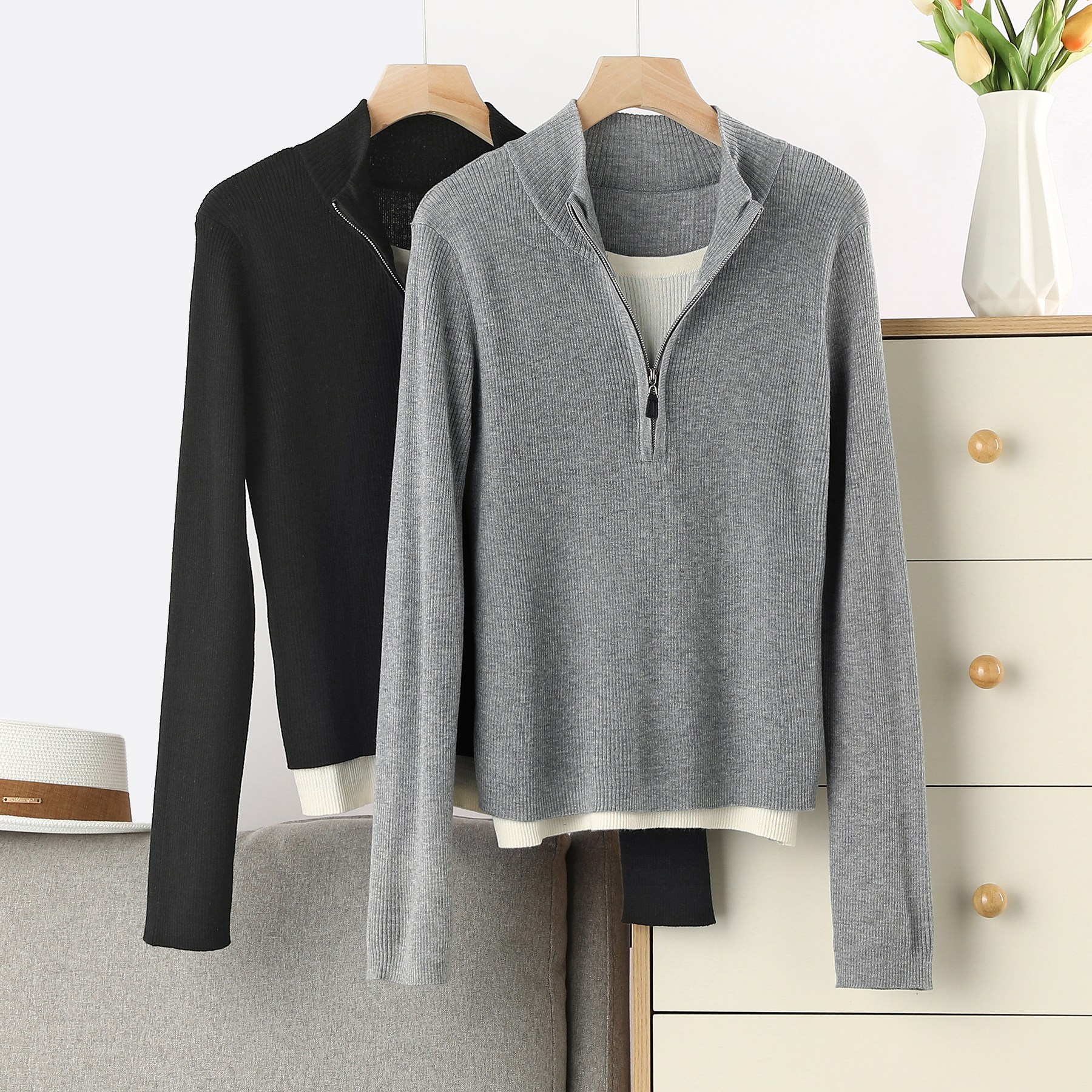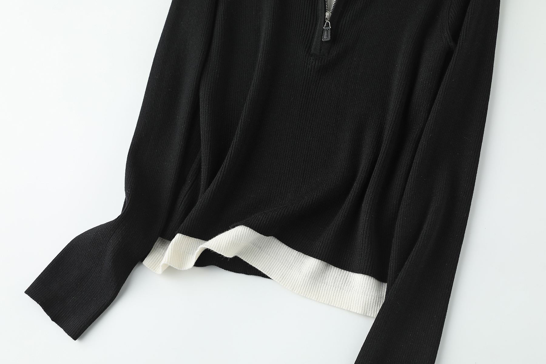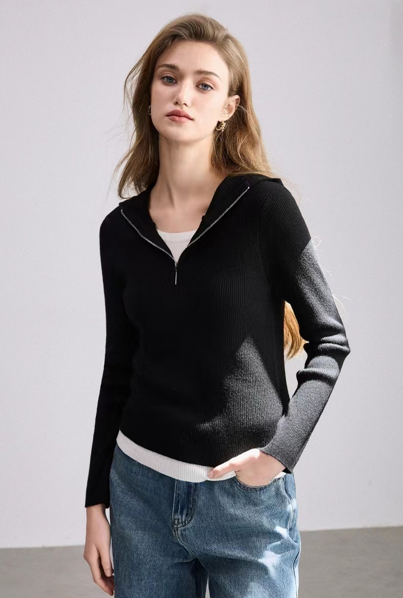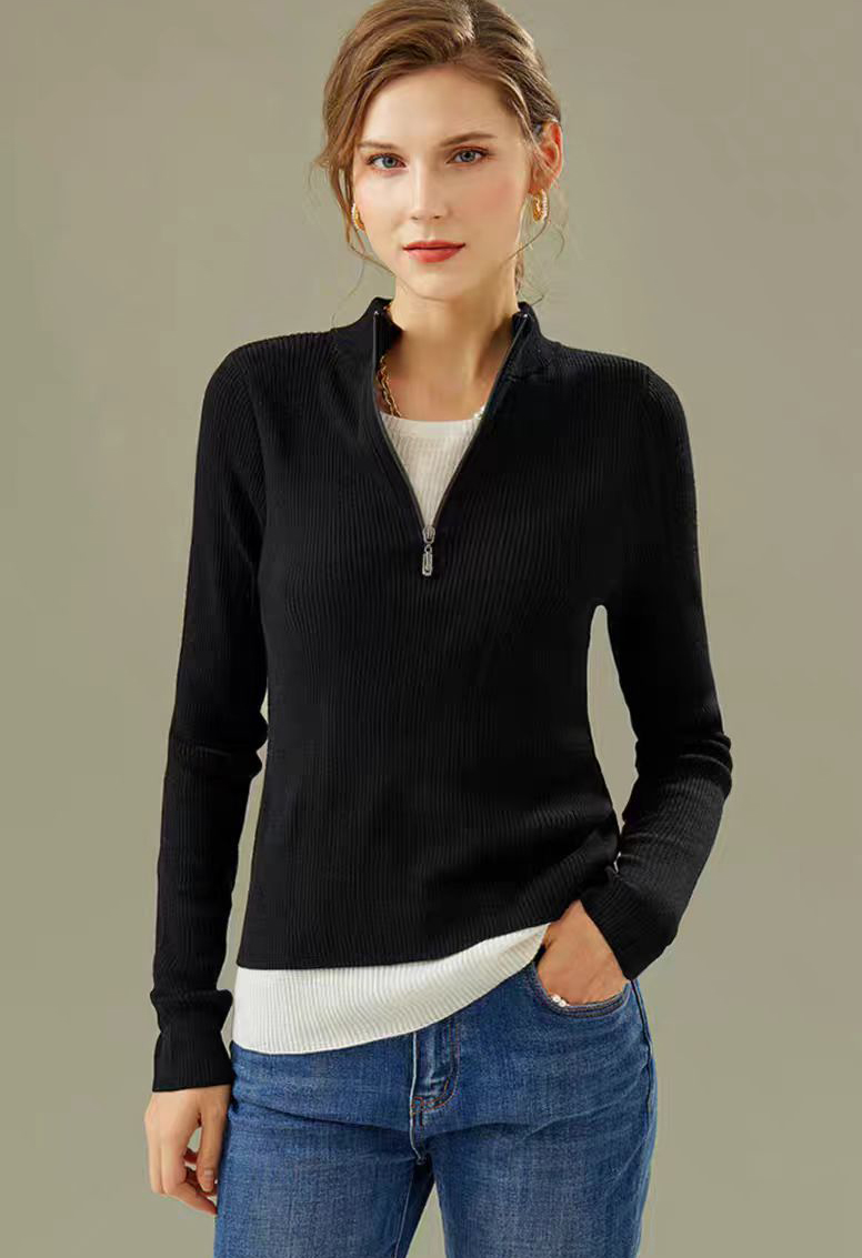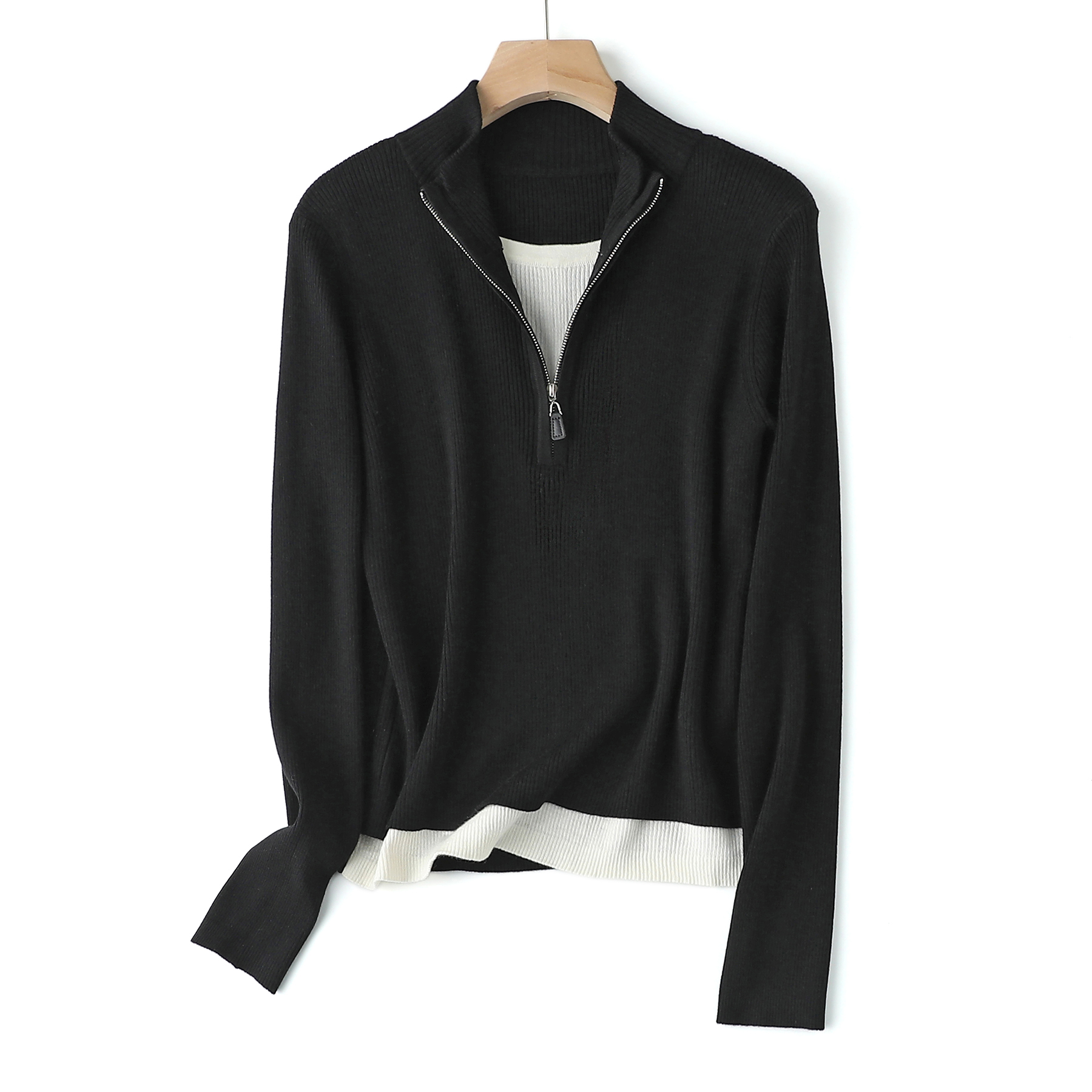 半拉链立领打底假两件针织衫 松弛氛围感撞色设计 百搭实穿 双层下摆 一件GET叠穿效果 视觉层次丰富