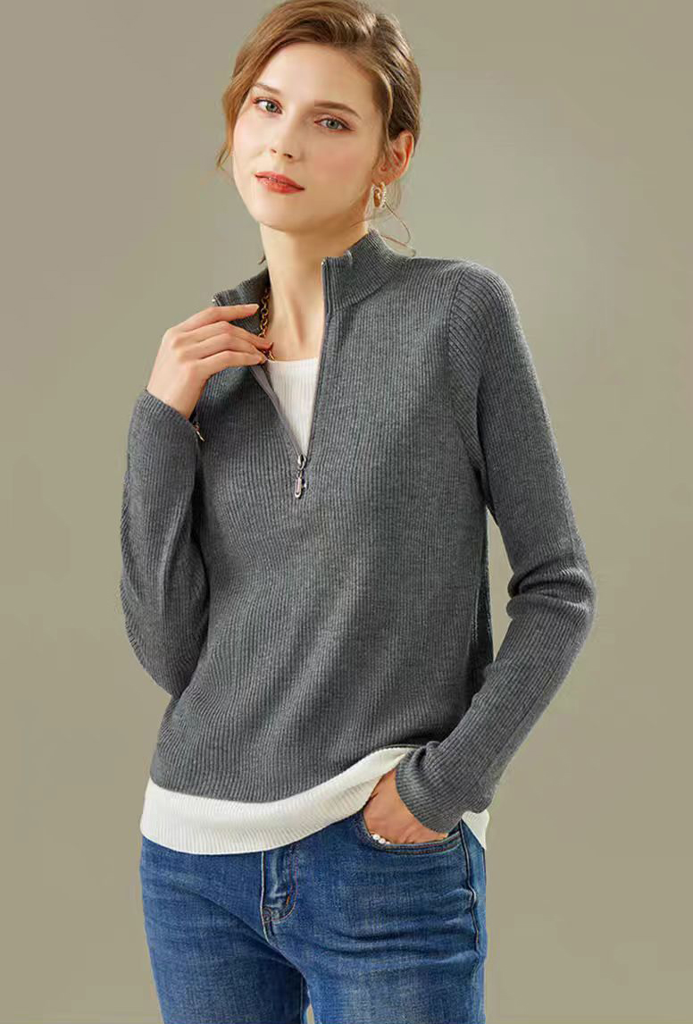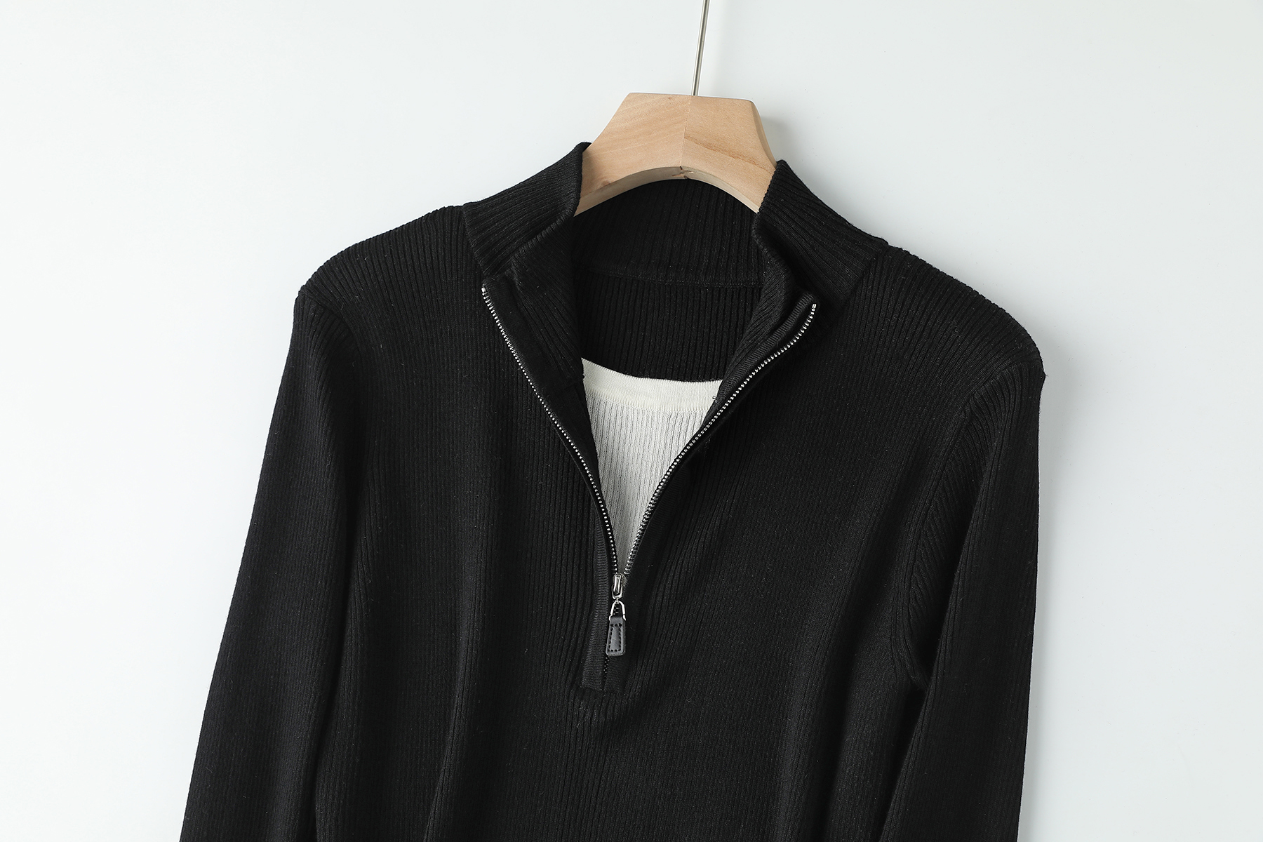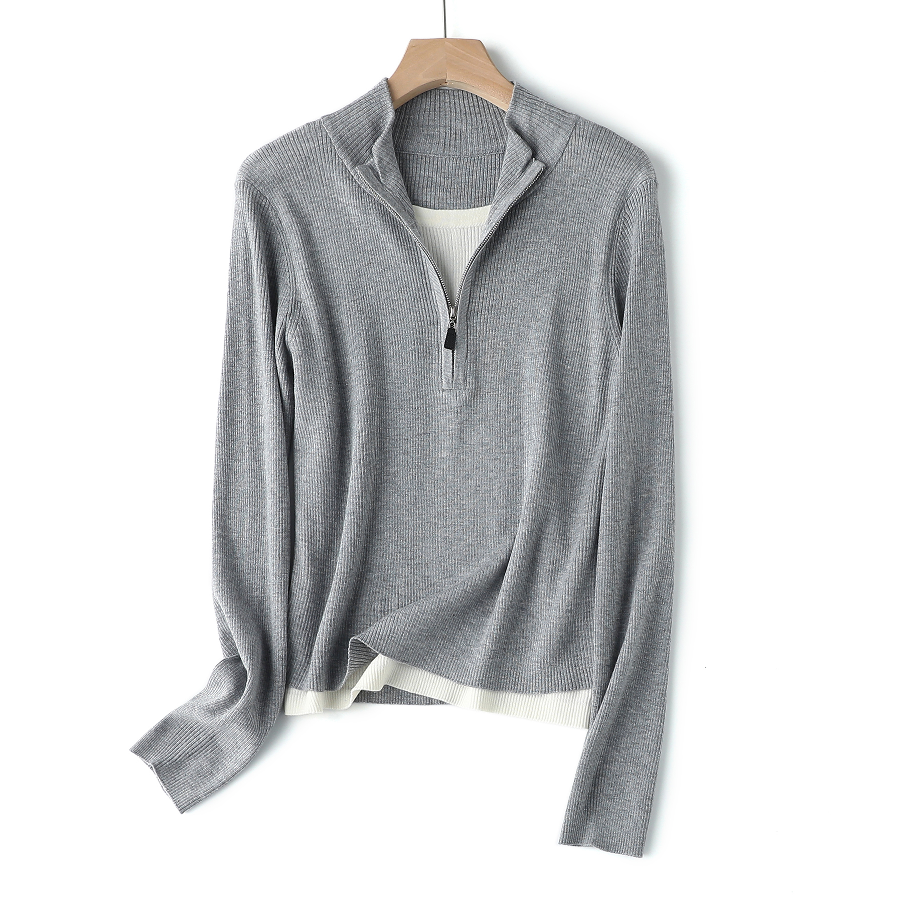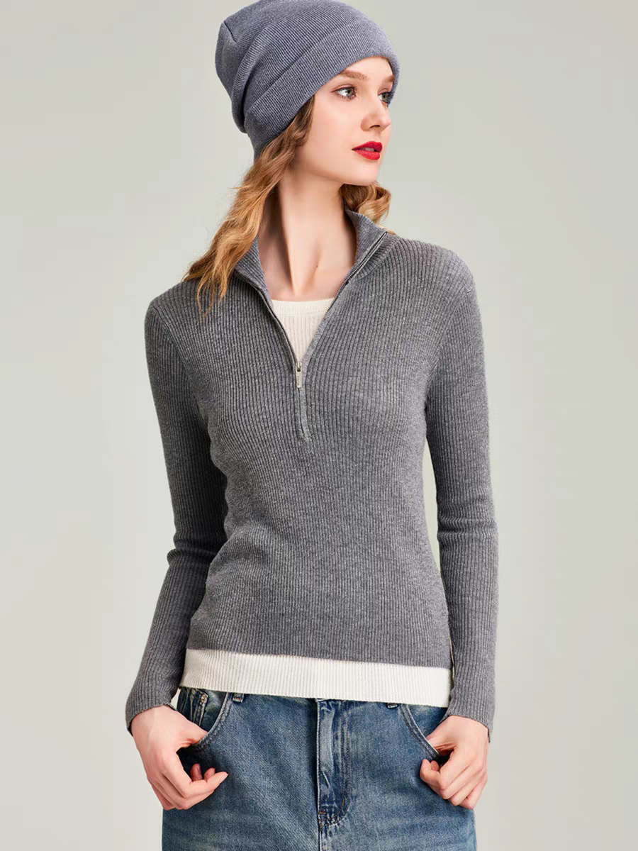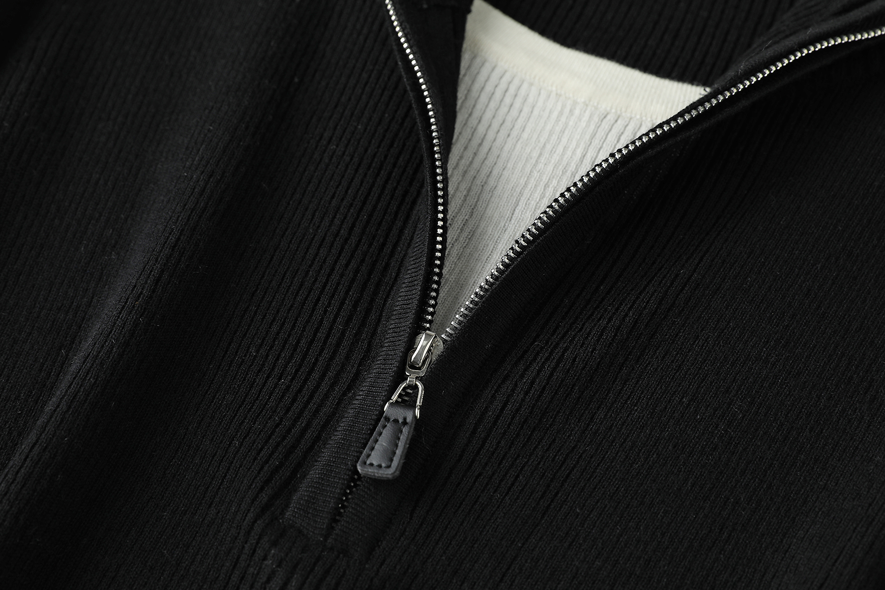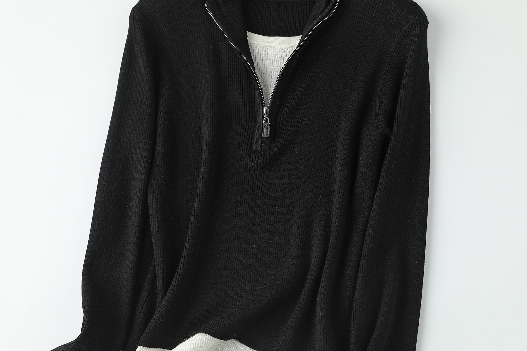 半拉链立领打底假两件针织衫 松弛氛围感撞色设计 百搭实穿 双层下摆 一件GET叠穿效果 视觉层次丰富