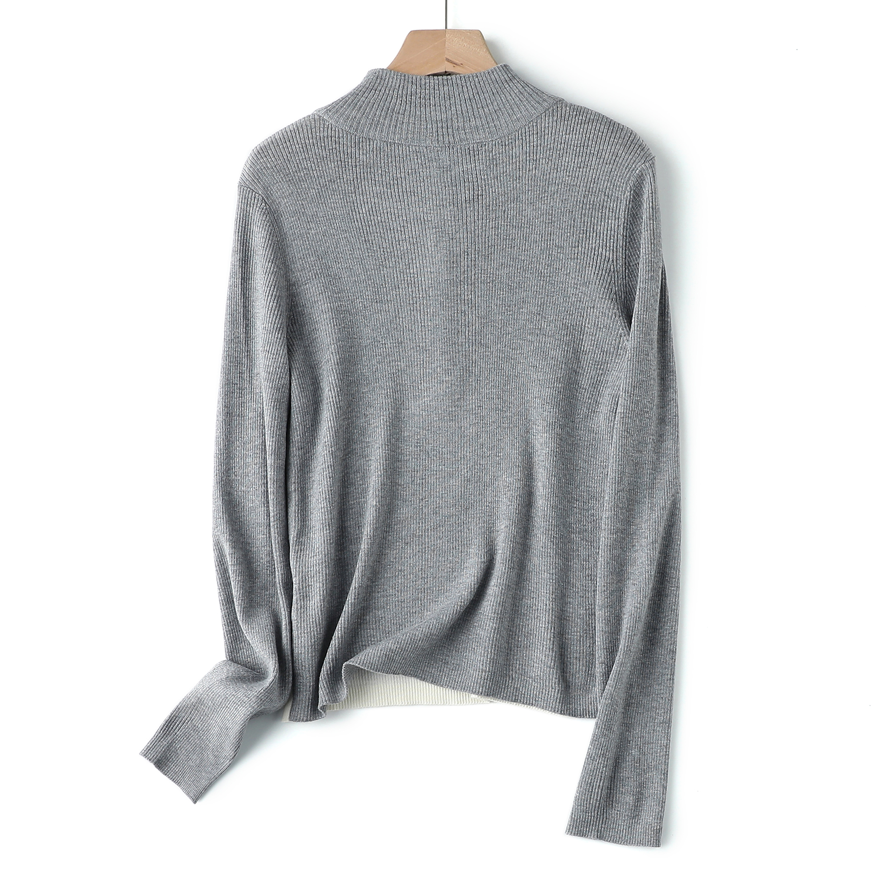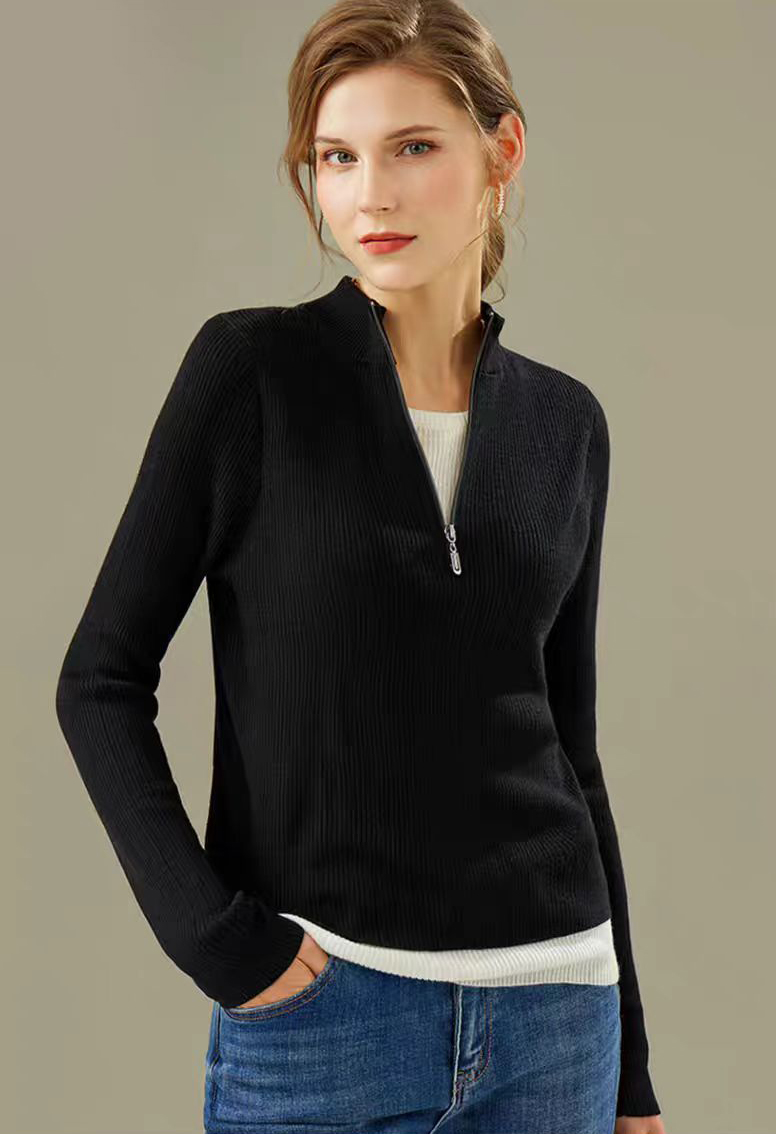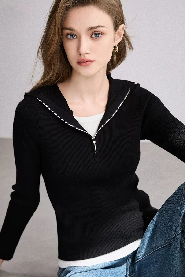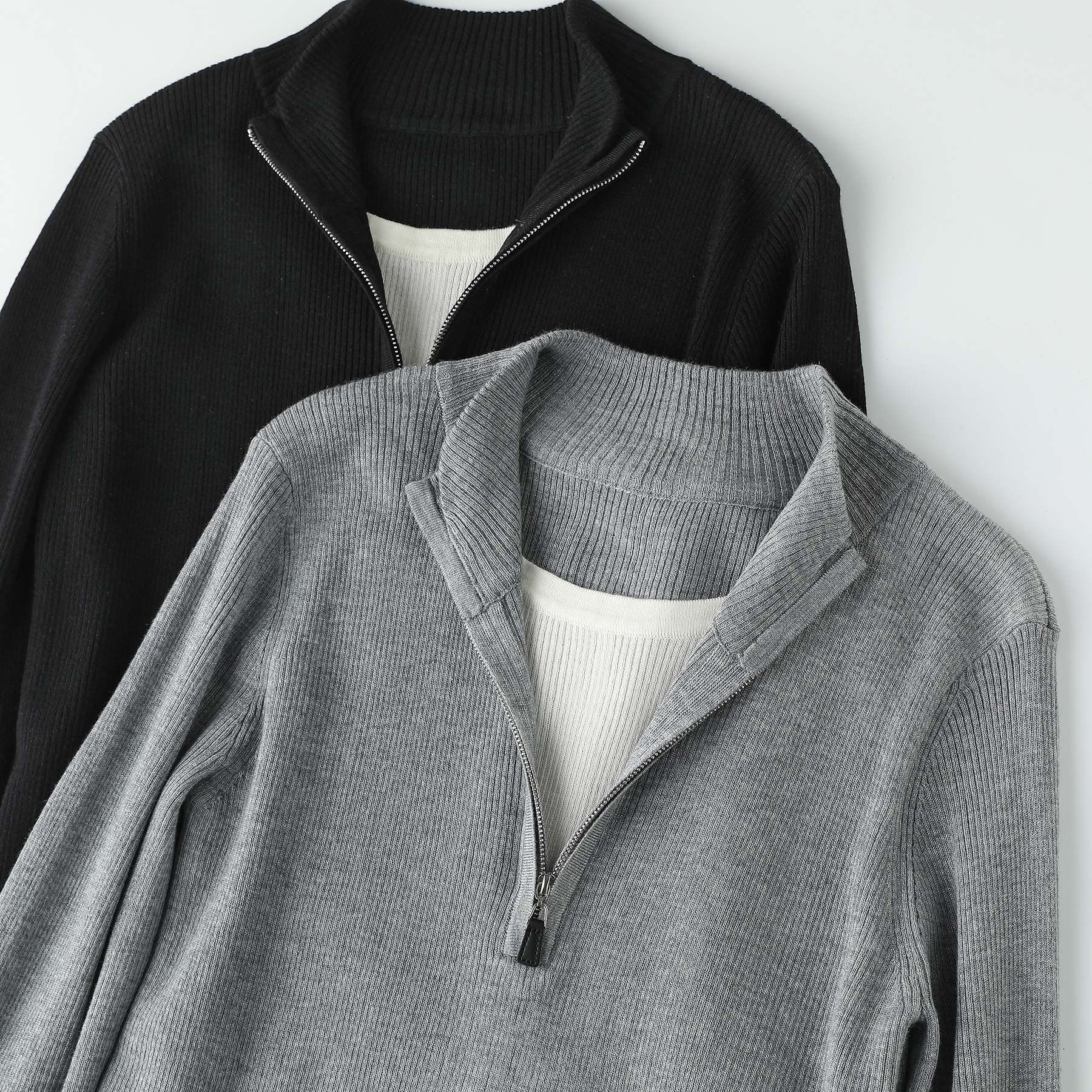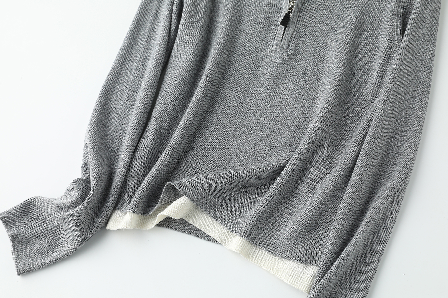 半拉链立领打底假两件针织衫 松弛氛围感撞色设计 百搭实穿 双层下摆 一件GET叠穿效果 视觉层次丰富