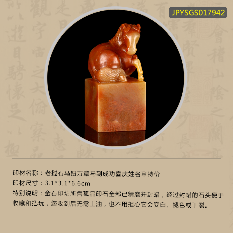 孤品17942老挝石马钮方章马到成功喜庆姓名章特价3.1*3.1*6.6cm