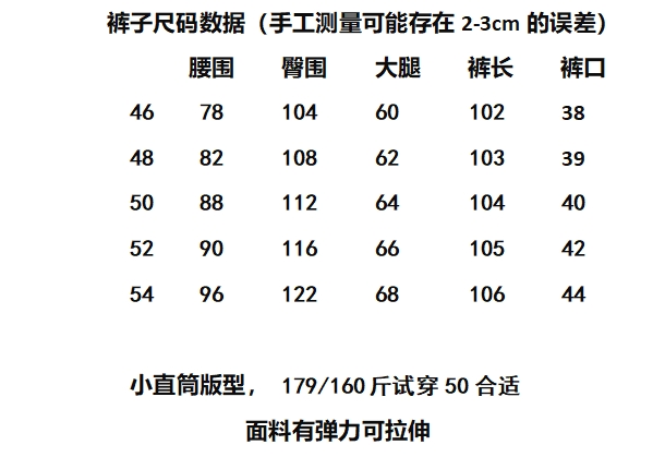 两个颜色 46-54相当于 30/32/34/36/38 五个码