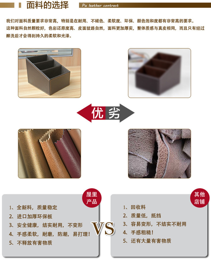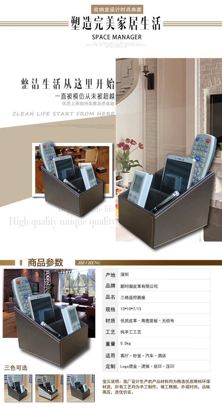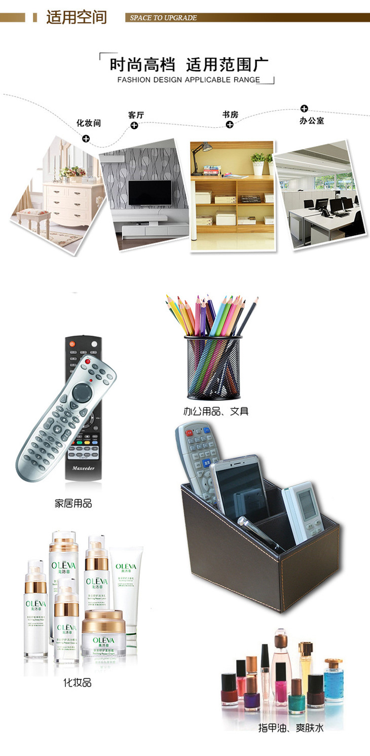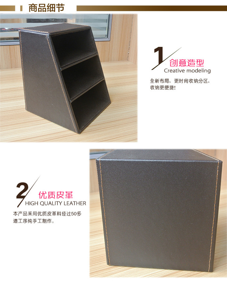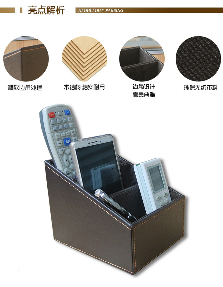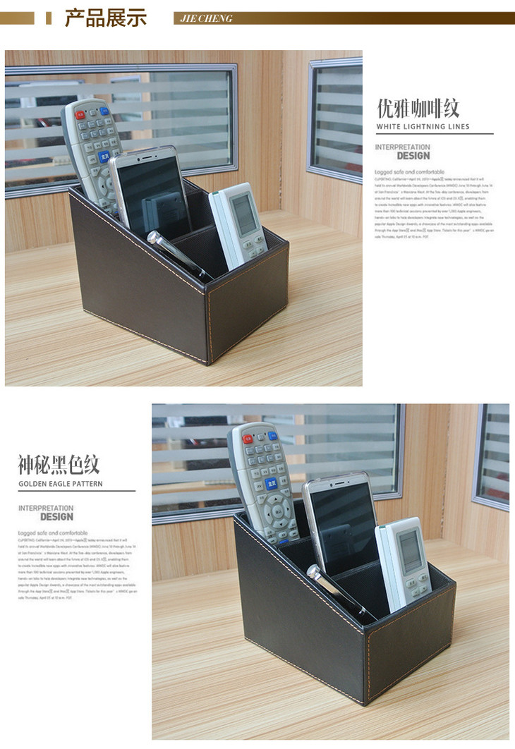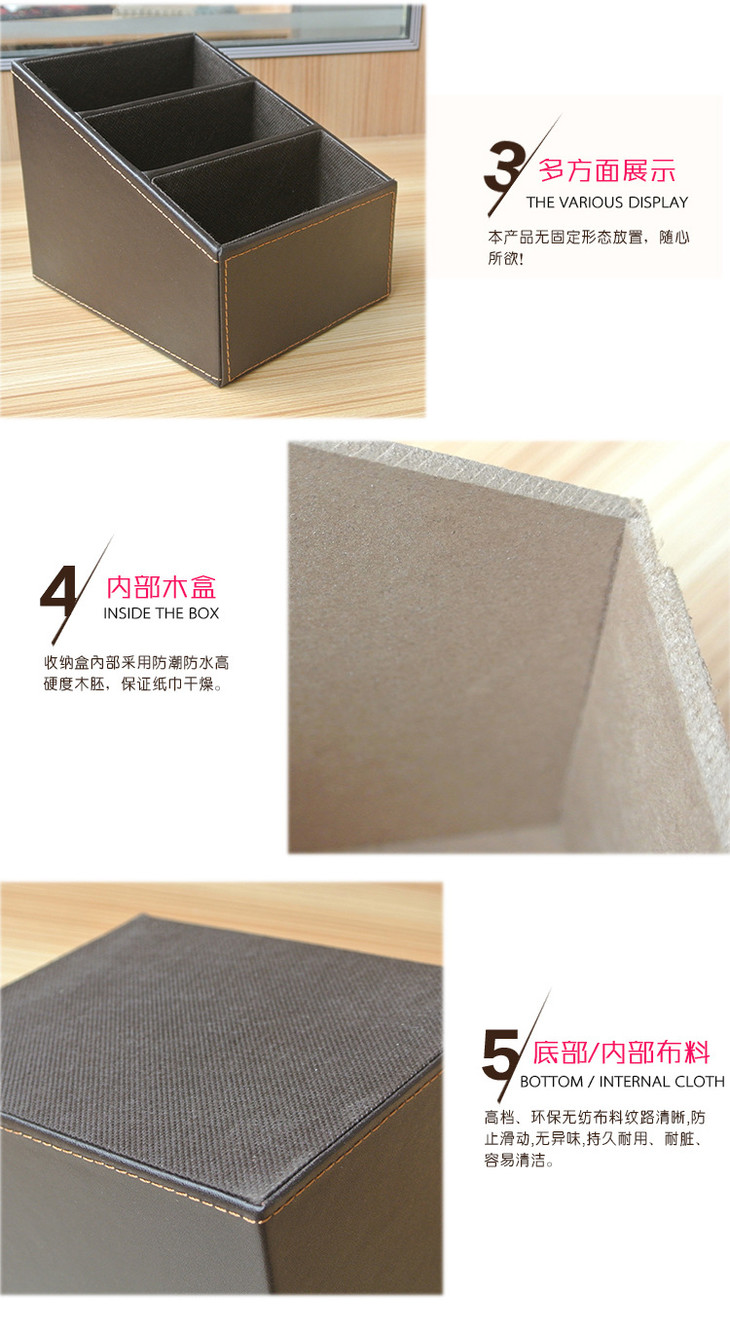 【居家用品】*创意PU皮革收纳盒 办公桌面遥控器用品整理盒 欧式家居三格座