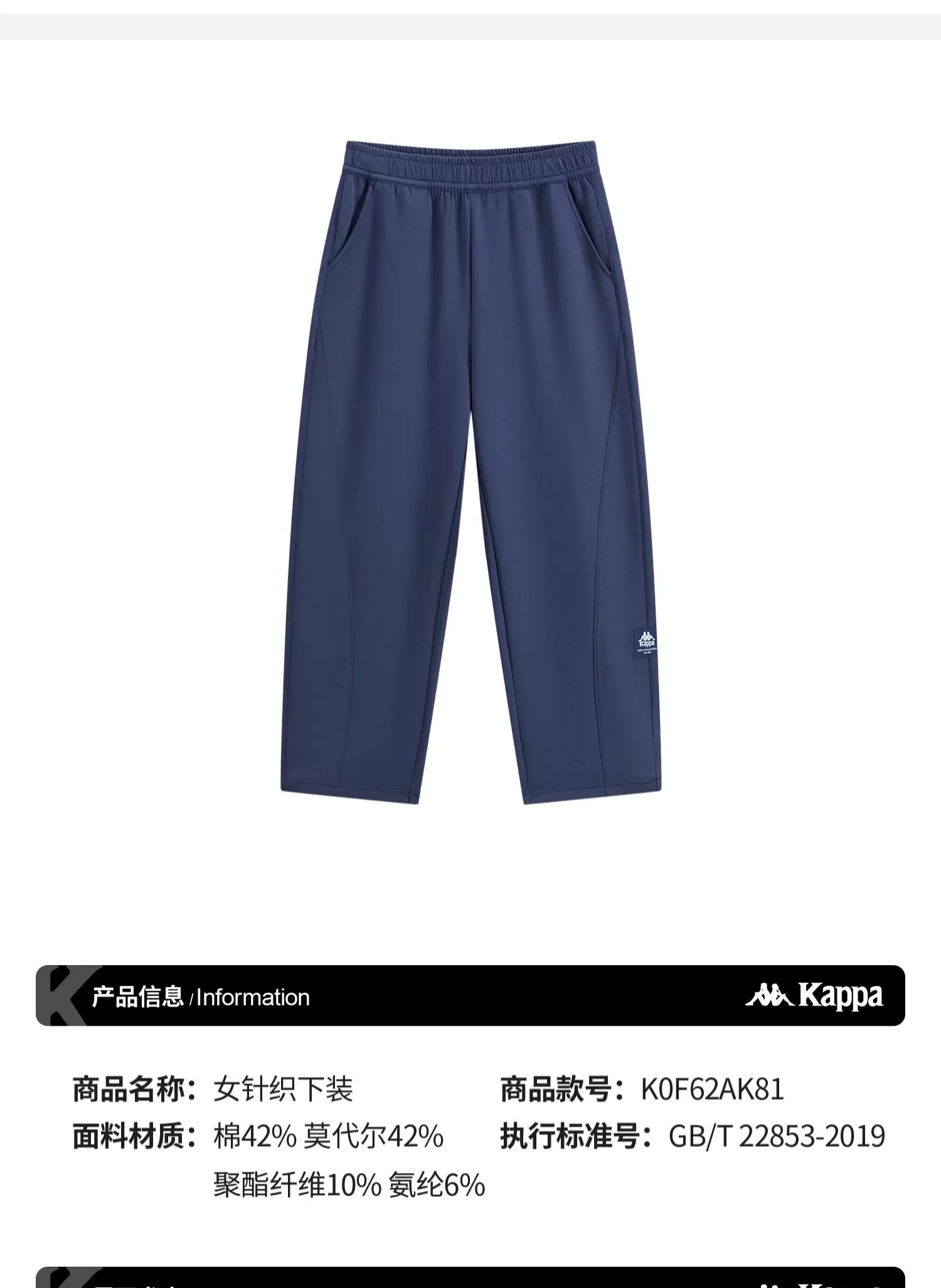 【春上新】【6折】6楼卡帕Kappa女款2025秋季新款休闲百搭舒适直筒针织长裤K0F62AK81原价549现价329