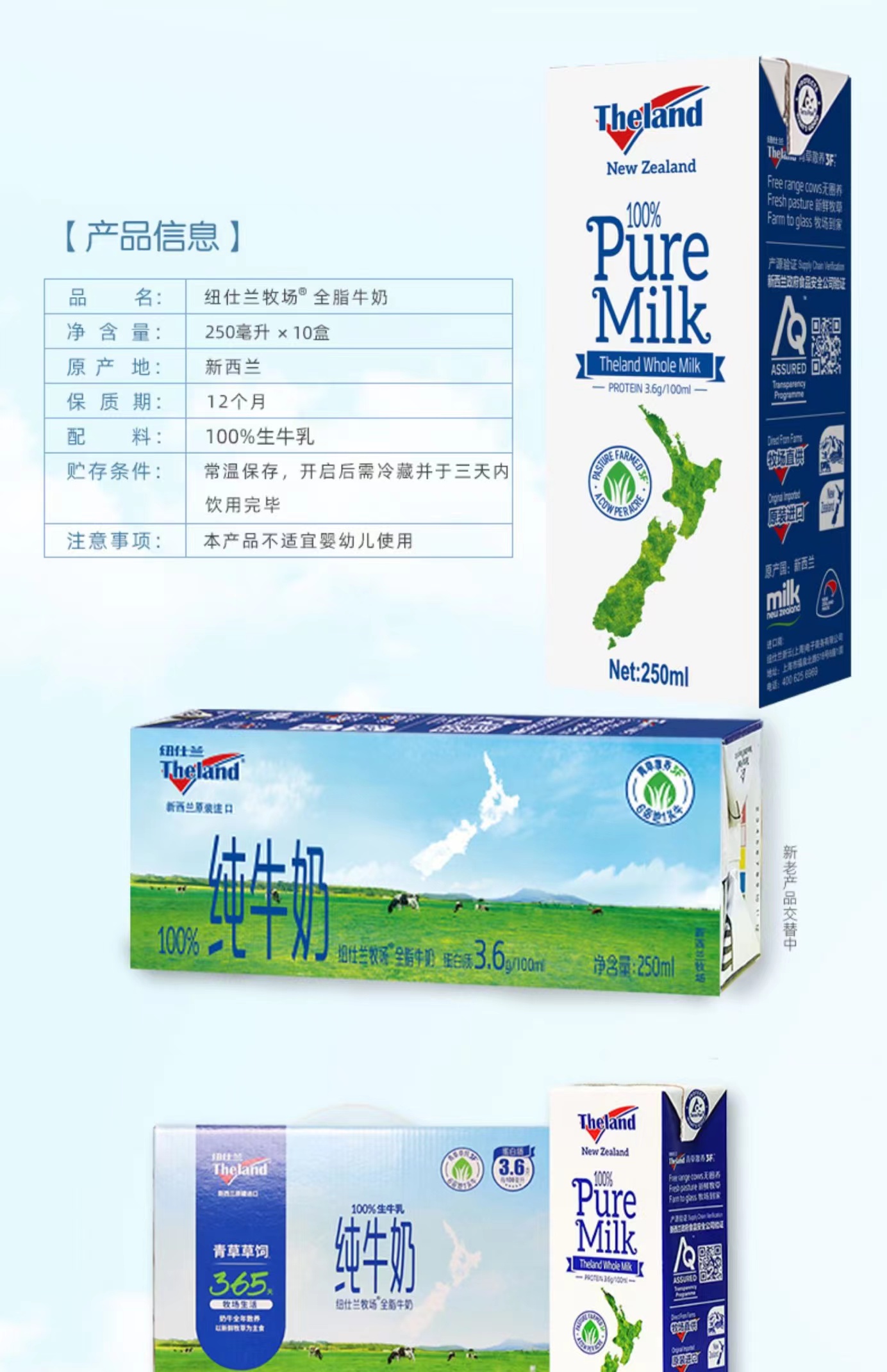 纽仕兰牛奶 新西兰进口 3.6g高钙全脂低脂纯牛奶