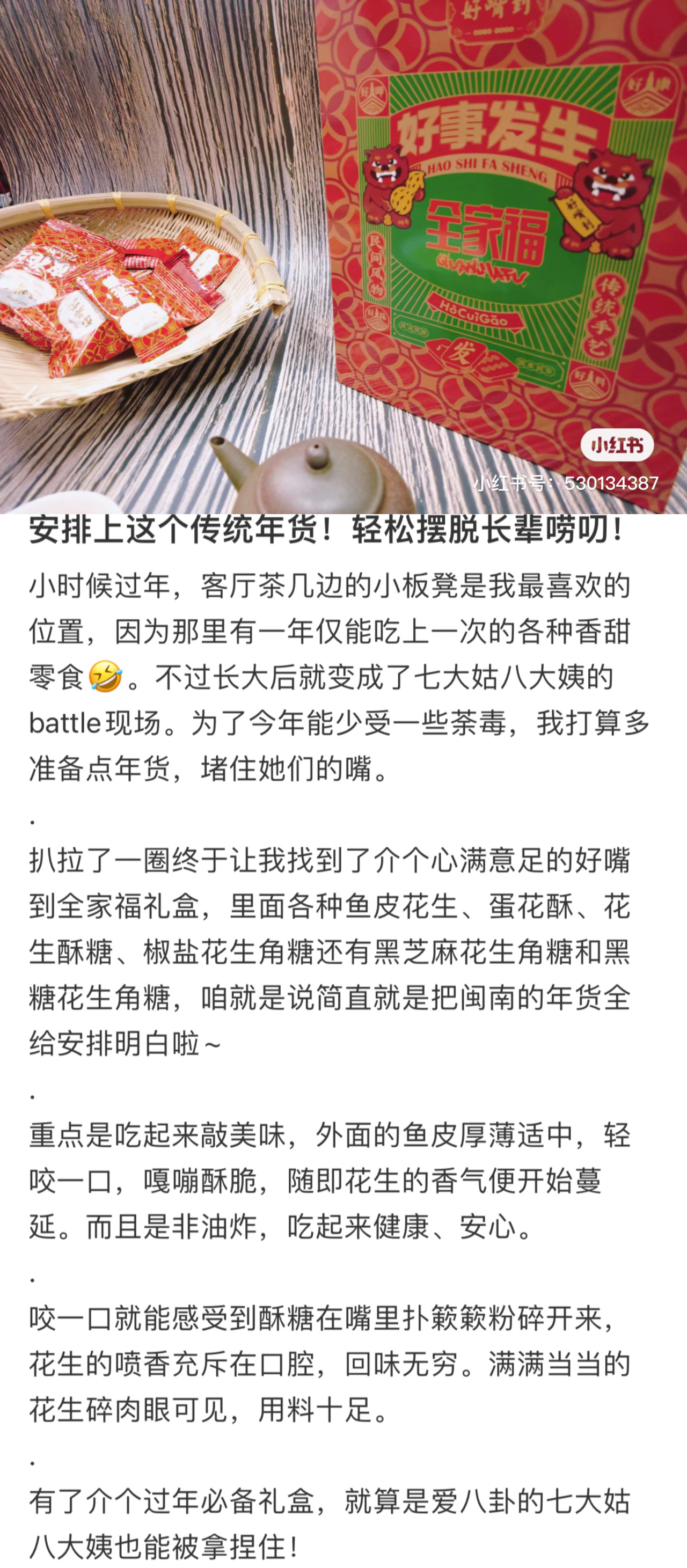 好嘴到小零食大集合来啦,好事花生全家福,古早口味的鱼皮花生和创新口味的黑松露芝士鱼皮花生,以及啖啖肉的鲜香小肉枣,还有之前就上过黑糖米香也一起回归咯,真的很有童年的味道,而且包装很有年味,尤其是全家福,送人自吃都不错,铁罐罐还能留着收纳!我得特别推荐黑松露鱼皮花生,真的,好好吃!