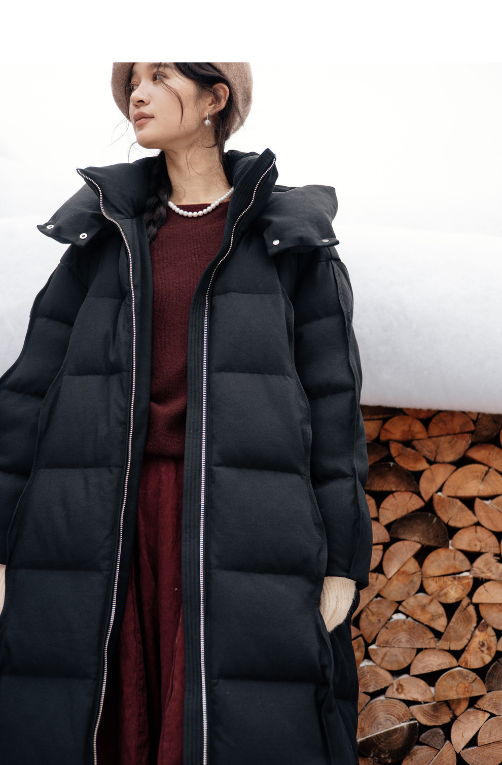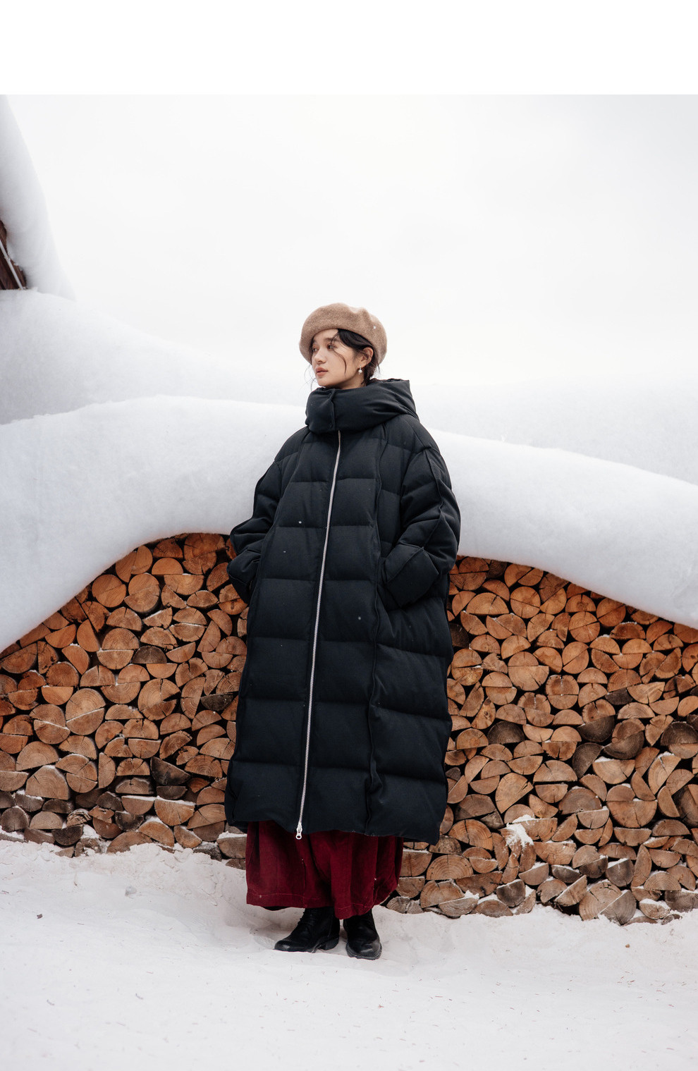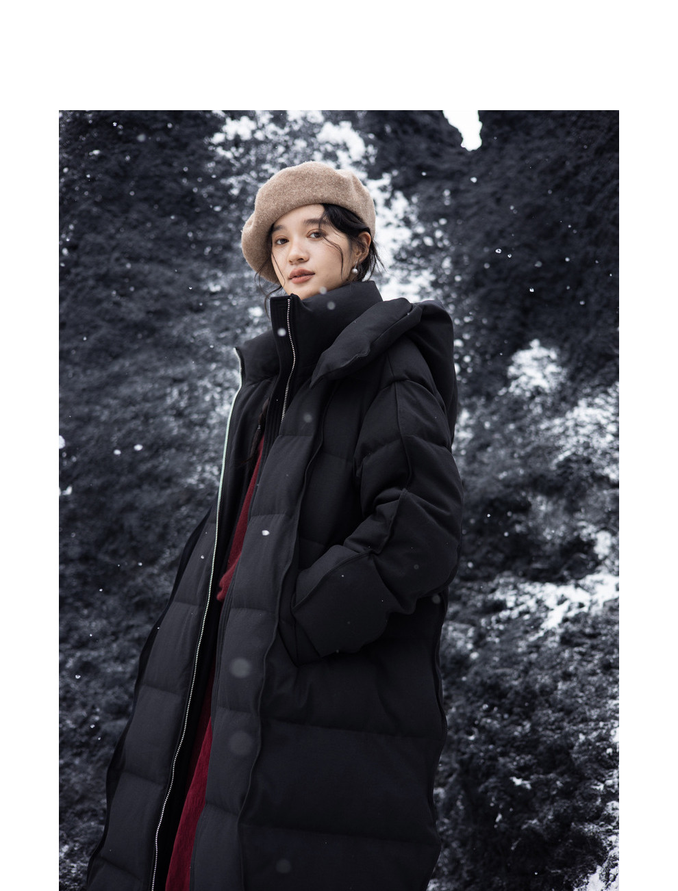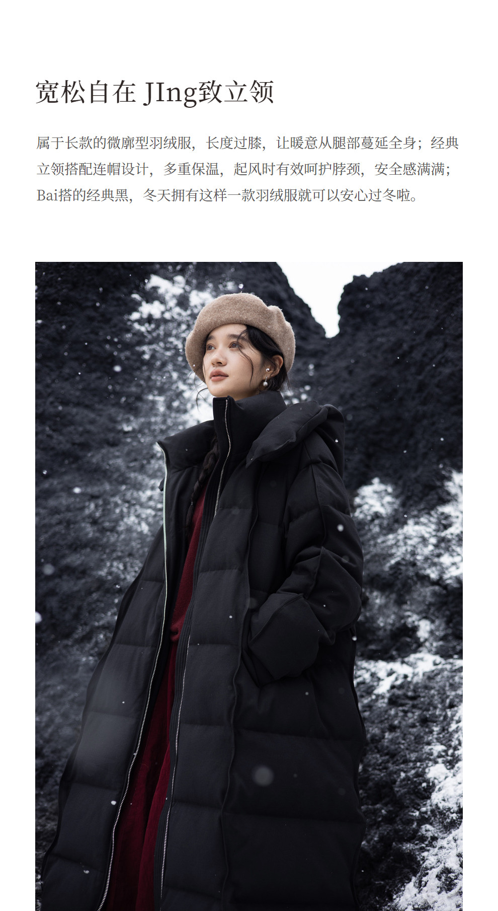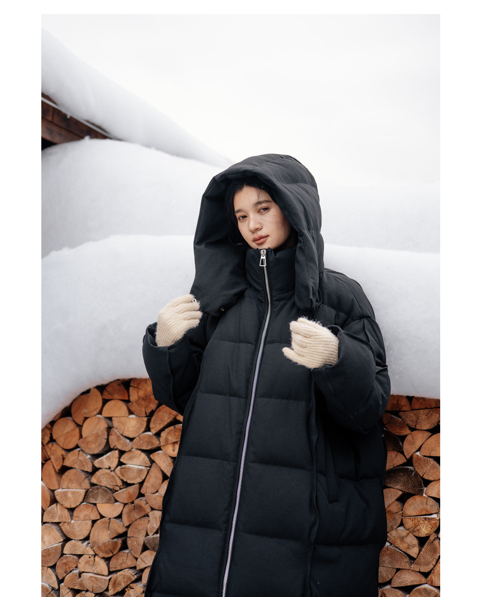 绽放871朵/阿勒泰鹅绒服加厚长款过膝保暖90白鹅绒黑色保暖羽绒服