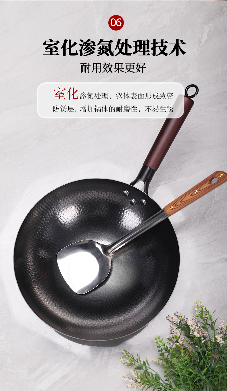 【客家香 无涂层锻打铁锅】32CM一个,精铁材质,健康无涂层,锅体轻盈,全家人放心用!