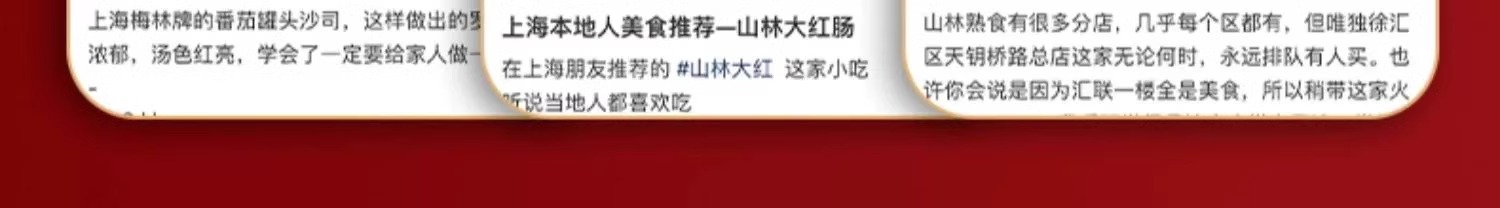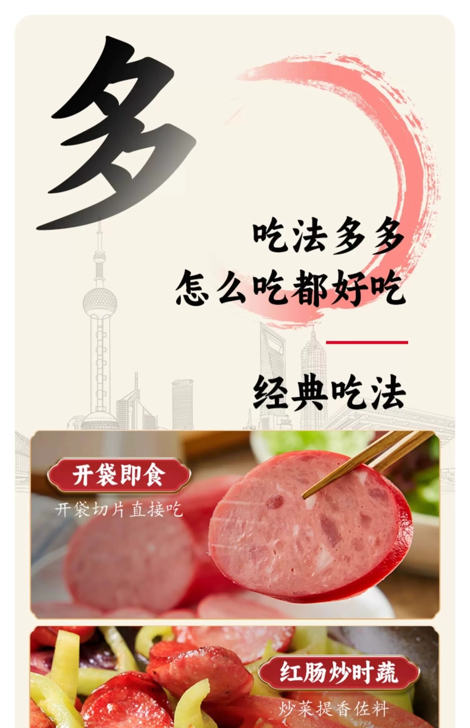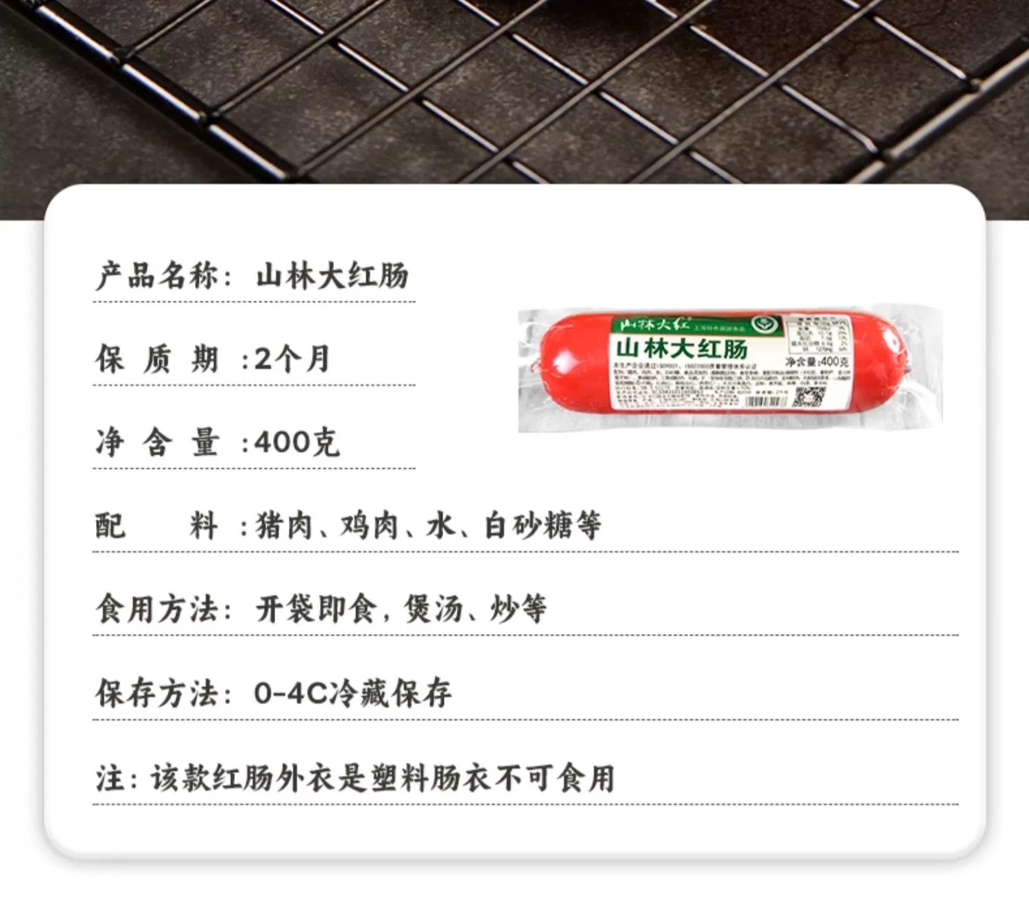 山林大红肠正宗风味上海特产熟食即食香肠400g*3