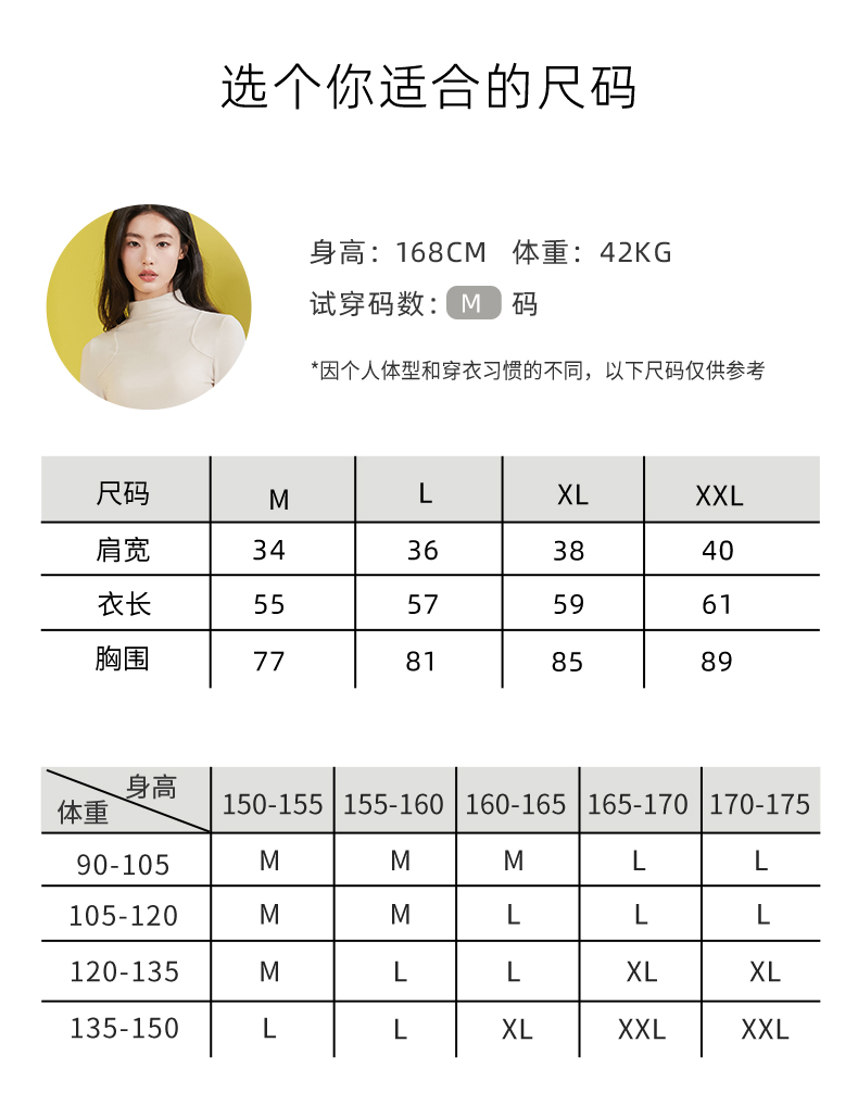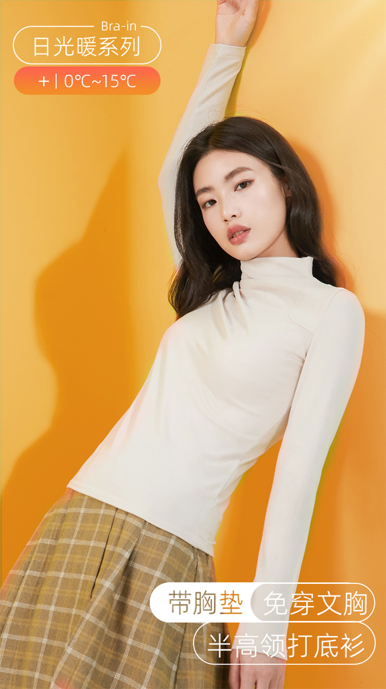 锁温33度!自带胸垫的打底衫!外穿不尴尬 内茵高领长袖打底衫 美雅碧半高领Brain打底衫