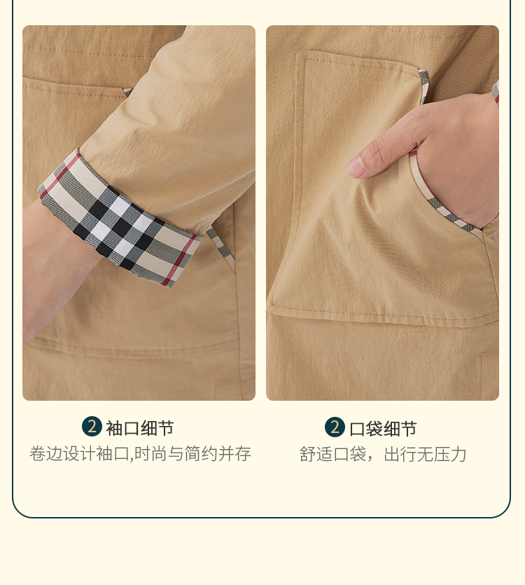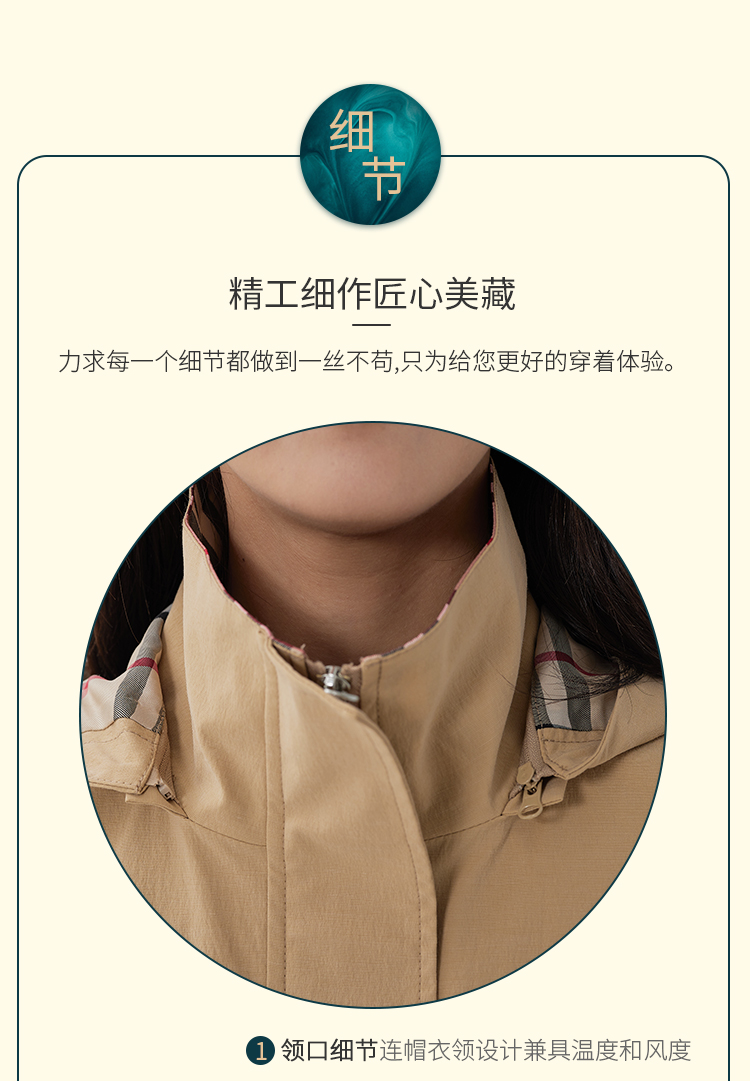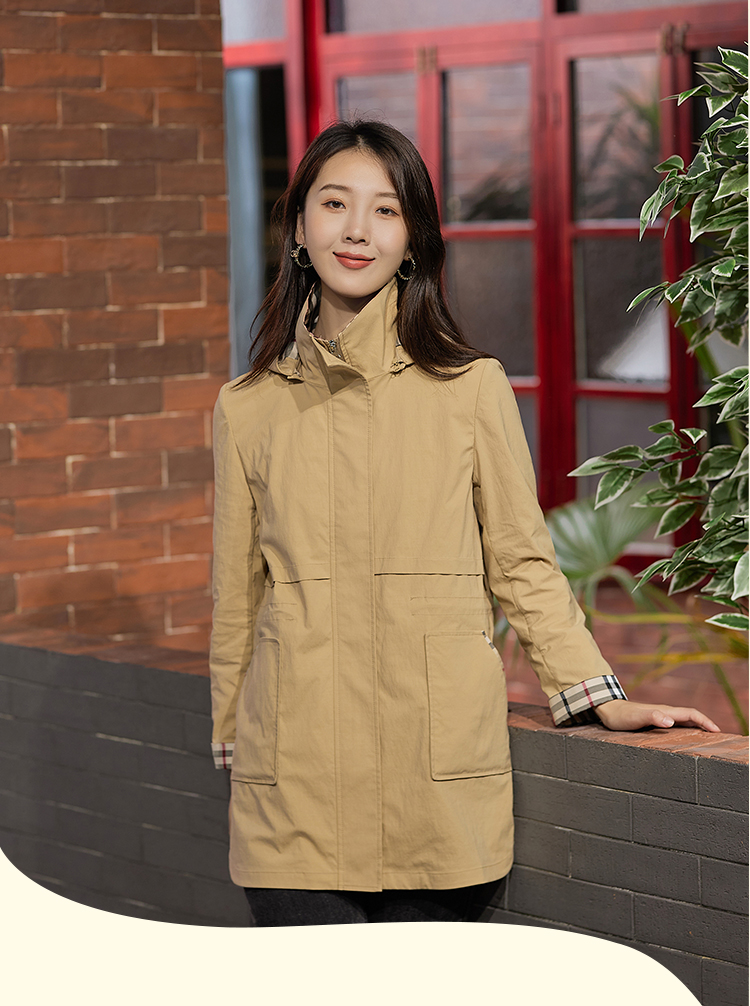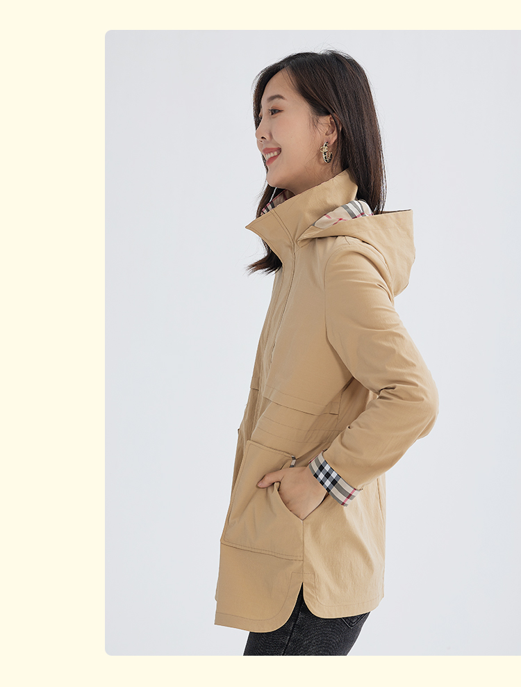 【舒适休闲,简单时髦】慕云姿2021秋季新款英伦经典格子连帽休闲风衣