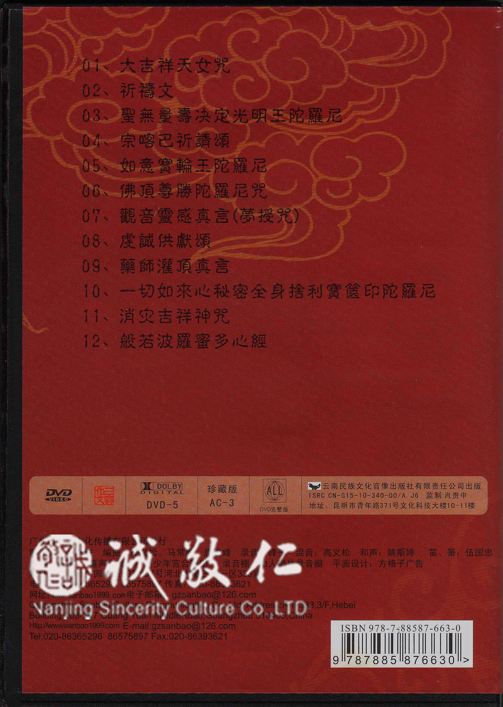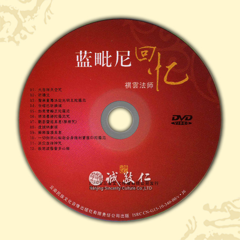【基本信息】: 产品名称:【蓝毗尼回忆】 祺云法师 正版 简装DVD 天籁音乐 发烧友系列: 珍藏版 歌手类型: 华语男歌手 华语男歌手: 祺云法师 音乐类型: 民族音乐 轻音乐/纯音乐类型: 佛教音乐 ISRC编号:CN-G15-10-340-00/A.J6 出版社: 云南民族文化音像出版社有限责任公司 音乐介质:DVD-CD 带视频佛乐 发行地区: 大陆 音乐种类: 车载CD 定价:28元/盒 【作者简介】: 祺云法师,法名正合 号惟证 字宗醍 别名浤真 别号祺云。籍贯天津,癸亥(1983)年十月初九生人。6岁信仰佛教,9岁皈依三宝。16岁己卯年九月初九于辽宁省西佛福隆寺依上豁下然老法师披剃出家。同年九月十九见行脚比丘三人,心生欢喜大悦,恭敬赞叹。并决心一路前往,共同发心三步一拜沿路参访走学,最后直至文殊菩萨圣地--山西五台山。后跟随台湾能觉法师专修法华经,小乘佛教等,随师左右学习密宗格鲁派佛学。2006年二月在香港东林寺参学讲法。并授记天台宗四十六代法嗣。回到内地后,法师弥补自己参学上的不足,进一步潜心修学禅宗经教。体会禅中妙意。法师提倡新派佛教路线,推动佛教社会家庭中修学佛法次第的方针,推广弘扬佛教以入世为基础的思想。传播佛教哲学、佛教心理学讲座,人生佛教思想精神理论。曾讲过《心经》《弥陀经》《观无量寿经》《法华经》《爱心智慧》《大甘露集中解要》《三千心量》《生活比量法》《契机说中智》《迷心迷佛》等。法师见现世众生,根器不具,甚难听信理解诸佛精髓,并假设方便,巧机引导,以音声作佛事,弘开诸趣。闲暇之余,法师以特长发挥,编写诸多醒世赞偈,并将其醒世赞偈和许多佛教经咒汇编成曲,供养有情,饶益众生。演法音以十方。2013年初祺云法师接管辽宁省大连宝林寺。大连宝林寺已经于2013年4月投入建设。 【产品介绍】: 《蓝毗尼回忆》记住,那种回忆为了更加神秘,他一定是古铜色,这是复古的基础。专辑收录了《大吉祥天女咒》、《圣无量寿决定光明王陀罗尼》、《宗喀巴祈请颂》、《如意宝输王陀罗尼》、《佛顶尊勝陀罗尼咒》等12首祺云法师演唱的音乐,在这和谐、放松、自在的歌声中,佛教的理义已被美妙的音乐所释怀,知闻的人会以一生的时间去皈依他,接受他的洗礼和熏陶。 【目 录】: 01 大吉祥天女咒 02 祈祷文 03 圣无量寿决定光明王陀罗尼 04 宗喀巴祈请颂 05 如意宝输王陀罗尼 06 佛顶尊胜陀罗尼咒 07 观音灵感真言(梦授咒) 08 虔诚供献颂 09 药师灌顶真言 10 一切如来心秘密全身舍利宝箧印陀罗尼 11 消宵吉祥神咒 12 般若波罗蜜多心经