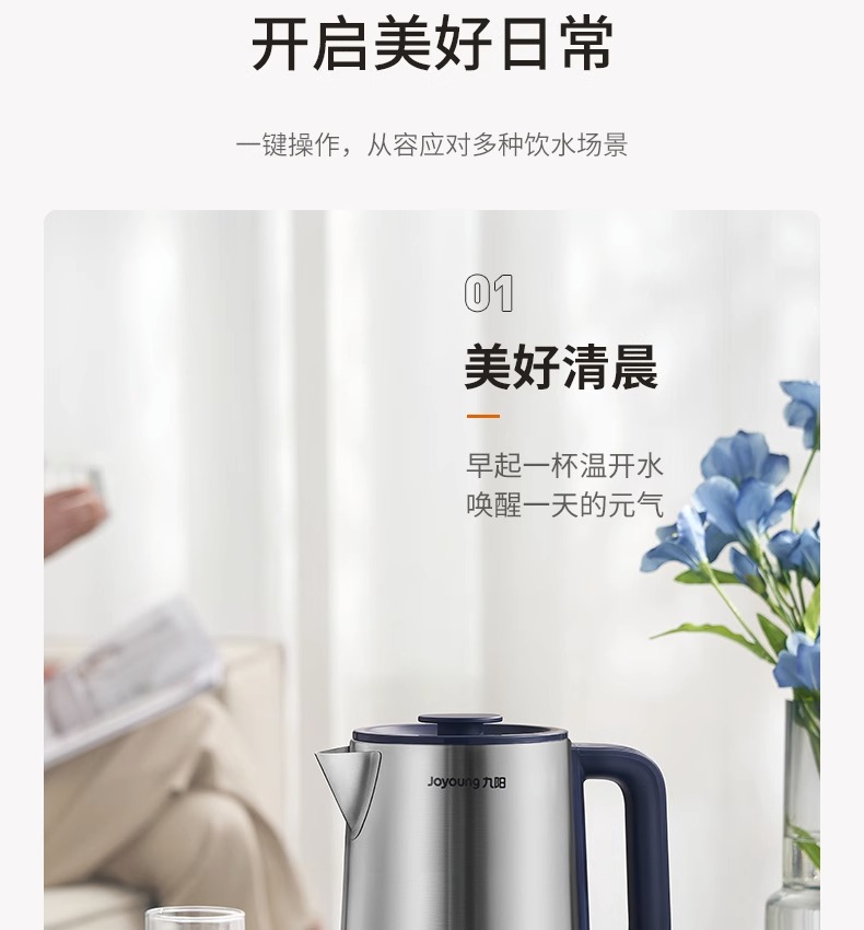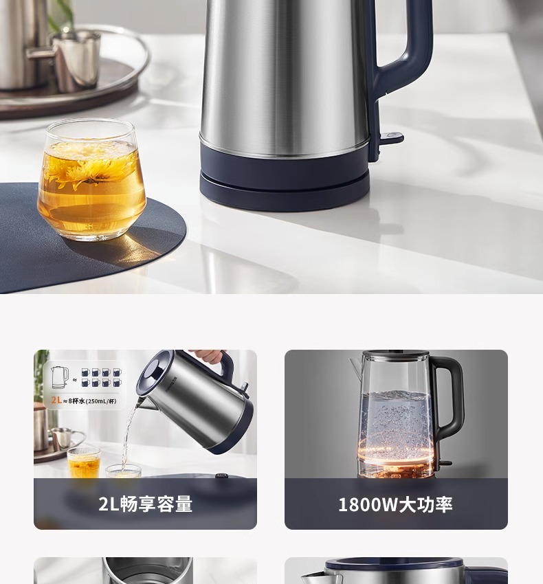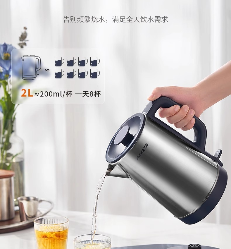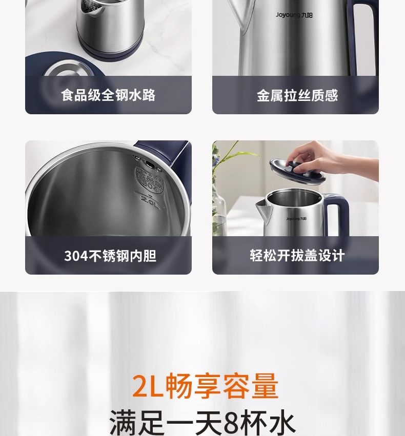 Joyoung/九阳电热水壶2升大容量开水煲家用自动断电防干烧304不锈钢烧水壶