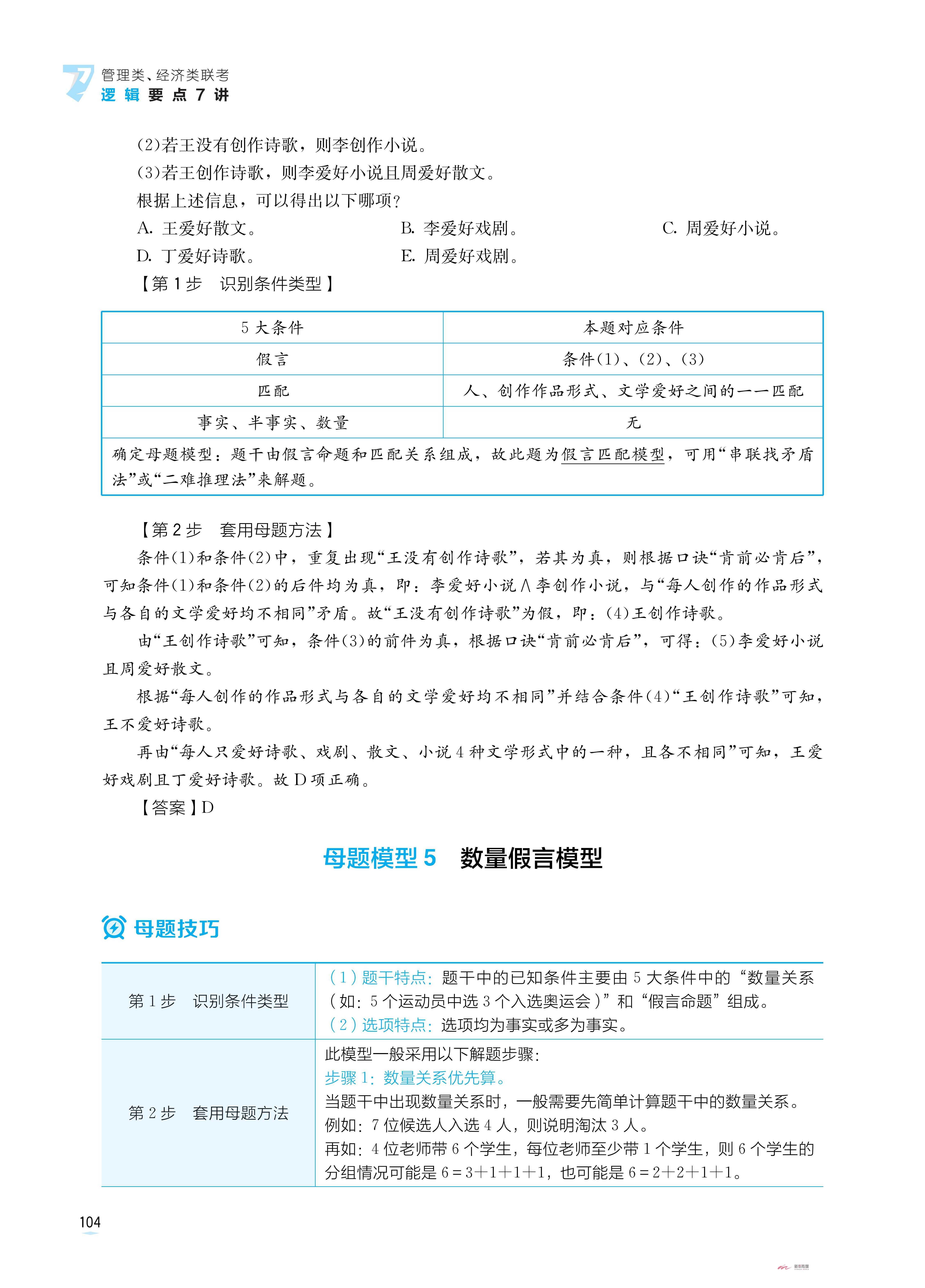 ②创新;推理母题模型:根据推理题出题特点及近年考试趋势,全新教研5大条件类母题模型、非5大条件类母题模型。通过题干核心5大条件,快速破解题目,尤其适合难题、条件复杂的题目。
