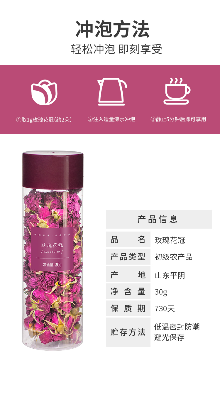 养瑞和丨玫瑰花冠·30g/瓶·平阴玫瑰·汤色清亮·茶香纯正·可搭配蒲公英根