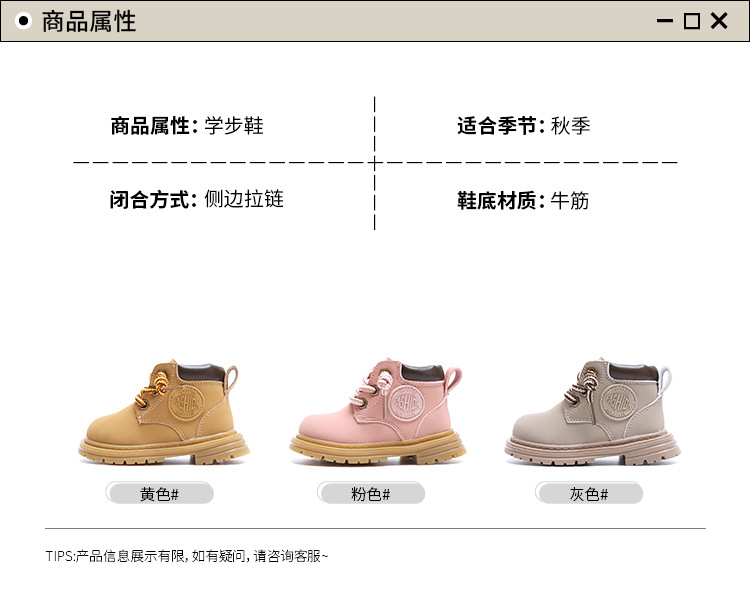 麦布熊儿童鞋英伦马丁靴男童婴儿学步鞋秋冬季女童小童宝 宝鞋子棉