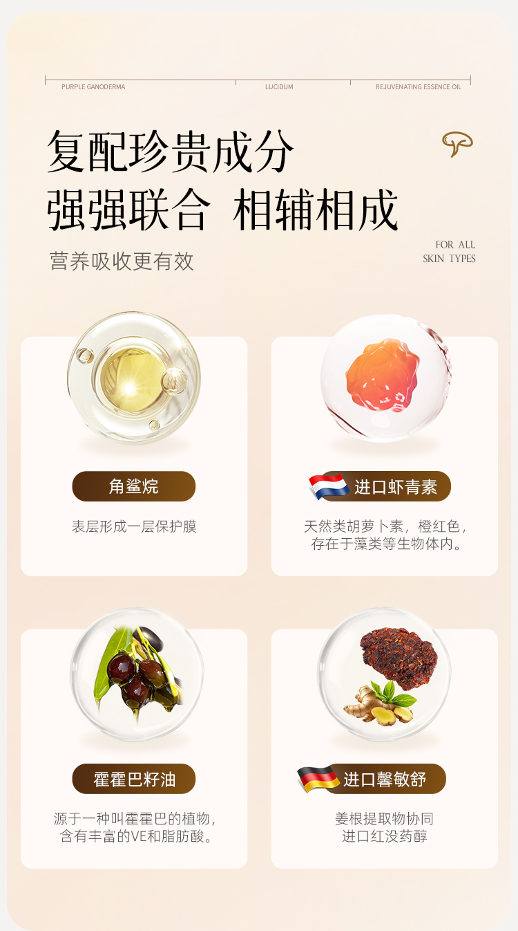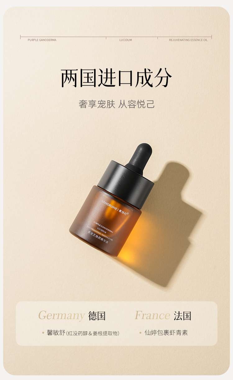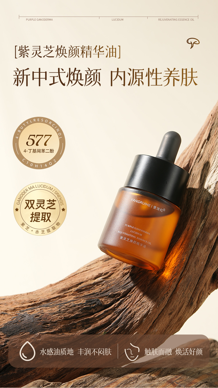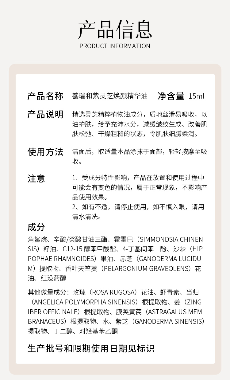 养瑞和 | 紫灵芝焕颜精华油15ml·双灵芝提取物·577珍贵成分·灵芝孢子油·角鲨烷霍霍巴籽油·当归根提取物以油养肤质地·敏肌适用