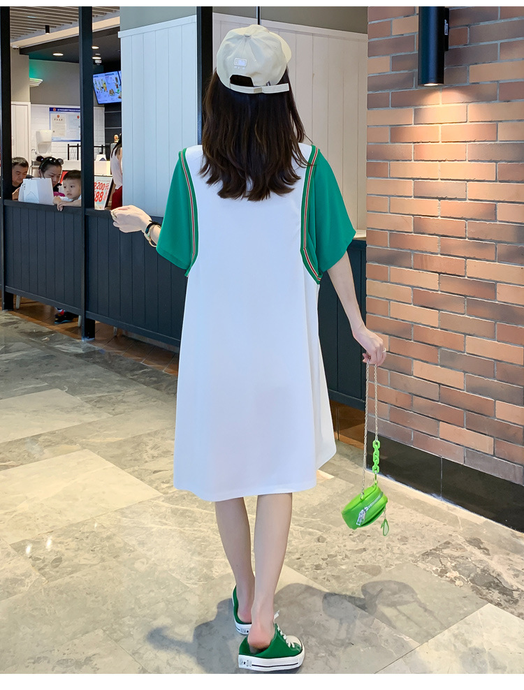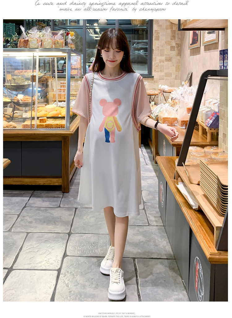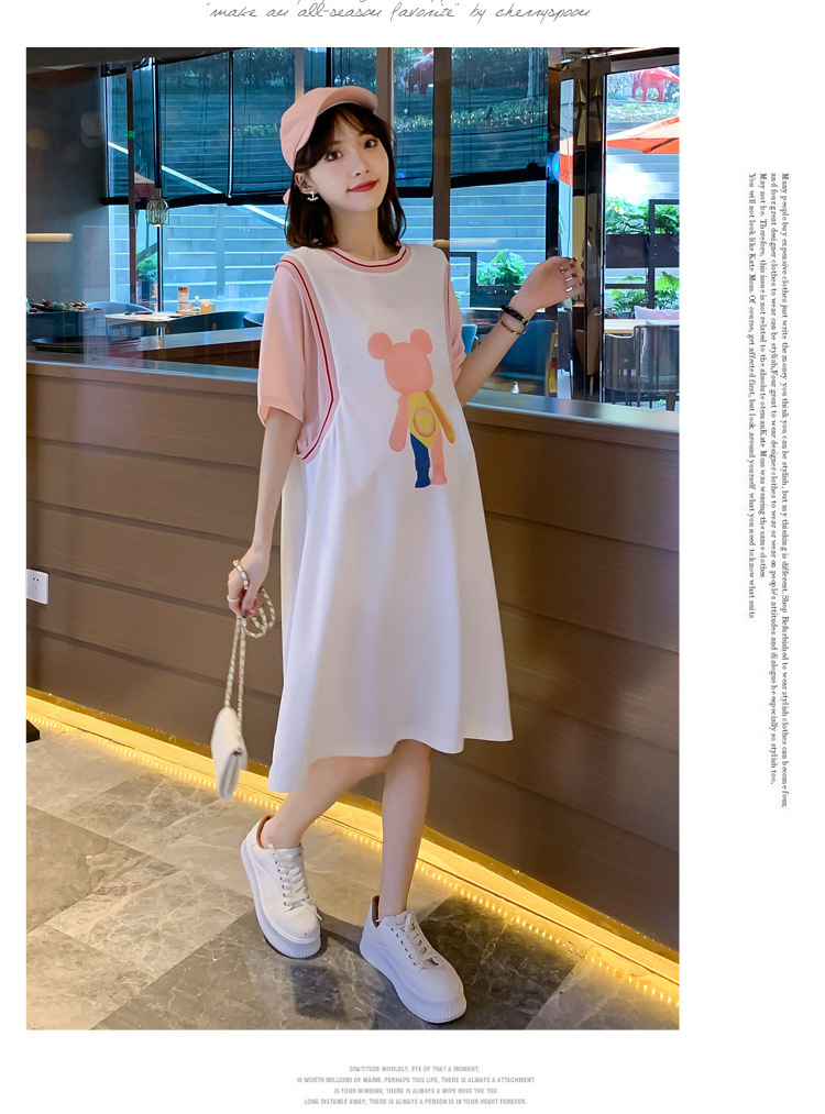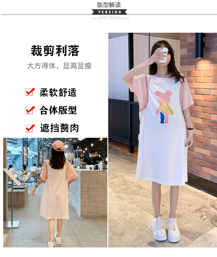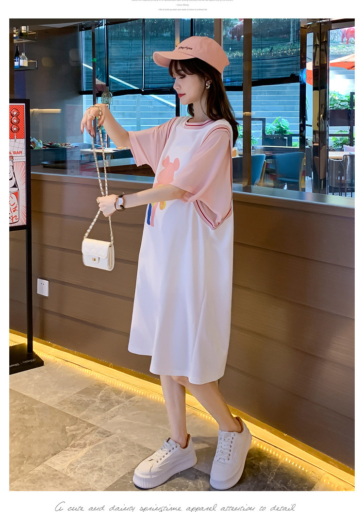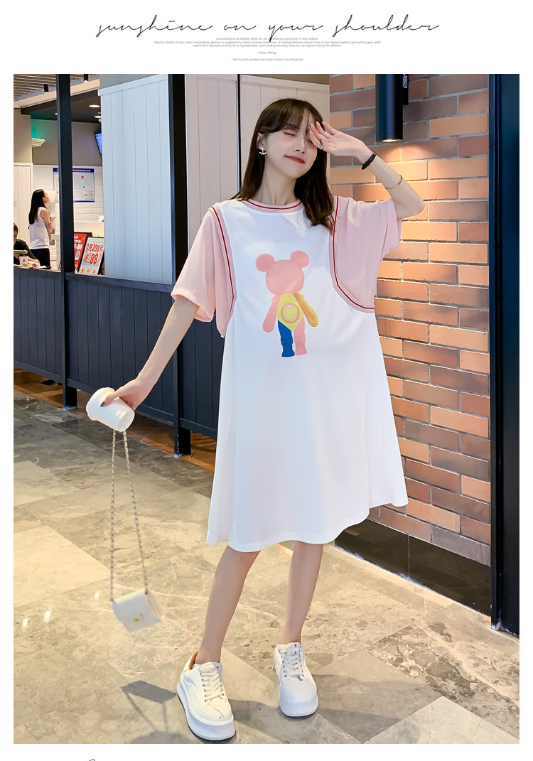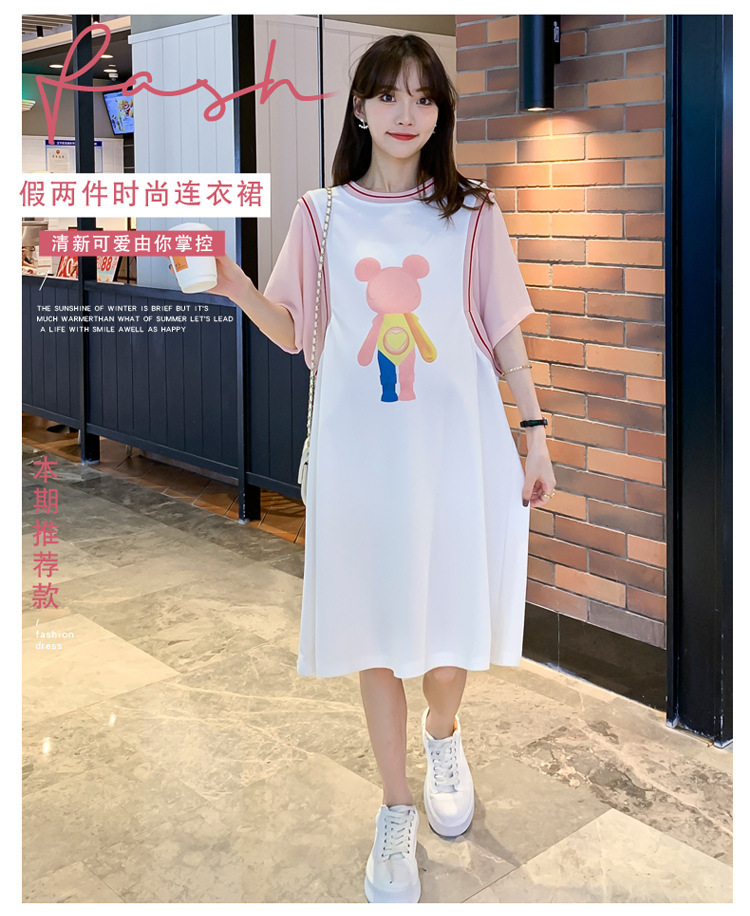 【清新可爱休闲假两件连衣裙】孕妇装2022孕妇中长款T恤假两件