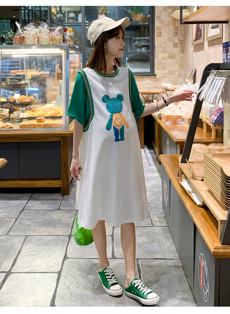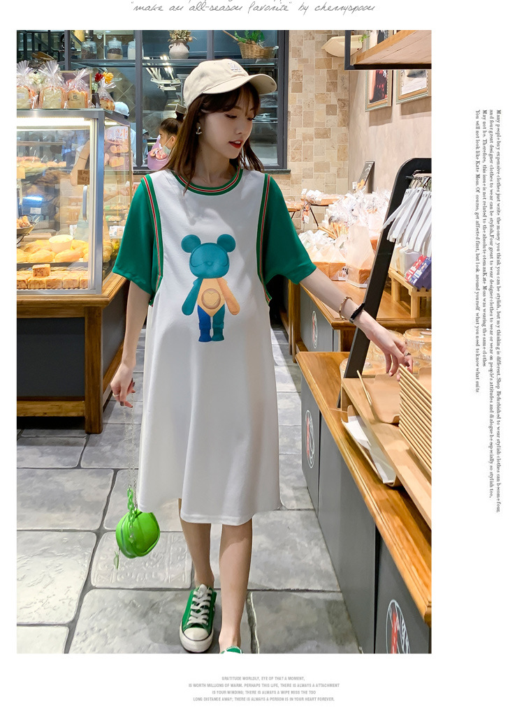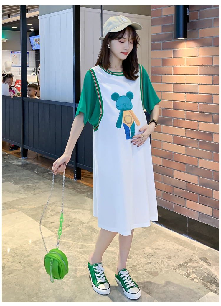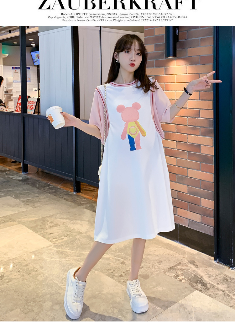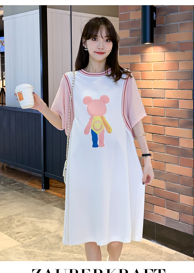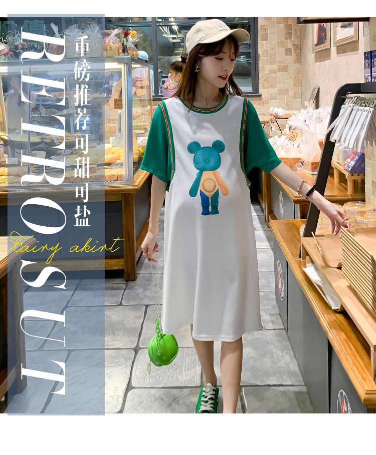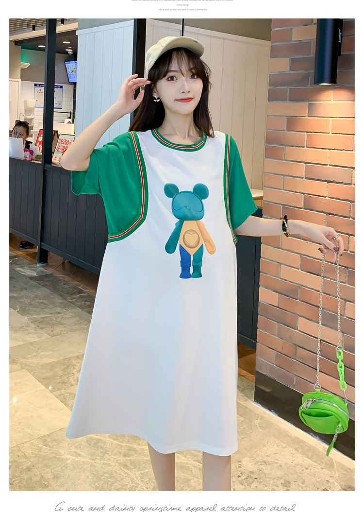 【清新可爱休闲假两件连衣裙】孕妇装2022孕妇中长款T恤假两件