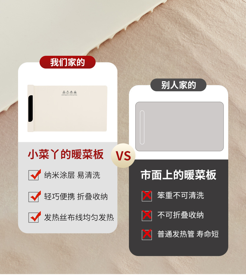 【超模君严选 温暖一冬天☀️】小菜丫 第三代硅胶暖菜板 不伤桌面 柔性折叠好收纳 10秒速热 边缘防烫 不挑餐具 防水防油 智能控温 暖菜+去湿+暖奶+烘干+温茶+暖汤+解冻+暖酒+暖面膜日常多用