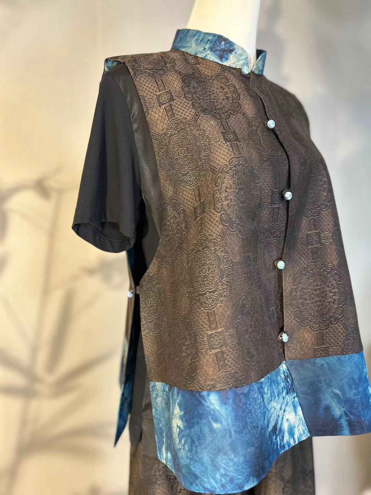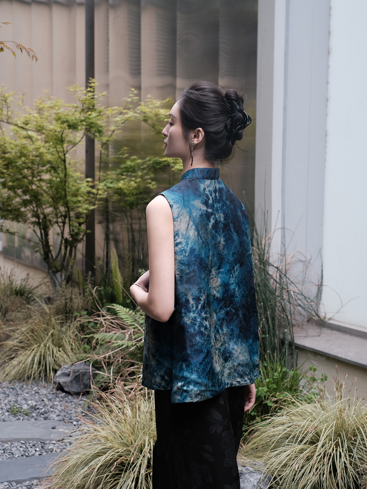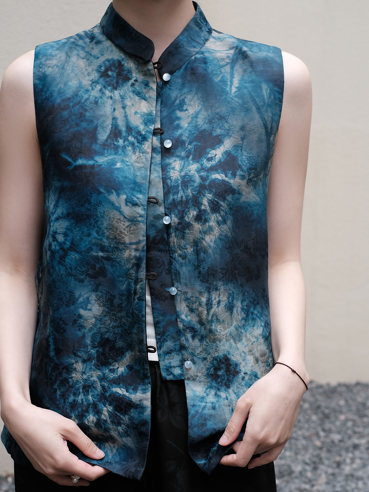 盛唐婧 |青花瓷两面穿扎染马甲 扎染面无扣子