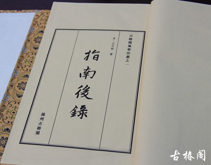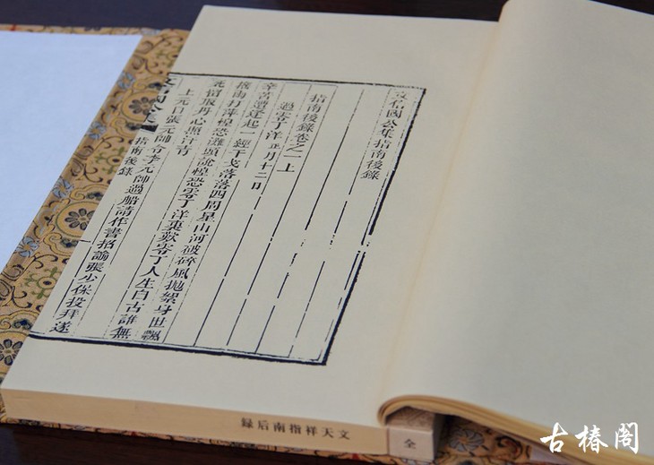古椿阁版《指南后录》以清康熙刻本为底本,成书尺寸:长29厘米、宽19厘米、高1.5厘米,锦函绫面,一函一册大开本,纸用最珍贵的库存20余年的老宣纸,如此舍得是对线装文化的坚守,更是对民族英雄的无限敬仰!在纪念抗倭胜利70周年之际,我们的心中生发起对民族气节的无限珍重。