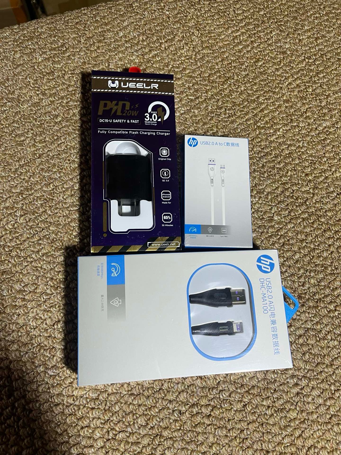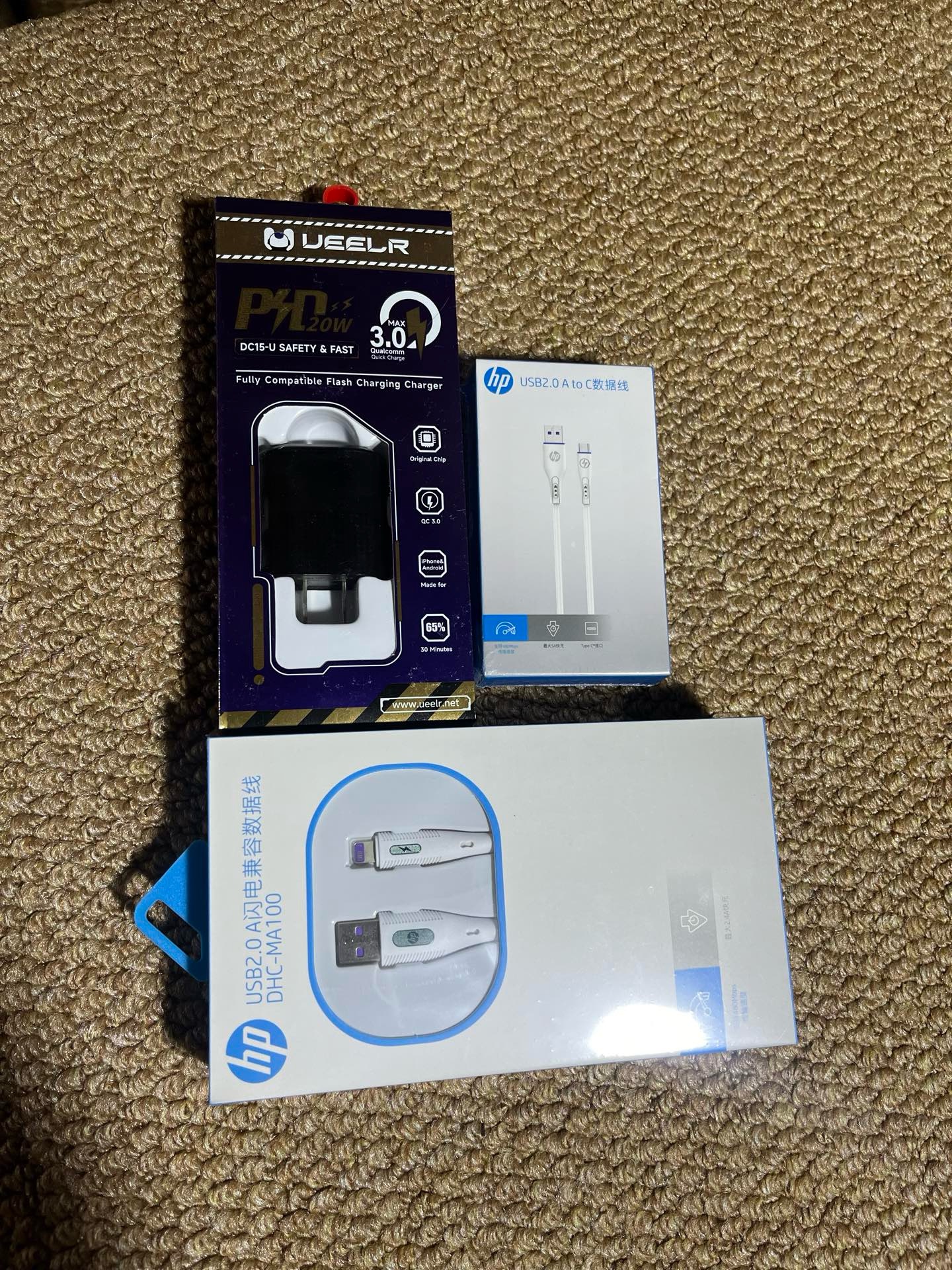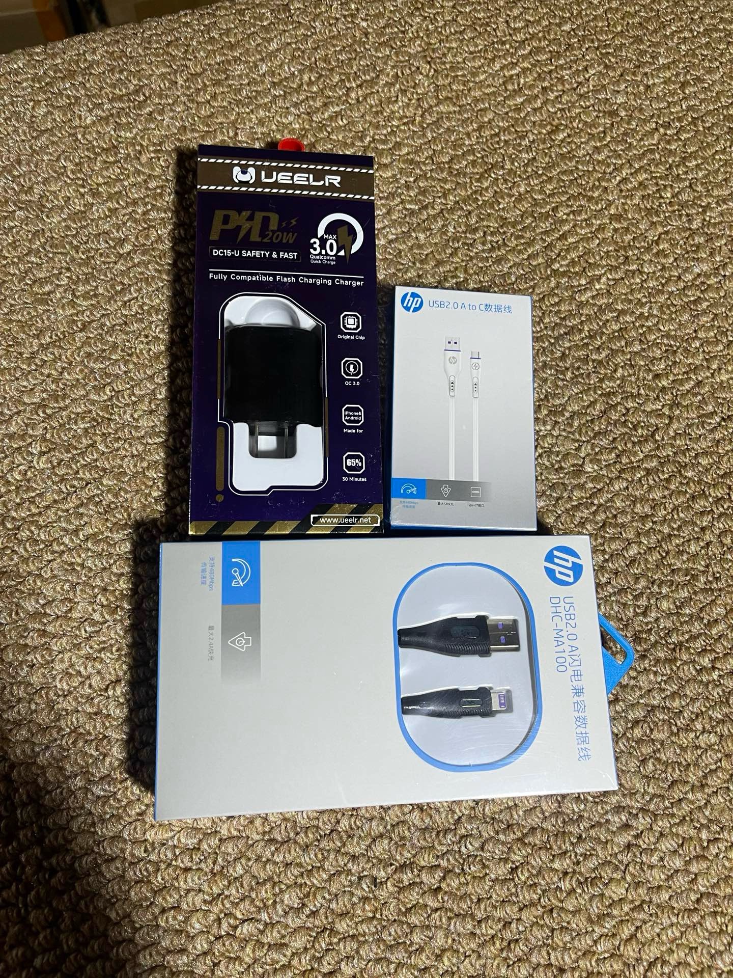 苹果14以下 惠普线一根 华为 惠普线一根 20w快充 双充电口 充电头一个