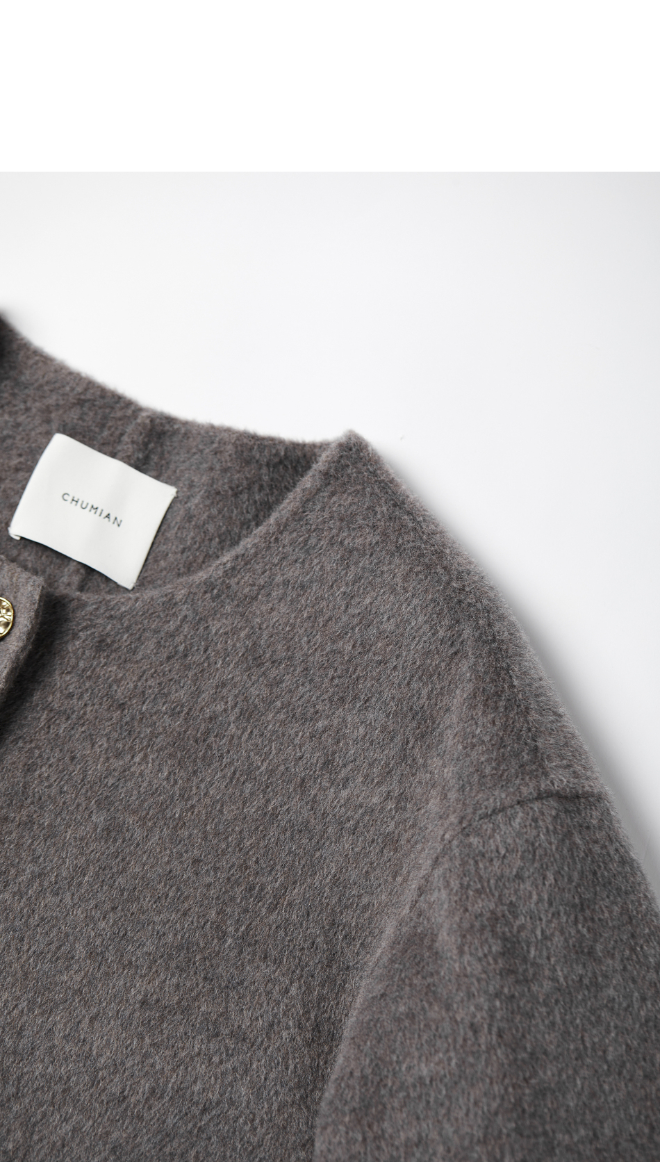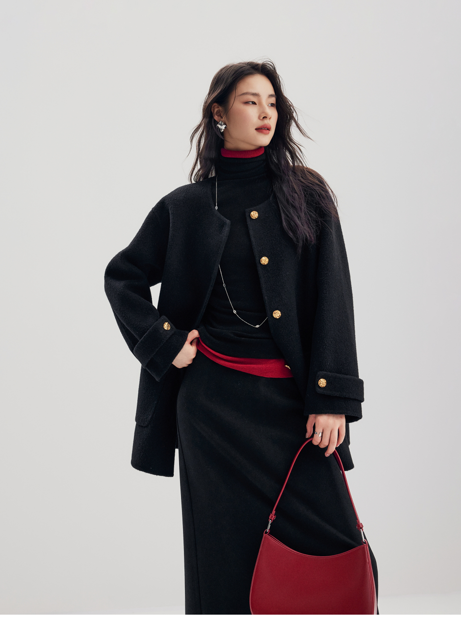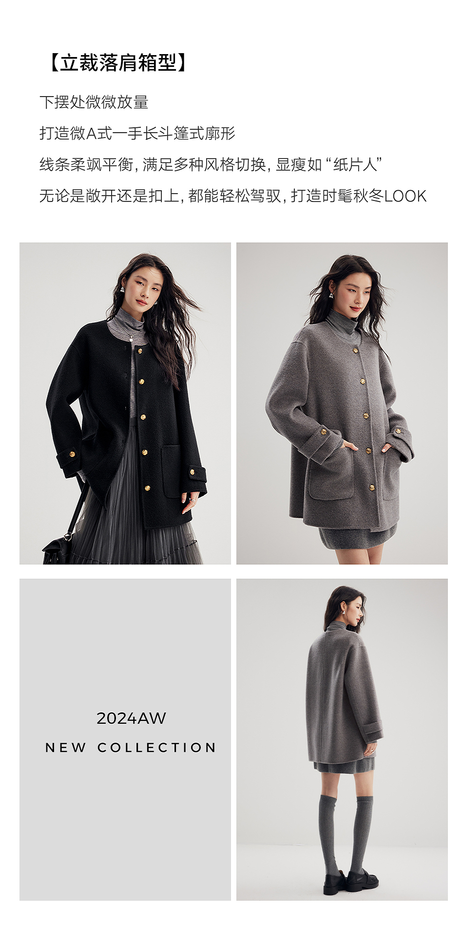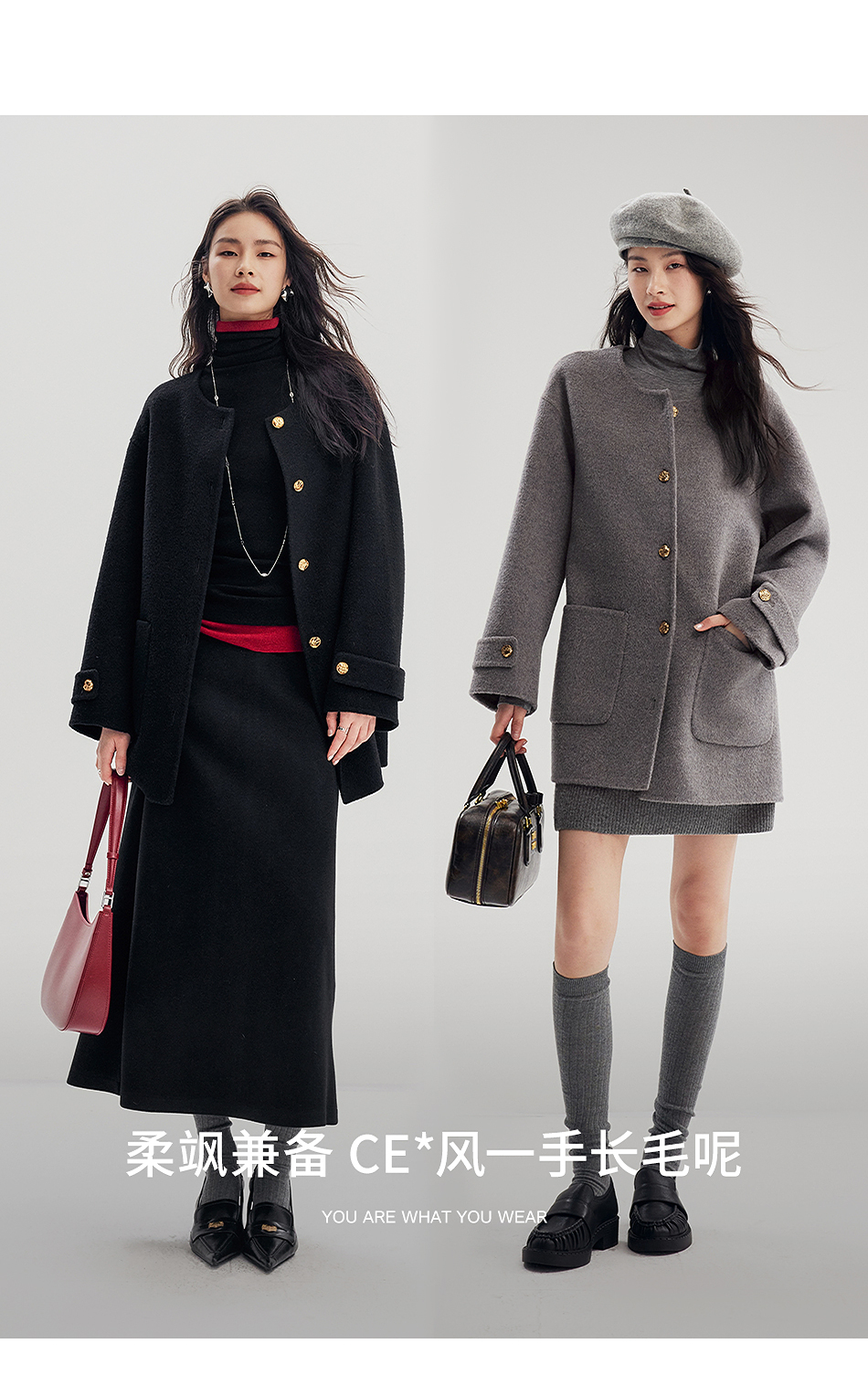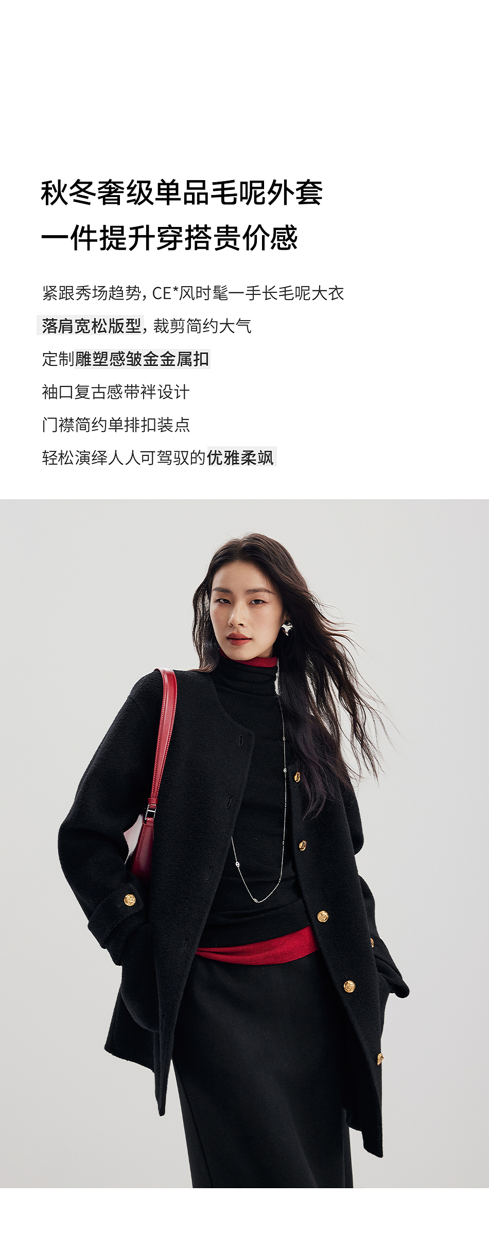 棉仓356666005-CE*风一手长毛呢外套女含羊驼毛24秋定制金扣羊毛双面呢大衣