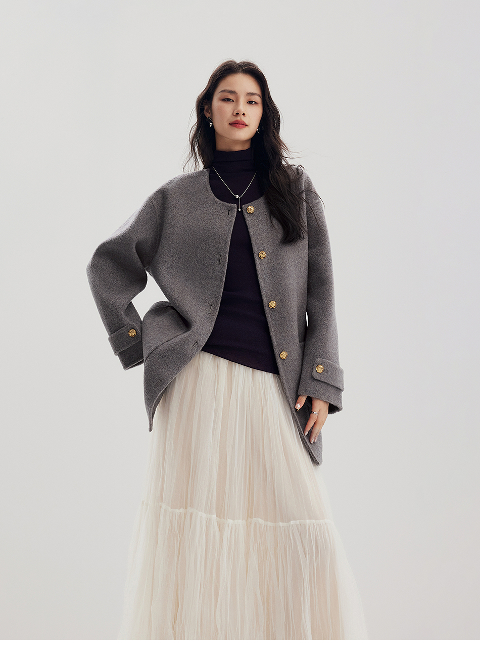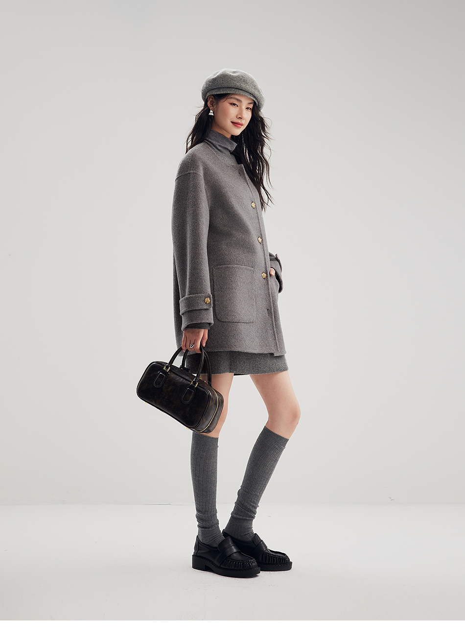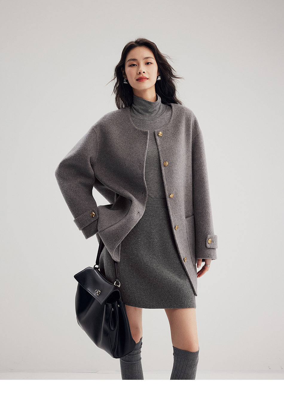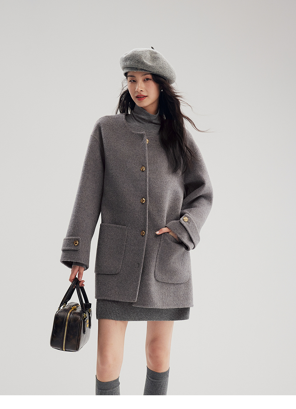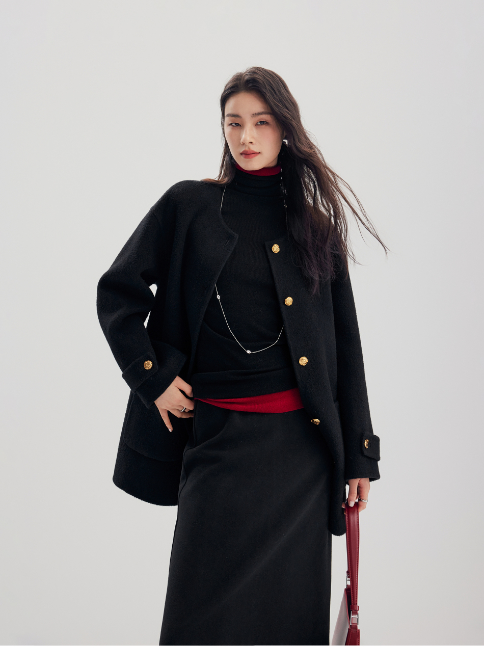 棉仓356666005-CE*风一手长毛呢外套女含羊驼毛24秋定制金扣羊毛双面呢大衣