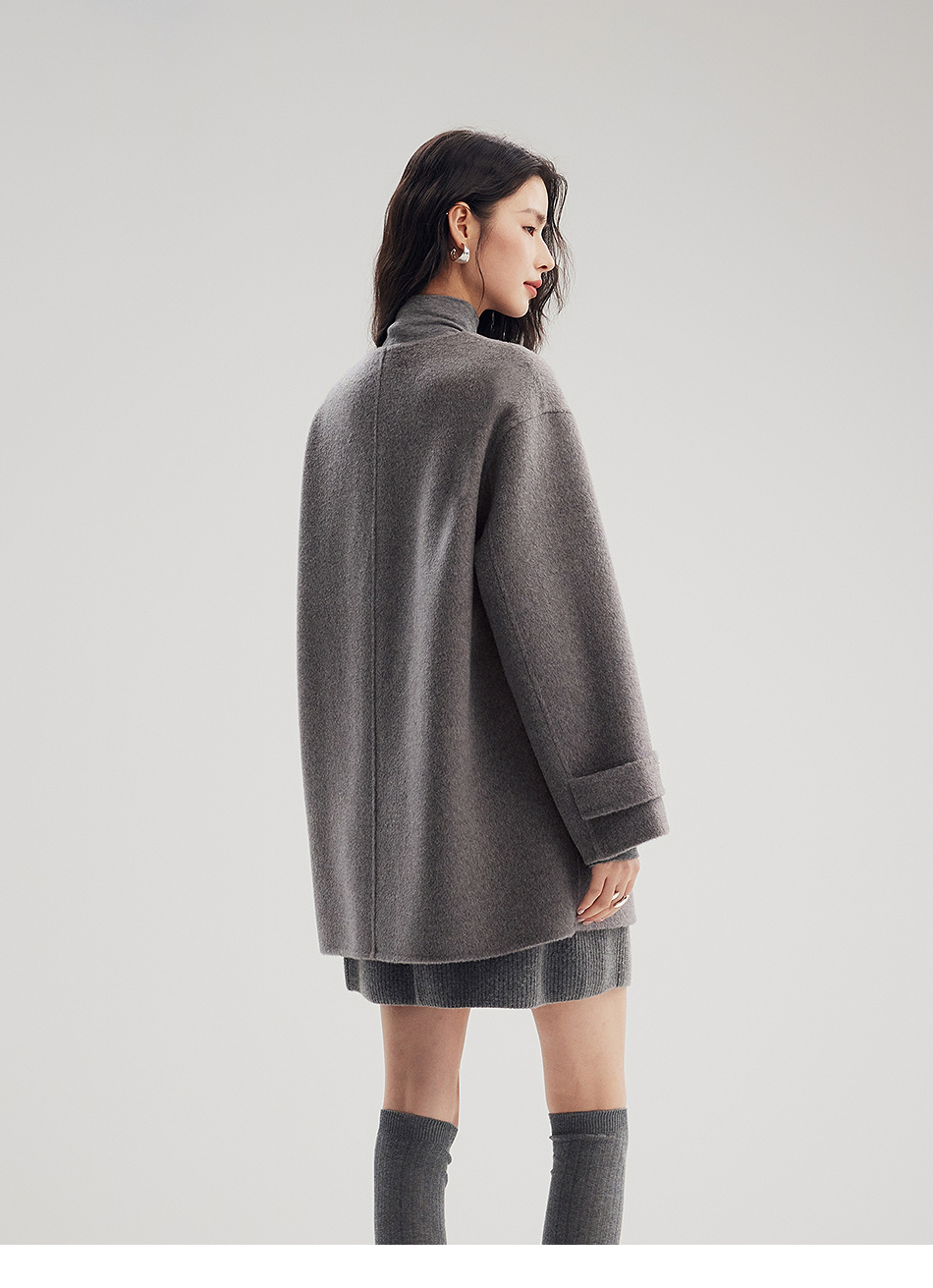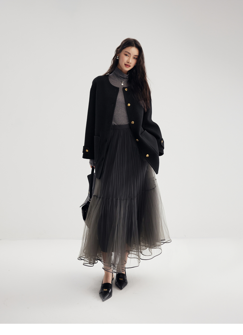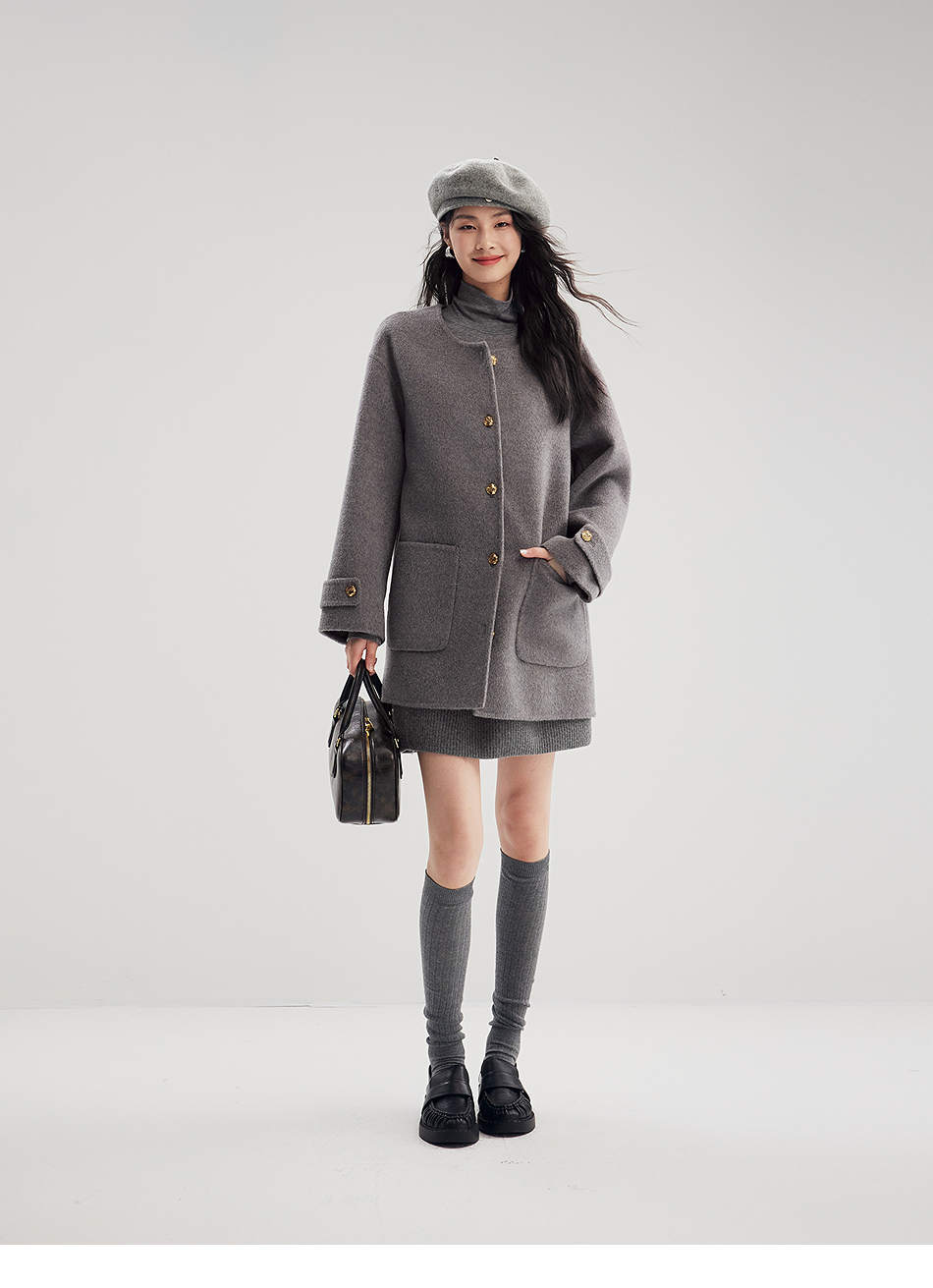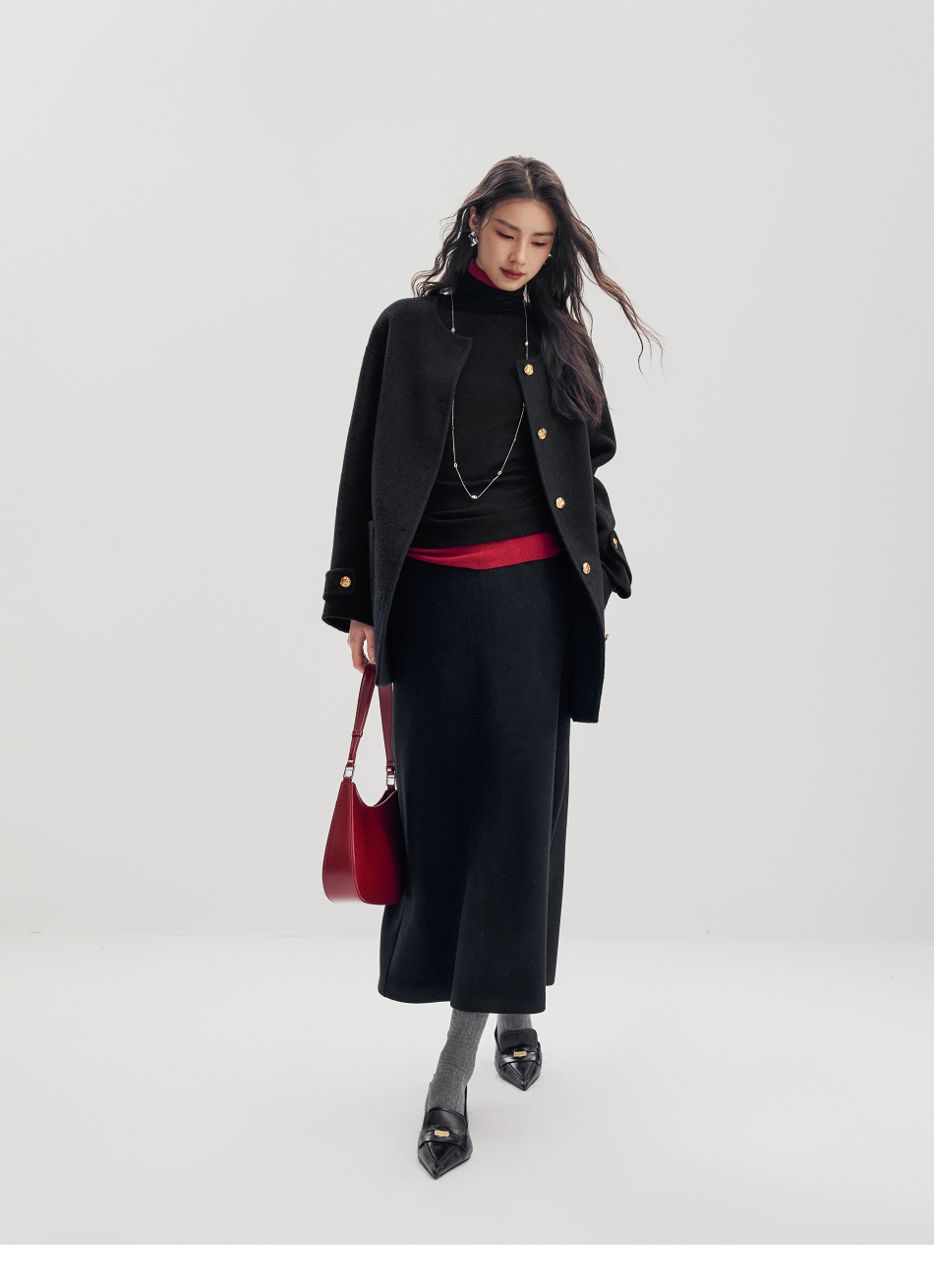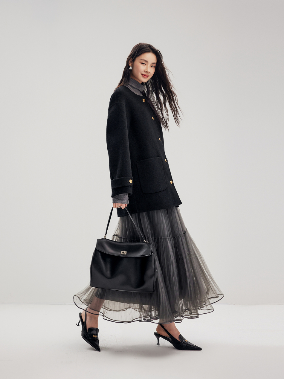 棉仓356666005-CE*风一手长毛呢外套女含羊驼毛24秋定制金扣羊毛双面呢大衣
