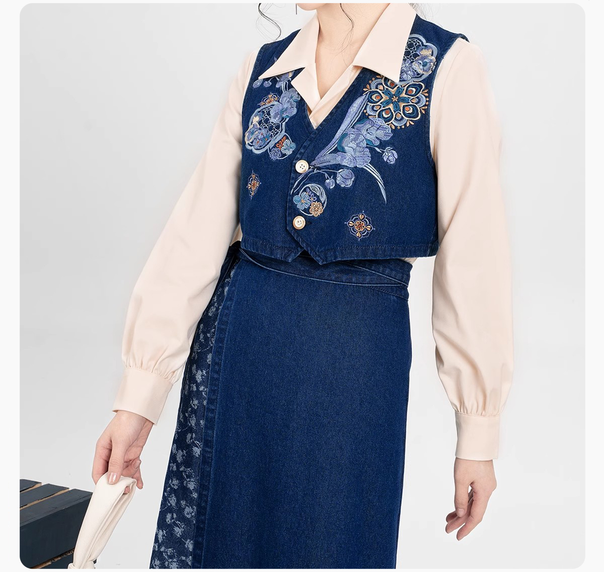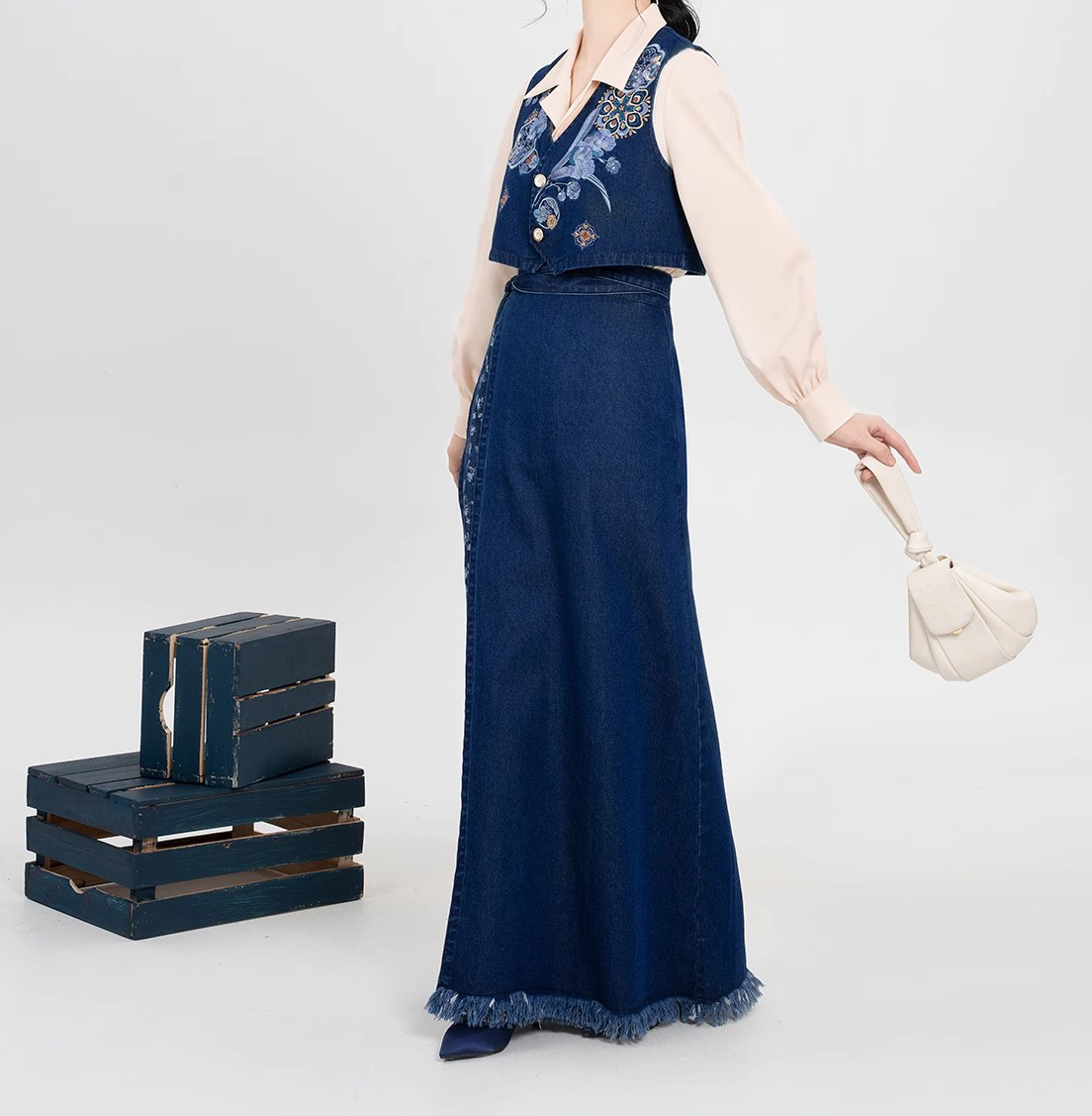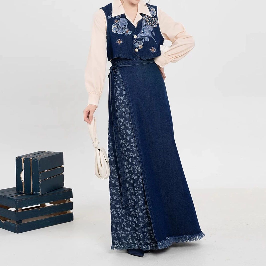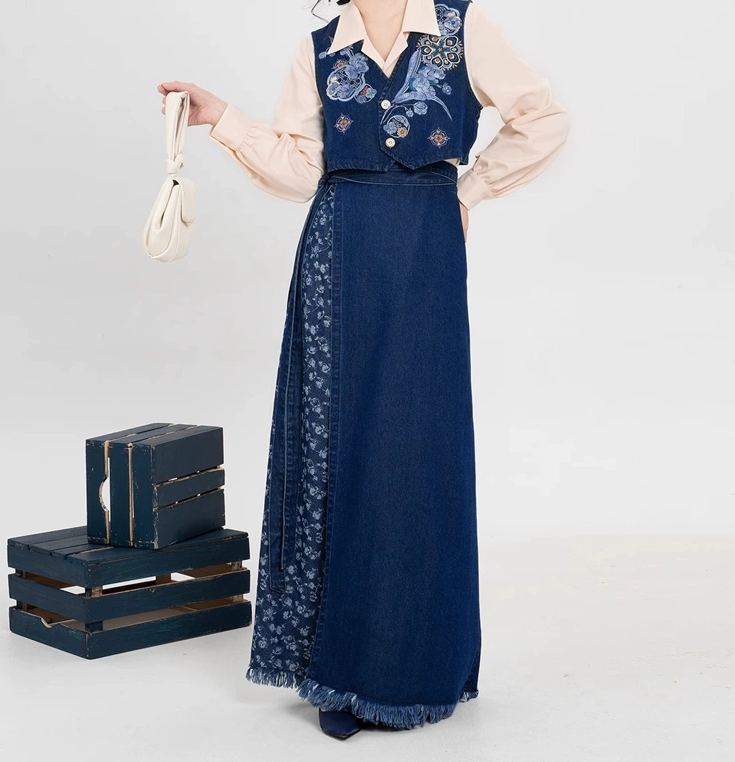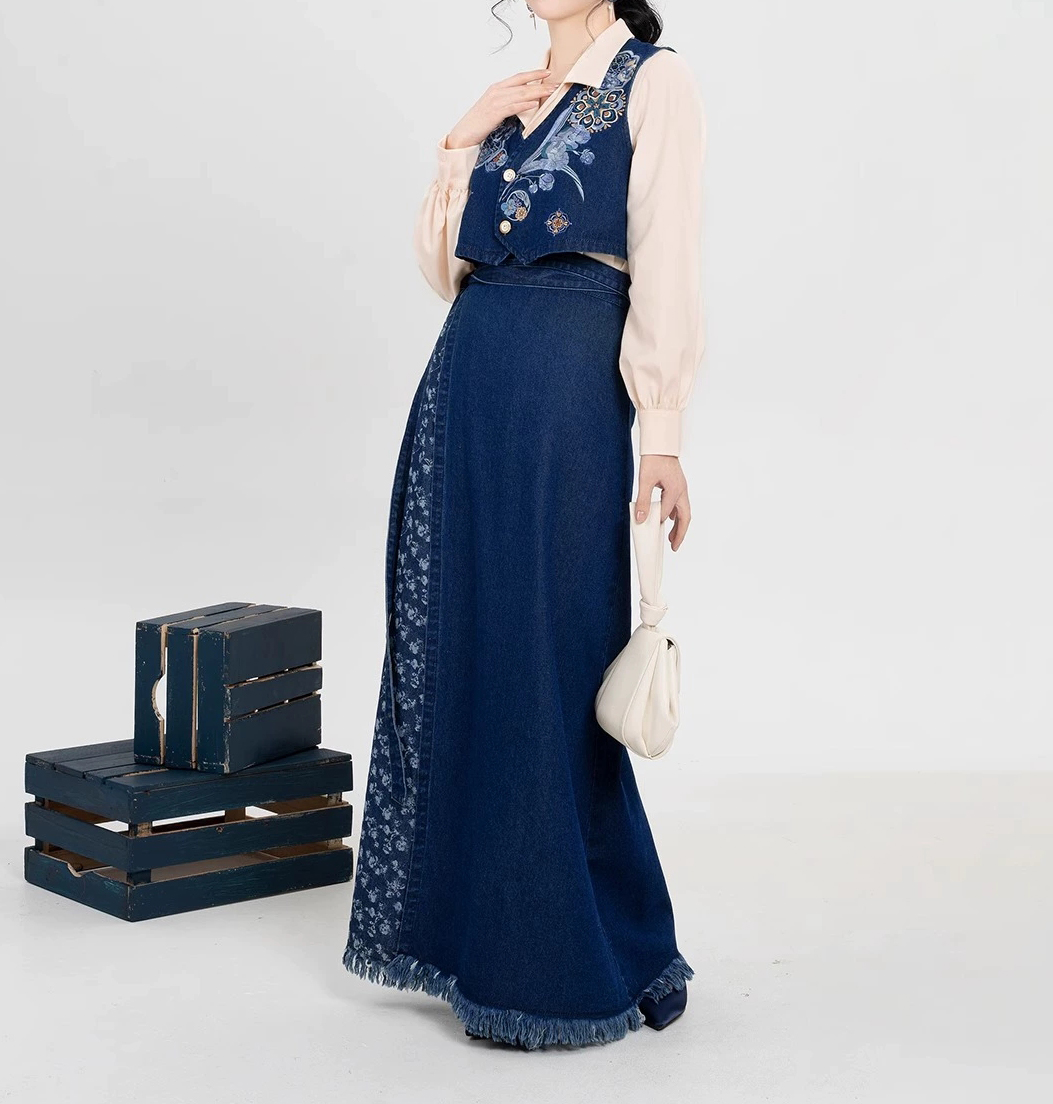 裁缝学苑AQ455短款马甲翻领衬衫毛边牛仔半裙套装纸样女装样板图纸