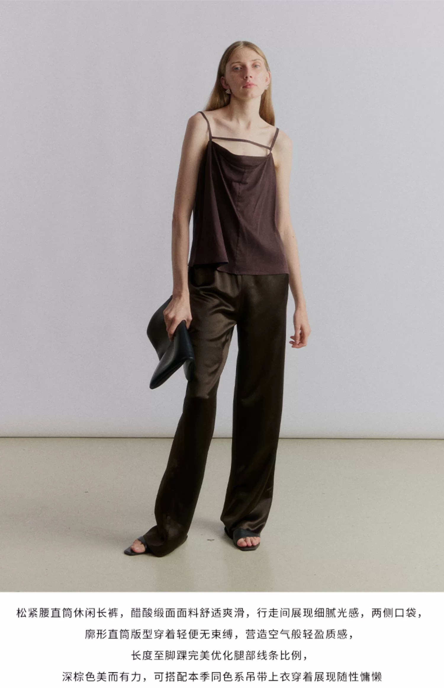 VC|SS24079 Flowy satin trousers [ 醋酸长裤 咖 ]