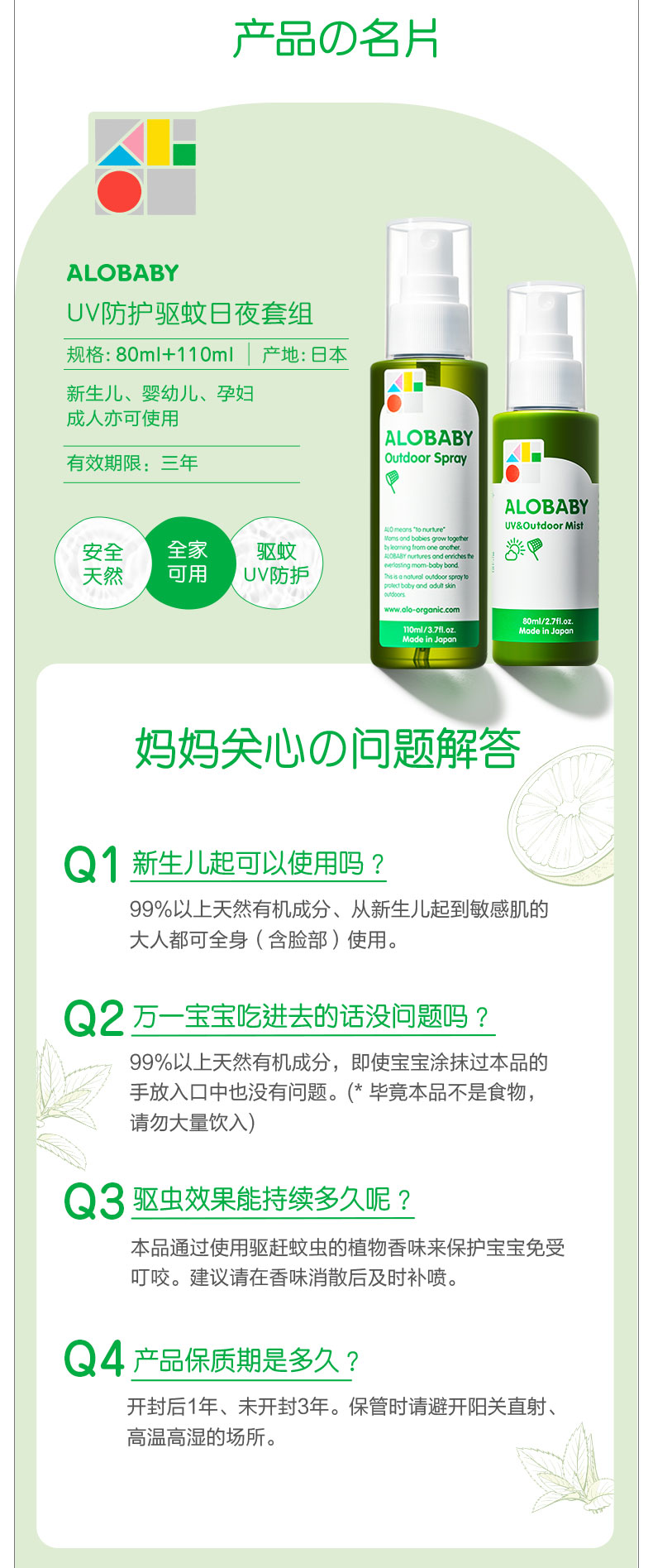 alobaby安诺宝日本天然有机日夜两用防蚊液驱蚊防晒组合装