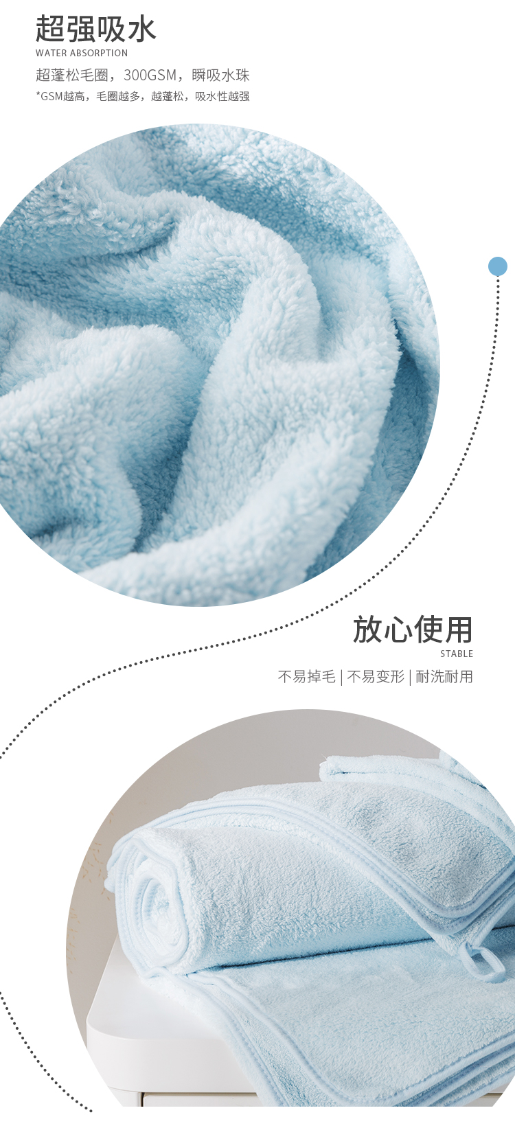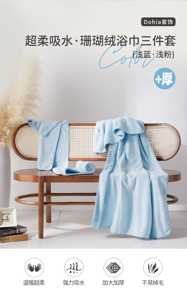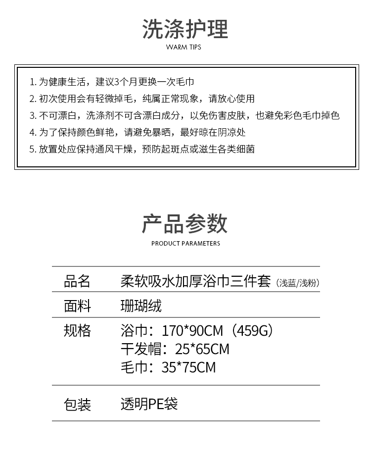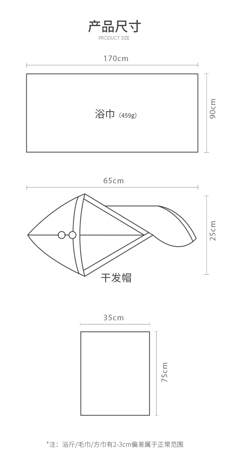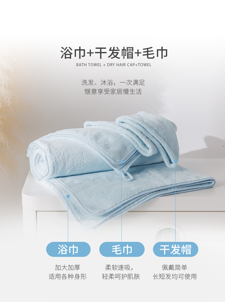 柔软吸水加厚浴巾三件套(浴巾+干发帽+毛巾)